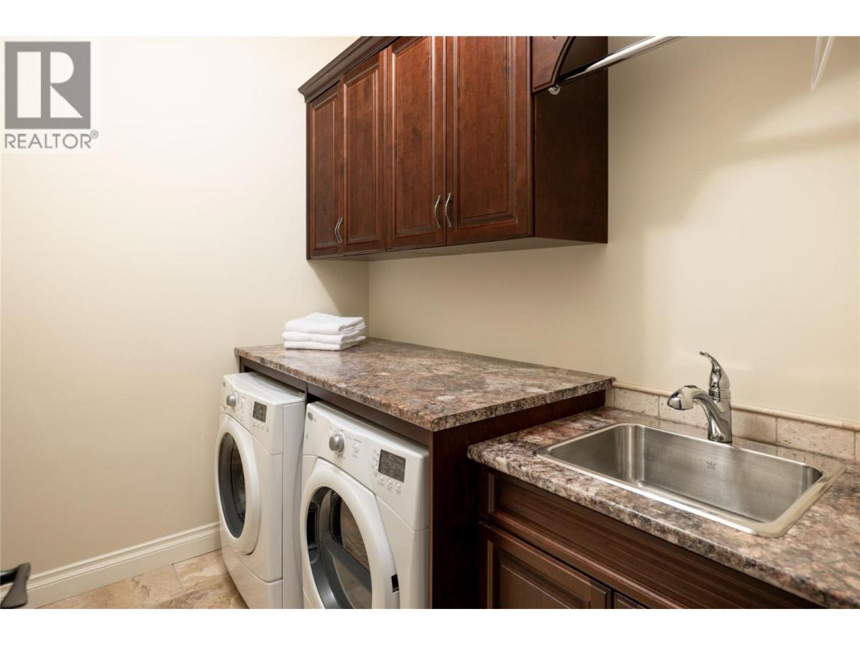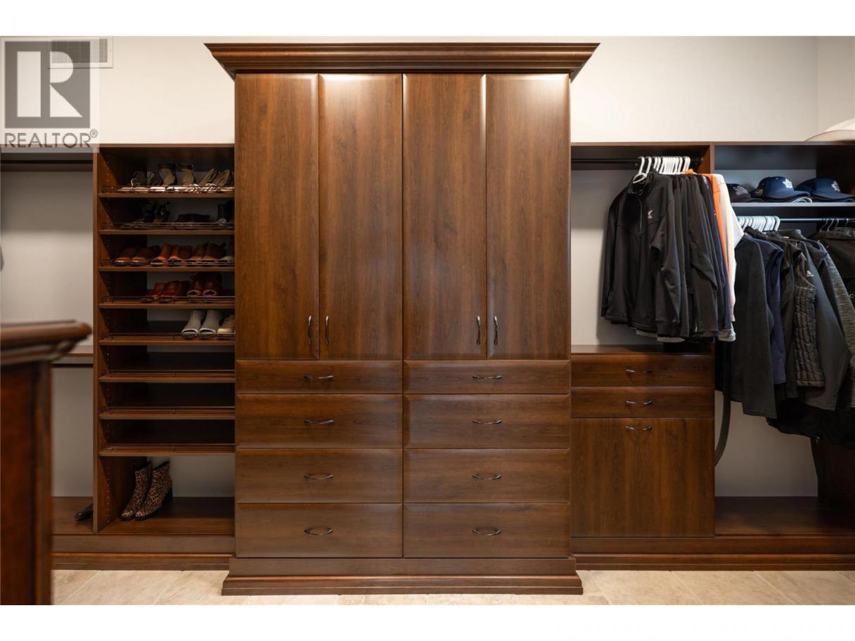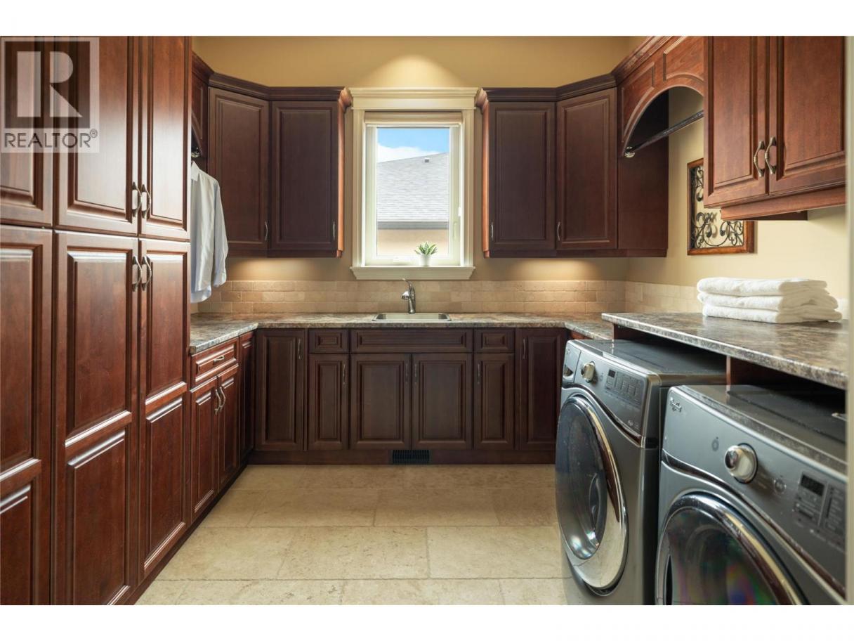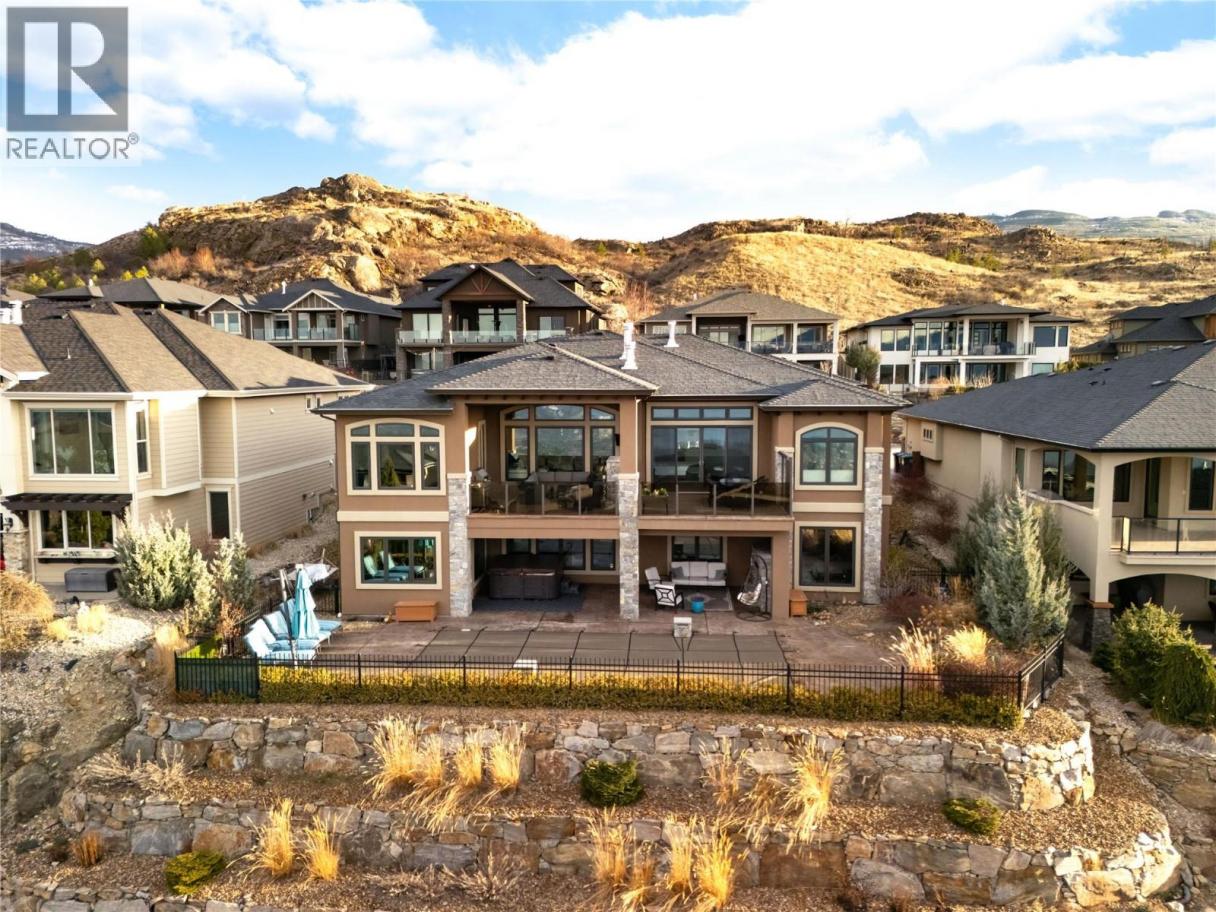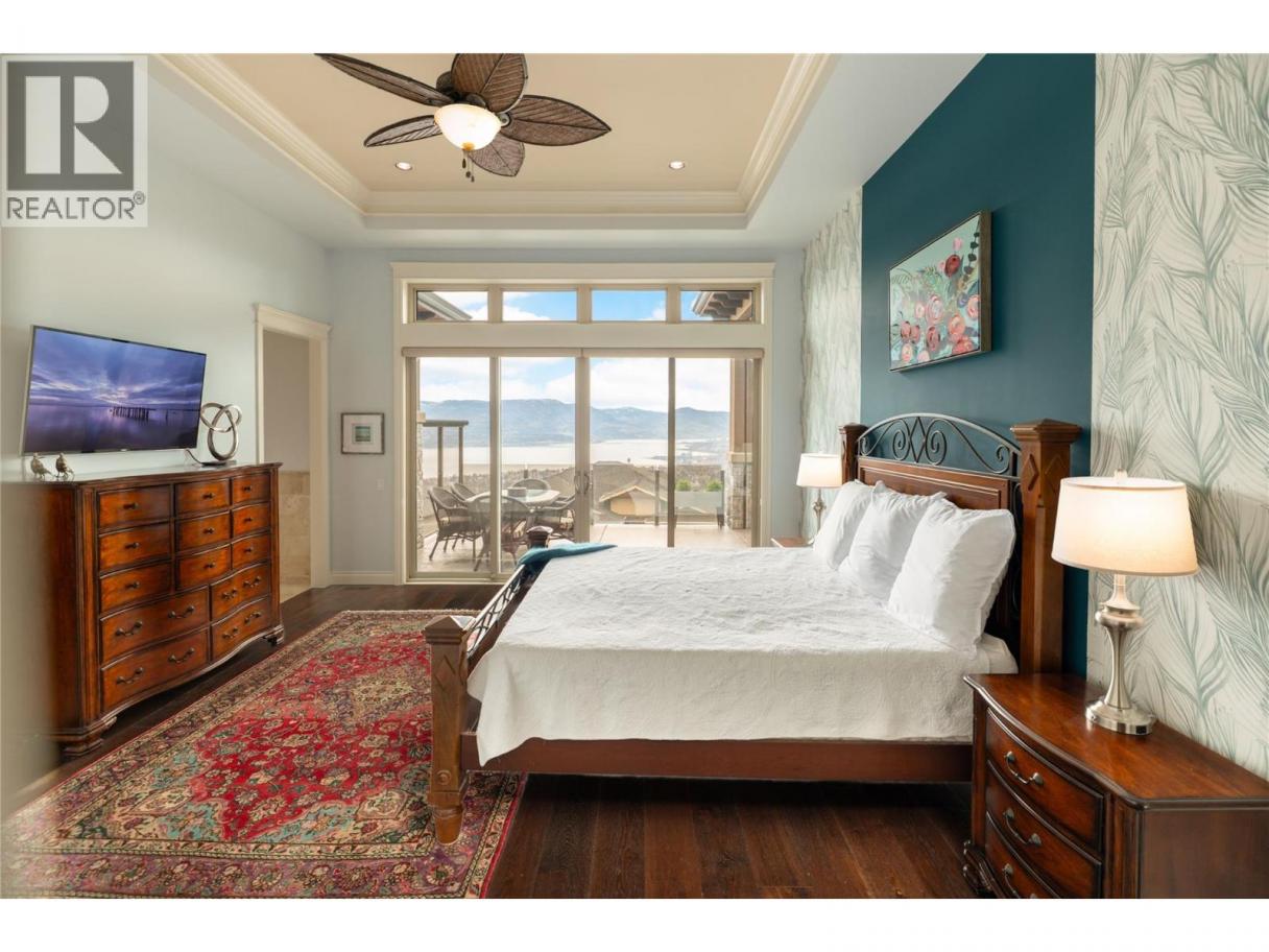 Located in the prestigious Upper Mission, this one-of-a-kind executive residence offers over 5,500 sq.ft. of refined living space with expansive lake, valley & city views. Designed for both everyday comfort & exceptional entertaining, this luxury home showcases timeless materials, quality craftsmanship & thoughtfully designed spaces throughout, offering the convenience of main-level living. The living area features coffered ceilings, wide plank oak flooring, stone fireplace & expansive windows framing the surrounding views. A statement fireplace anchors the room while the kitchen is appointed with custom cabinetry by Westwood, a large gathering island, premium appliances & Thermador gas range. Architectural details continue throughout with five fireplaces adding warmth & character across multiple living spaces. A dedicated scotch room provides an impressive setting for collectors & entertaining. The primary suite offers lake views, a spacious walk-in closet & a beautifully finished ensuite with soaker tub, dual vanities & walk-in shower. The walk-out lower level is designed for recreation & relaxation with a spacious family room, recreation area with wet bar, media room, fitness room & three king sized bedrooms. A convenient pool bathroom provides direct access to the outdoor entertaining areas. Outdoors, the property captures the Okanagan lifestyle with a stunning tile saltwater pool, expansive patio spaces & beautifully landscaped surroundings. The covered outdoor lounge features a stone fireplace, electronic TV & integrated hot tub area—perfect for year-round enjoyment. The triple garage includes epoxy flooring, an oversized RV-height garage door & ample space for vehicles, toys or workshop needs. Set among luxury homes in Kelowna’s sought-after Upper Mission, this exceptional property offers privacy, craftsmanship & a lifestyle designed to be enjoyed. (id:6769)