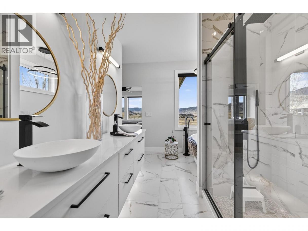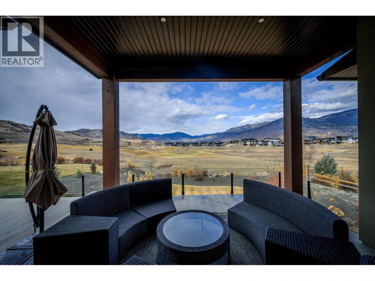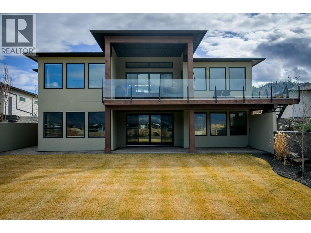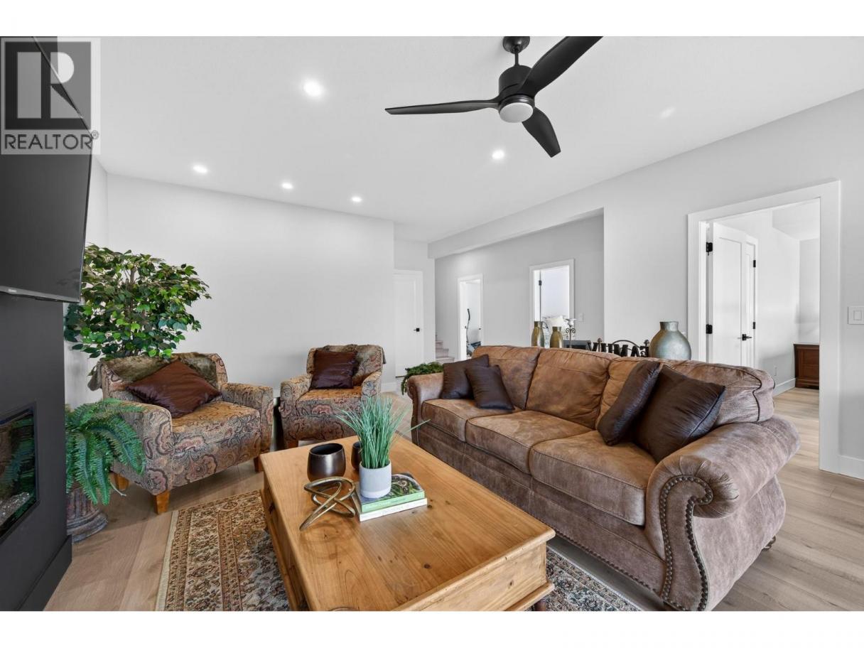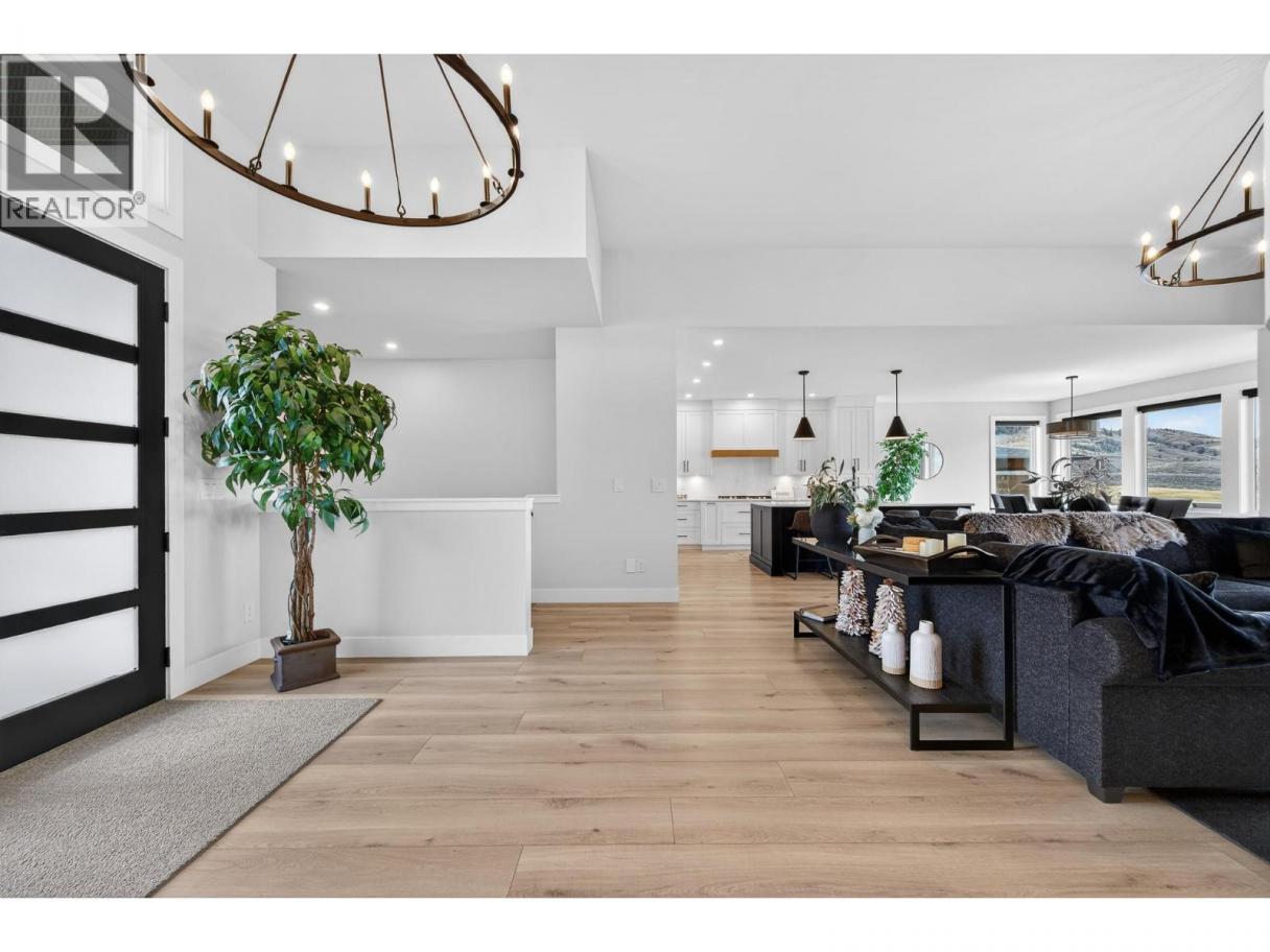 Quality craftsmanship defines this gorgeous home backing onto the 4th green at Tobiano Golf Course. The open-concept main level features a spacious kitchen with a large island, quartz countertops, and high-end KitchenAid appliances. Beautiful premium flooring runs throughout, complemented by electric fireplaces and an oversized foyer. A dedicated coffee and beverage bar adds convenience and charm. Large master bedroom with dream ensuite. The fully finished basement includes two bedrooms, a family room, a full bathroom, and walkout access to a covered patio. Additional features include custom blinds, central vacuum, hot water on demand, and a heat pump. The impressive 1,052 sq. ft. triple garage provides exceptional storage and parking. A bright, sunny suite with its own entrance and laundry offers excellent flexibility. The flat, beautifully landscaped backyard is wired for a hot tub, and natural gas is available on the covered deck for outdoor cooking and entertaining. (id:6769)