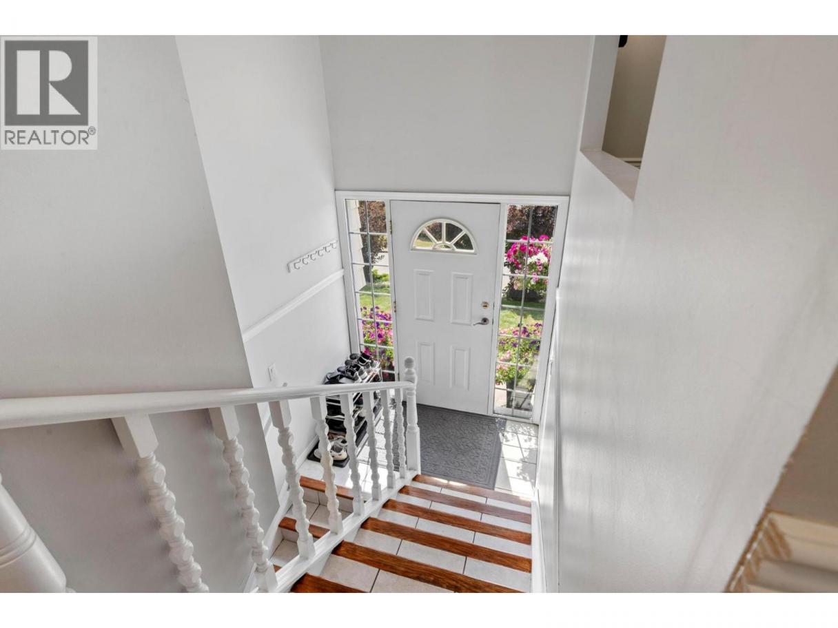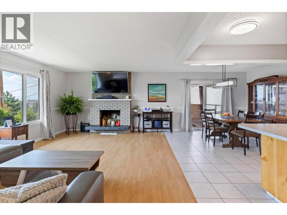 Immaculate 4-bedroom, 2-bath home in the heart of Black Mountain, offering sweeping lake, mountain, valley, and city views. Situated on a spacious 0.21-acre lot in one of the area’s most safe and private neighborhoods, this well-maintained home delivers outstanding indoor-outdoor living. The bright, airy living room invites you to relax by the wood-burning fireplace, with large windows that capture the scenery. The open-concept kitchen and dining area features newer appliances, an eat-in bar, and a pantry—flowing seamlessly onto a massive covered deck perfect for entertaining. The primary bedroom is warm and inviting, with windows that frame stunning valley and mountain views. Downstairs offers a large rec room with gas fireplace, office/flex space, a bright laundry room with sink and storage, and excellent in-law suite potential. The tiered backyard is a showstopper with a fully organic garden, vibrant perennials, and a retaining wall. Out front, a charming sitting area is perfect for enjoying your morning coffee. The attached single-car garage provides space for storage and tools, with extra driveway parking. Located in a quiet, family-friendly area with minimal traffic, this home offers peace of mind and a true sense of community. Hiking trails and Lund Park are at your doorstep, golf is just minutes away, and you’re around the corner from Black Mountain Elementary. All this, under 25 minutes to downtown Kelowna and less than 40 minutes to Big White. (id:6769)