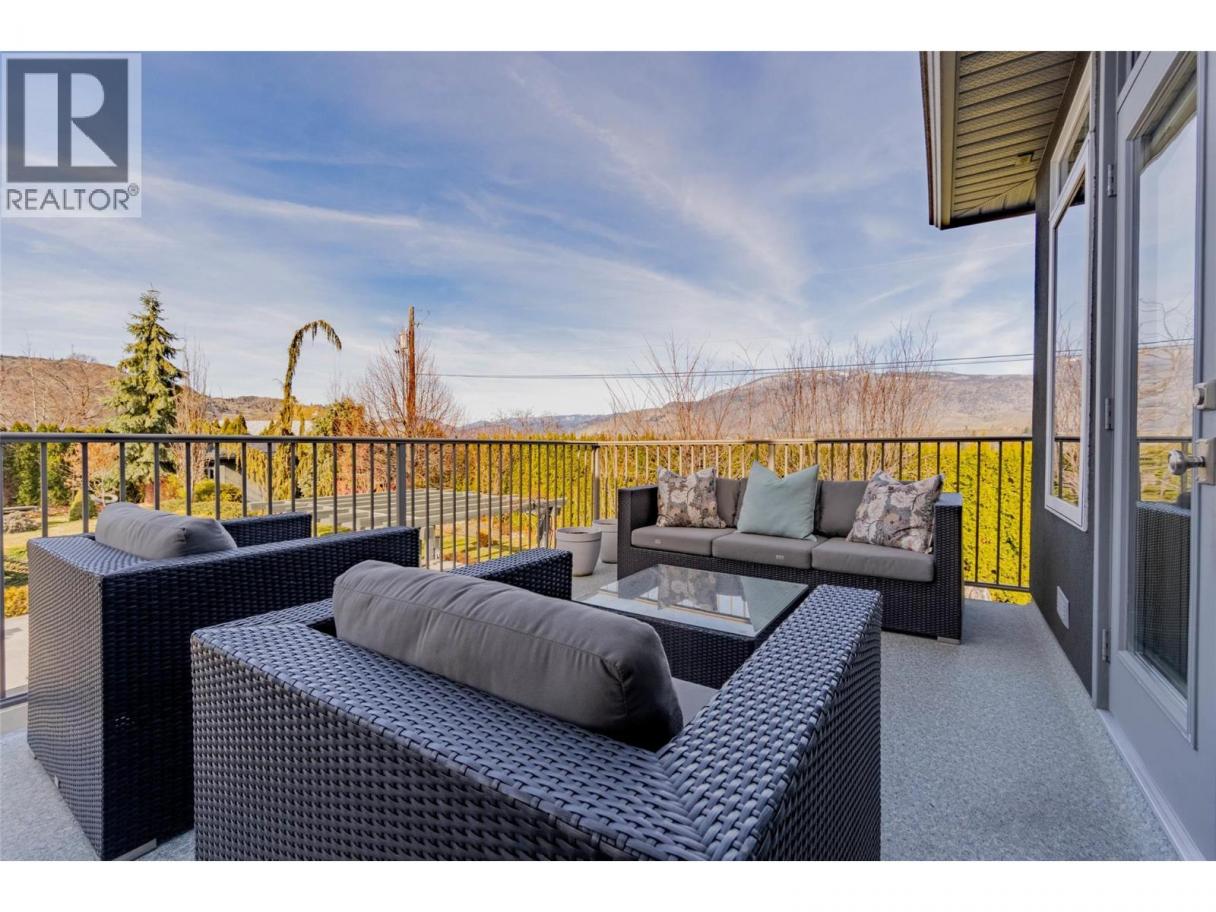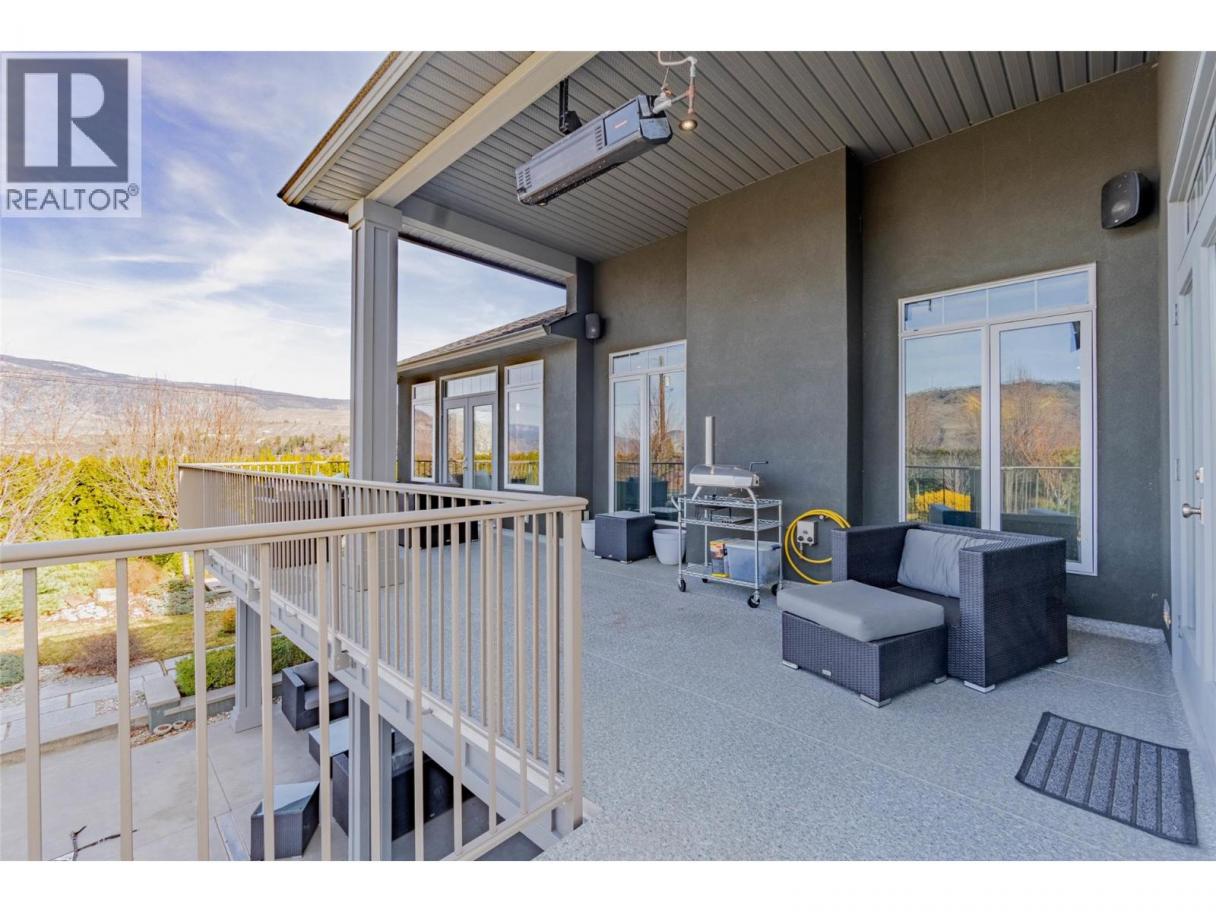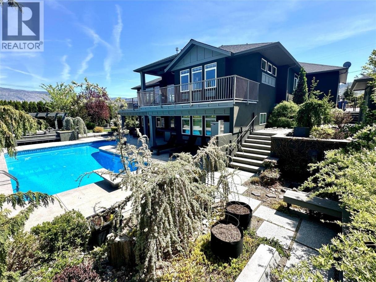 Set among the rolling vineyards of Oliver, this stunning 4-bedroom + den custom home offers luxury living with breathtaking panoramic views of wine country. Designed for both comfort and entertaining, the home welcomes you with bright, sun filled spaces and heated tile floors that add warmth and elegance throughout. The gourmet chef’s kitchen is beautifully appointed with premium Miele appliances, generous storage, and thoughtful design perfect for everyday living or hosting unforgettable gatherings. Step onto the expansive sun deck to take in sweeping vineyard views while enjoying morning coffee or evening cocktails, complete with a gas overhead heater for year-round enjoyment. The home features a heated double garage, spa-inspired bathrooms including a steam shower and multi-head rain shower, and a spectacular two-level theatre room wired for sound for the ultimate movie night. A pool table room with wet bar adds another inviting space for entertaining, while the artist’s studio offers a peaceful retreat for creativity. Outside, the professionally landscaped half-acre yard is a private oasis featuring a heated pool, hot tub, outdoor kitchen and bar, outdoor shower, and granite walking paths leading to raised garden beds, pergolas, and a cozy gas fire pit. Located just 20 minutes to Penticton and 10 minutes to Osoyoos, this exceptional property offers luxury, privacy, and incredible long-term value in the heart of wine country. (id:6769)