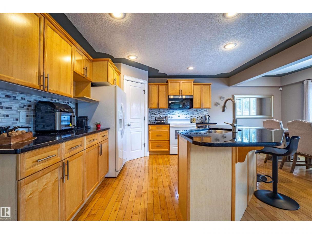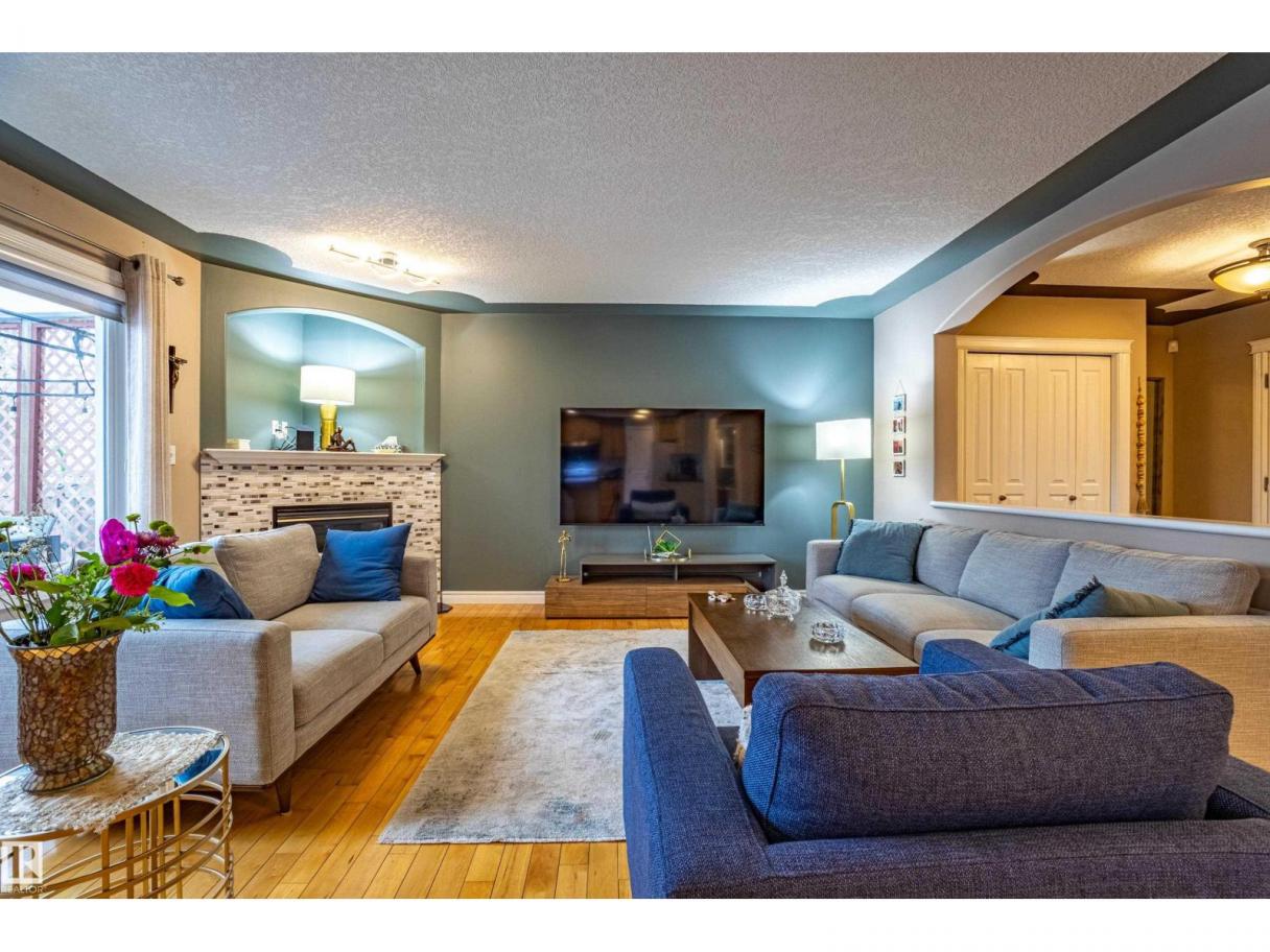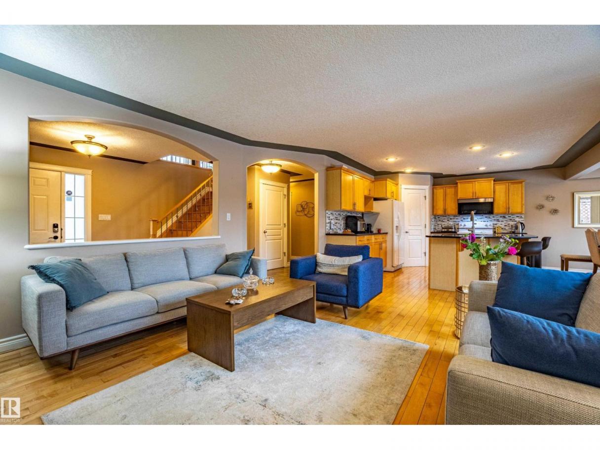 Welcome to this beautifully maintained home in desirable South Edmonton! Offering 2100sqft of well-designed living space, this property features an open & bright floor plan that is perfect for both everyday living & entertaining. Main floor showcases hardwood flooring, granite countertops & a seamless flow between the living room, kitchen & dining area. You’ll also find a convenient main floor laundry room, a 2-piece bathroom & direct access to the double attached garage. Upstairs features a spacious bonus room with vaulted ceilings, ideal for a family room or media space. Down the hall are 3 bedrooms including a large primary suite complete with walk-in closet & a beautiful ensuite featuring a separate bathtub & shower. The fully finished basement offers additional living & entertainment space. Additional highlights include Central A/C, built-in vacuum system & newer hot water tank. Step outside to enjoy the south-facing backyard with two-tier deck, perfect for relaxing or entertaining. (id:6769)