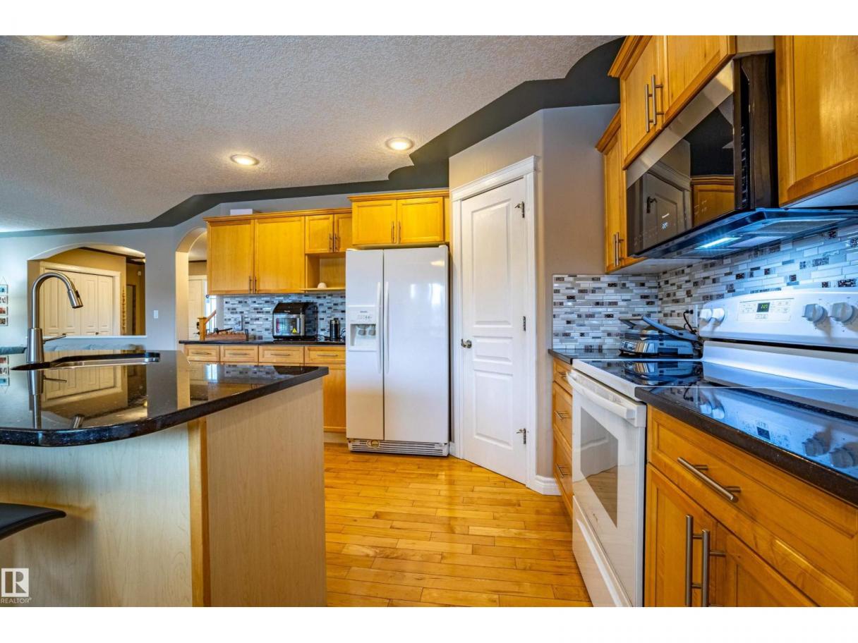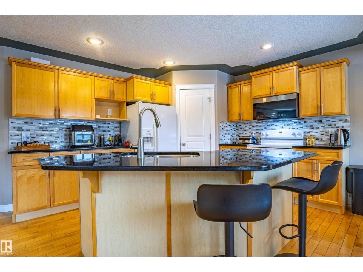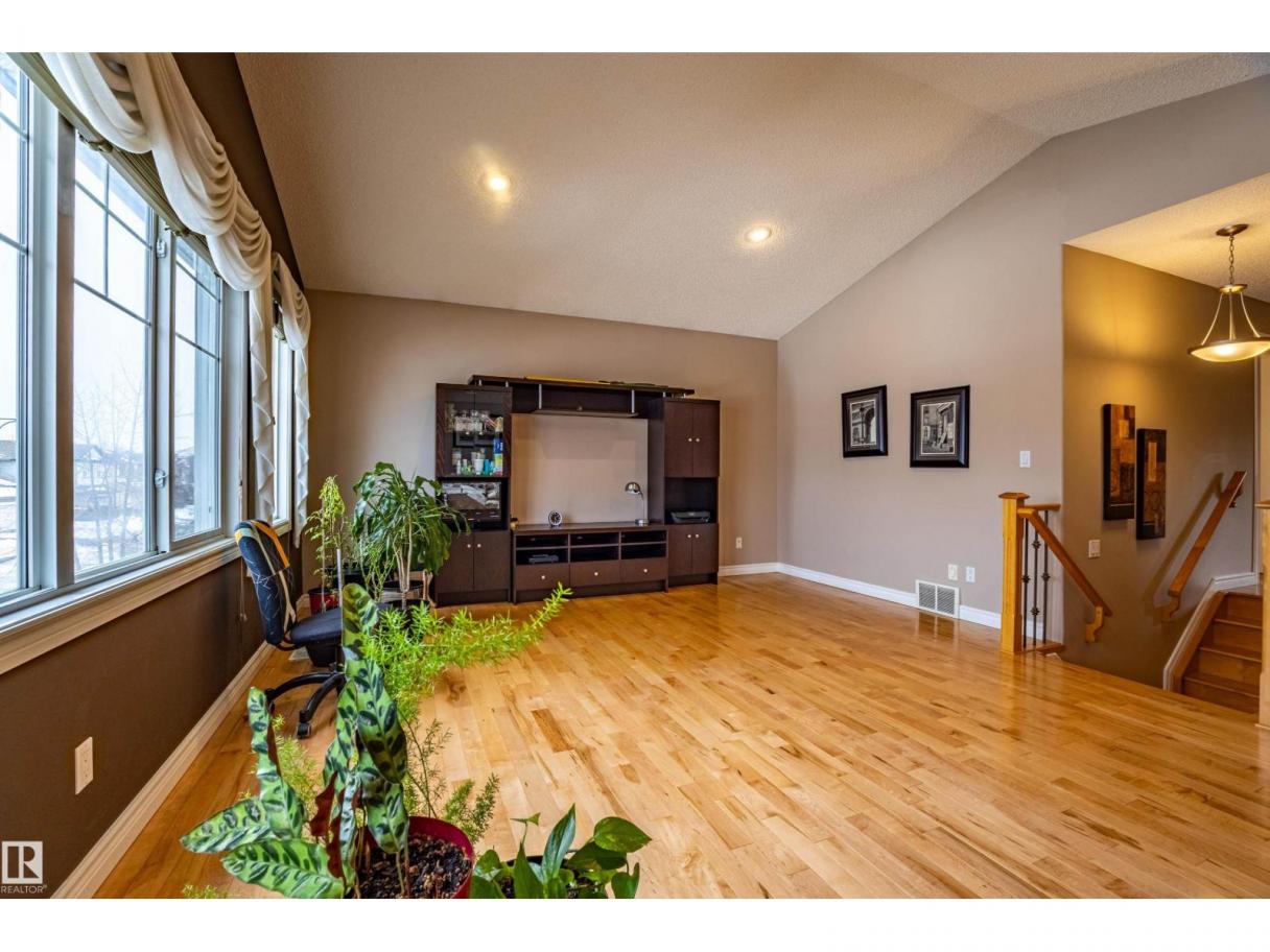 Welcome to this beautifully maintained home in desirable South Edmonton! Offering 2100sqft of well-designed living space, this property features an open & bright floor plan that is perfect for both everyday living & entertaining. Main floor showcases hardwood flooring, granite countertops & a seamless flow between the living room, kitchen & dining area. You’ll also find a convenient main floor laundry room, a 2-piece bathroom & direct access to the double attached garage. Upstairs features a spacious bonus room with vaulted ceilings, ideal for a family room or media space. Down the hall are 3 bedrooms including a large primary suite complete with walk-in closet & a beautiful ensuite featuring a separate bathtub & shower. The fully finished basement offers additional living & entertainment space. Additional highlights include Central A/C, built-in vacuum system & newer hot water tank. Step outside to enjoy the south-facing backyard with two-tier deck, perfect for relaxing or entertaining. (id:6769)