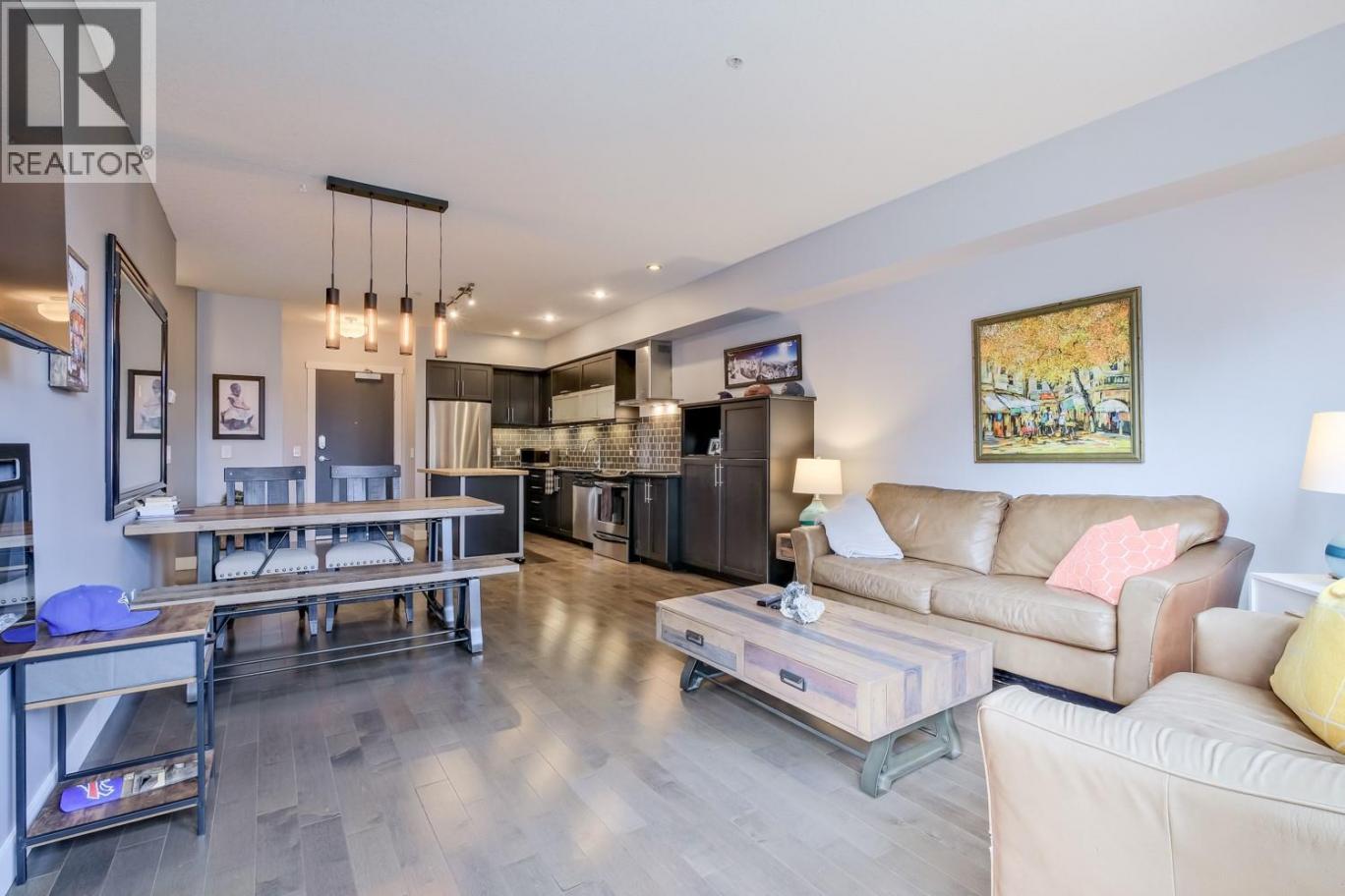 Urban living at its best in Martin Lofts! This stylish 1 bedroom, 1 bathroom condo is perfectly situated in the heart of downtown Kelowna, offering an ideal blend of comfort, design, and walkable convenience. This well maintained home features hardwood flooring and a modern espresso kitchen complete with granite countertops and a movable butcher block island - perfect for entertaining or flexible prep space. The bright living area is anchored by an electric fireplace, while a heat pump system provides efficient heating and cooling for year round comfort. Building amenities include a fully equipped fitness room, secure storage, bike storage, and heated underground parking. This unit comes with one covered parking stall and a storage locker, with additional street parking available for guests. Step outside and enjoy everything downtown Kelowna has to offer. Restaurants, cafés, the waterfront, and entertainment venues are all within walking distance, including Prospera Place, Playtime Casino, Waterfront and City Park. Located on the quiet and private side of the building with ground level access, this unit is perfect for pet owners. Pet-friendly (one dog or cat, no size restriction) and rental friendly, this property presents an excellent opportunity for both homeowners and investors. (id:6769)