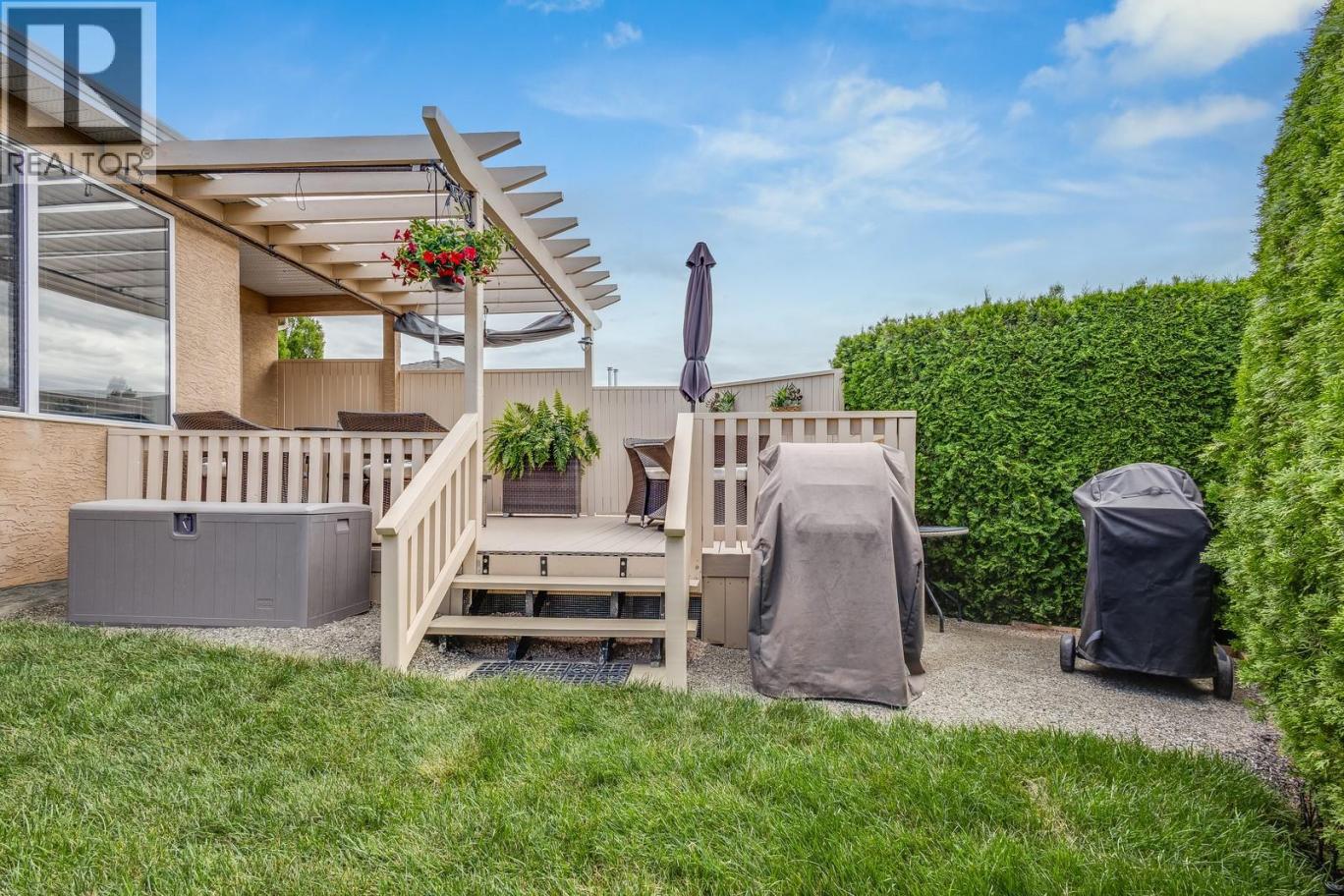 A Rare Find in Westlake Gardens! Detached ranchers like this don’t come up often — nearly 3,000 sq. ft. of beautifully renovated living space in one of the most desirable 19+ communities around. This home has been thoughtfully updated with new flooring, fresh paint, stylish light fixtures, and vaulted ceilings that flood the main level with natural light. The kitchen is a standout, featuring brand-new cabinetry, quartz countertops, stainless steel appliances, and a skylight that brightens the entire space. The cozy family room with gas fireplace opens onto a private backyard oasis — now complete with a gorgeous new high-end patio, pergola, fresh sod, and full fencing — perfect for relaxing or entertaining. The primary suite offers a generous walk-in closet and a spa-inspired ensuite where you can unwind in style. Downstairs, the fully finished lower level adds tons of flexibility with a large rec room, third bedroom, gym or flex space, full bathroom, laundry room, and ample storage. Double garage, driveway parking, and a fantastic location within walking distance of shops, cafes, restaurants, and everyday conveniences. The community clubhouse also offers social events, a pool table, and a full kitchen for gatherings. With a prepaid lease, no Property Transfer Tax, and no Speculation Tax, this home represents exceptional value in a prime West Kelowna location. Don’t miss your chance — come see this exclusive home in Westlake Gardens! 2 dogs or 2 cats permitted up to 10 kgs (id:6769)