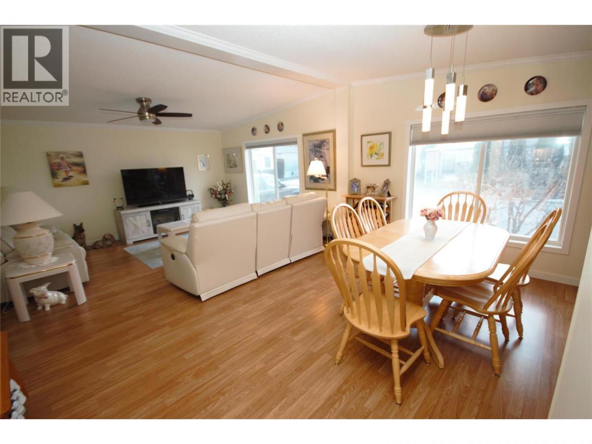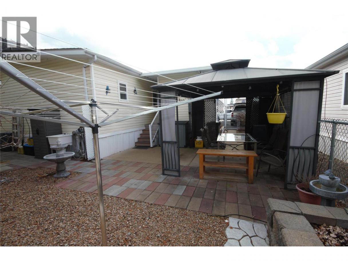 Welcome to Deer Park Estates—where you own the land! This bright and inviting home features an open-concept kitchen and living area with vaulted ceilings, beautiful crown molding, and multiple skylights that fill the space with natural light. The home offers 3 bedrooms and 2 bathrooms, including a spacious primary suite complete with a large ensuite and generous closet space. Recent updates include a new furnace and A/C unit, updated plumbing, stainless steel appliances, and a driveway finished with premium low-maintenance Rubber Tech coating. Step outside to enjoy the covered deck with a heated and cooled 11' x 7' storage room, perfect for hobbies or extra storage. The private backyard features a gazebo, raised and irrigated garden beds, and beautiful mountain views— an ideal space to relax or entertain. Additional highlights include a 16' x 8' powered workshop, RV parking availability, and access to the community clubhouse for residents. Conveniently located in Gallagher Lake, close to the River and walking trails you're just 10 minutes from Oliver and only 25 minutes to Penticton. Deer Park Estates is a 55+ community where pets are welcome (with restrictions) and the monthly bare land strata fee is only $55. For more information or to book a private tour contact Cameron or John today! (id:6769)
