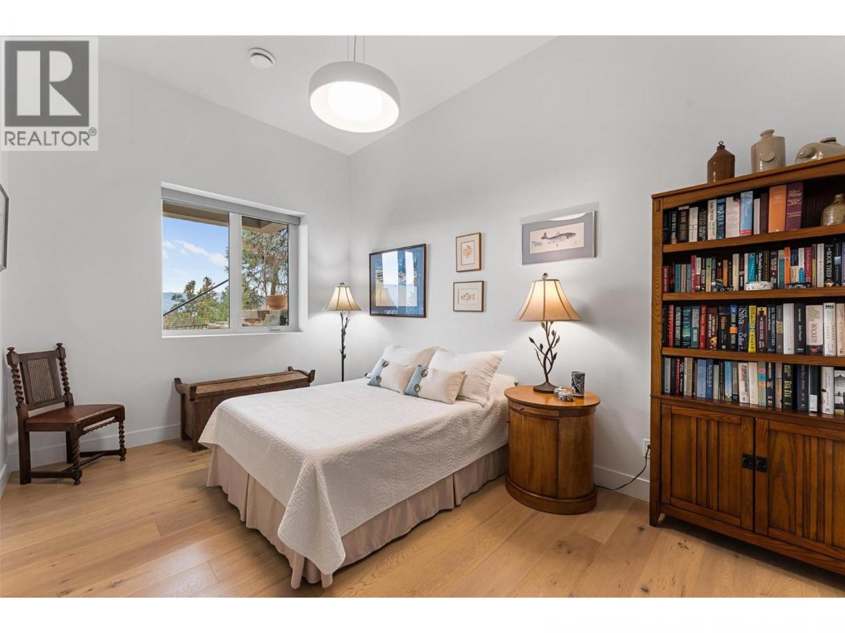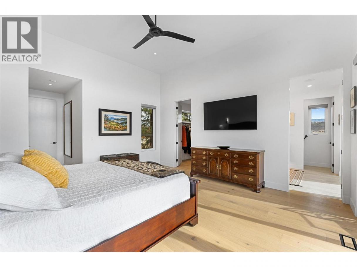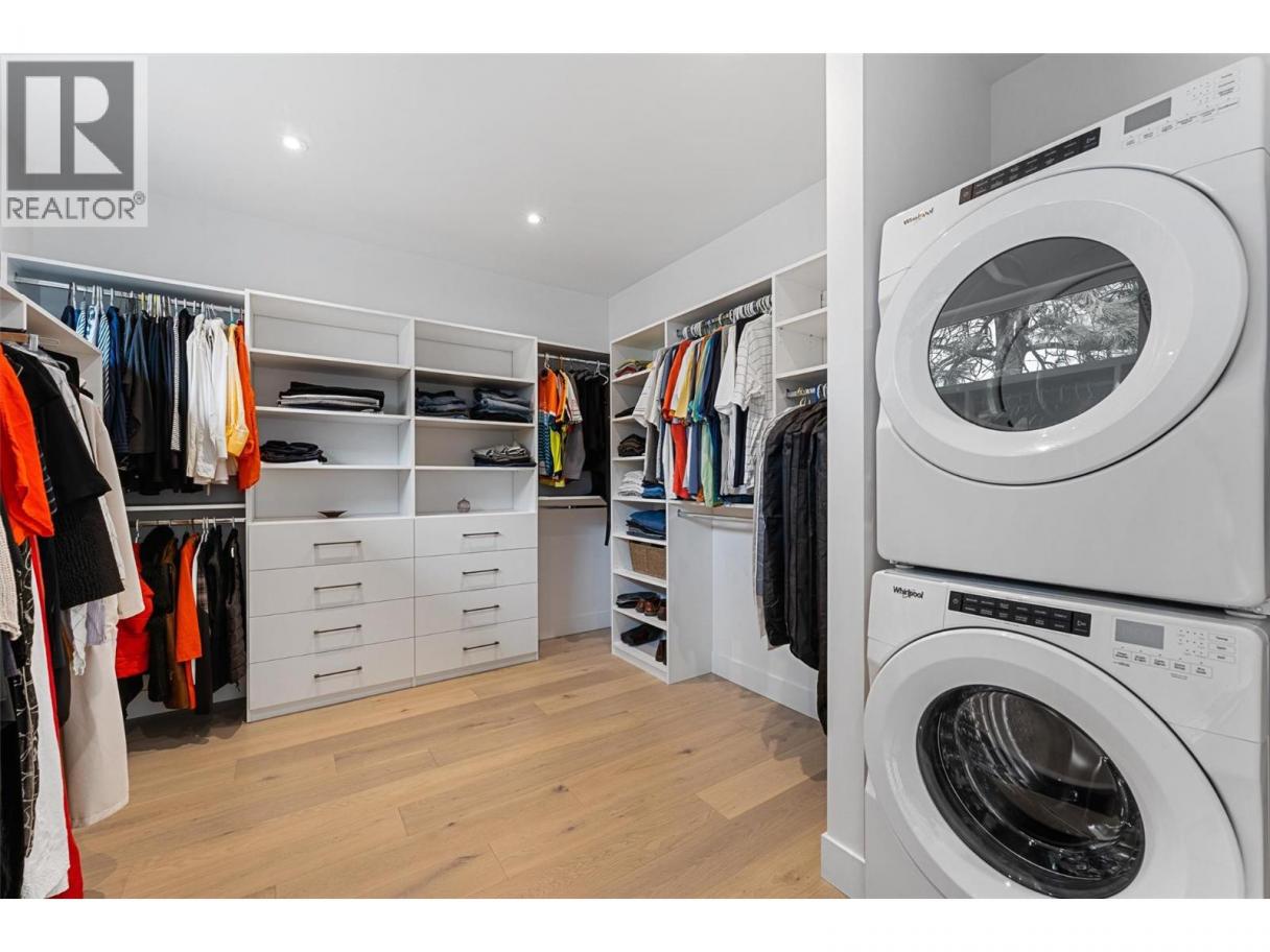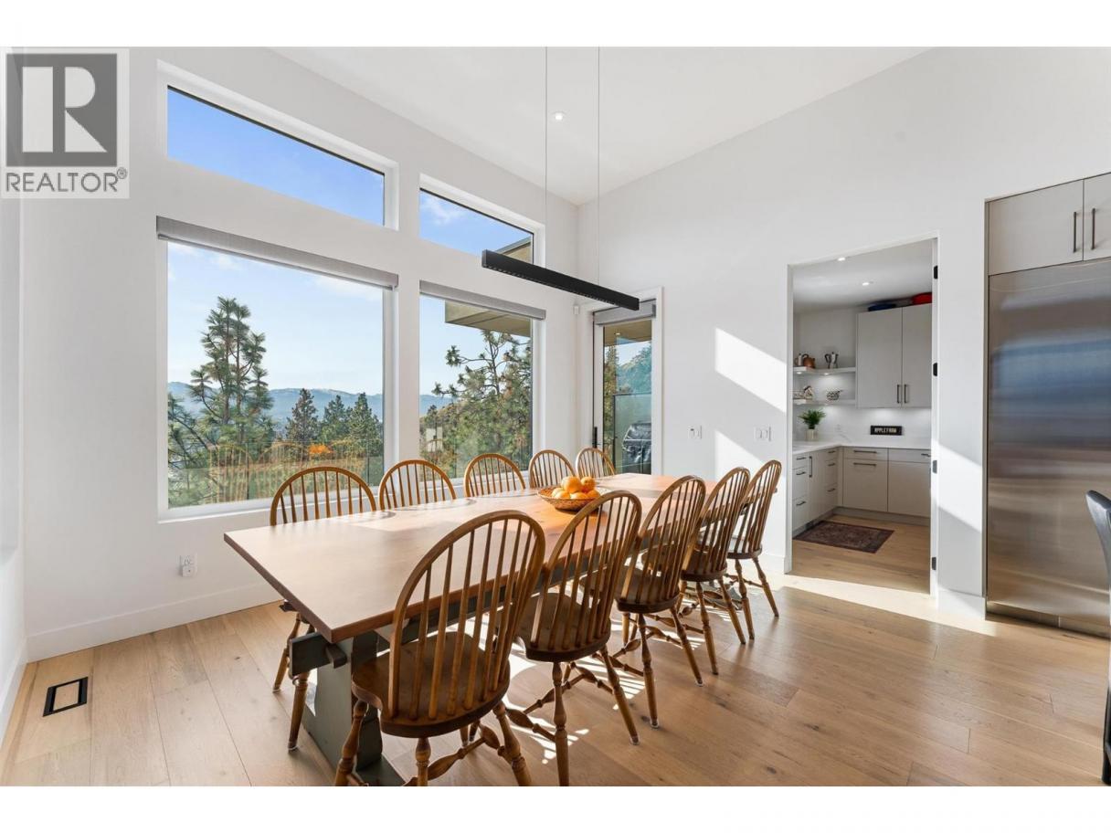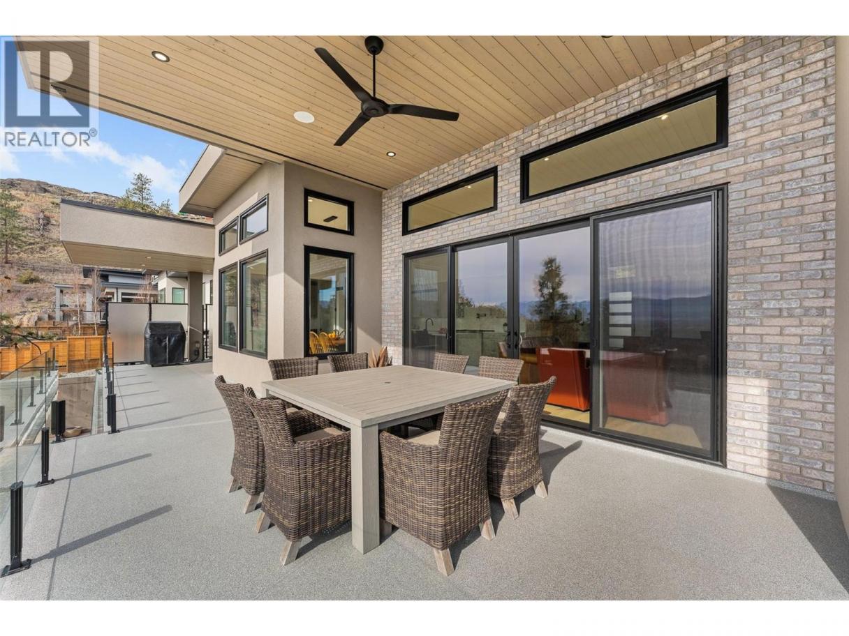 An exceptional modern residence set above the city, offering refined design, impressive craftsmanship and sweeping panoramic views of the city, mountains and Okanagan Lake. Thoughtfully designed for seamless indoor-outdoor living, this home captures the essence of the Okanagan lifestyle. The open-concept main level is defined by soaring ceilings, wide plank oak flooring and expansive windows that frame the breathtaking outlook. At the heart of the home, the gourmet kitchen showcases quartz countertops, a waterfall island, Westwood cabinetry, full-height quartz backsplash and premium appliances including a Wolf gas range and Sub-Zero refrigerator, complemented by a well-appointed butler’s pantry with beverage fridge and coffee station. The great room features a floor-to-ceiling soft white brick fireplace with custom built-ins, while sliding doors extend the living space onto the expansive south-facing covered deck with frameless glass railing and incredible views. The primary suite offers private deck access, a custom walk-in closet with laundry and a spa-inspired ensuite with steam shower and freestanding soaker tub. The lower level is designed for entertaining with a spacious family room, stylish bar area, gym or flexible recreation space and direct access to the outdoor living areas. Outside, a private resort-style setting awaits with a heated saltwater infinity pool, lounging areas and beautifully landscaped grounds. Complete with a heated garage, EV charging and smart home features. Located in the Highpointe Terraces neighborhood, on quiet no thru road, hiking and walk trails nearby and a short hop to nearby amenities. (id:6769)