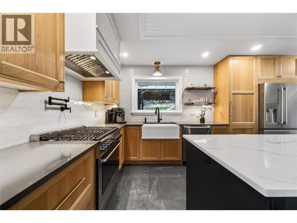 Welcome to this move-in ready home that has been meticulously maintained and beautifully updated. Every detail has been thoughtfully completed. The stunning kitchen is the heart of the home, featuring a 36” gas 6-burner range, farmhouse-style apron sink, and a huge island with quartz countertops. You’ll love the abundance of storage, beverage fridge, and all kitchen appliances replaced in 2023. New flooring throughout the home and updated fireplaces on both the main and lower levels add warmth and modern appeal. This south facing home is beautiful and bright with main floor living room, dining room, kitchen, and comfortable family room, along with a practical mudroom and laundry area. Upstairs, the primary suite has a walk-in closet and newly updated ensuite featuring a walk-in shower. Two additional bedrooms and a full bathroom provide great space for family or guests. The lower level offers a large flexible living area that can easily serve as a family room, office, gym, or craft space, complete with a cozy gas fireplace. A generous storage room with exterior access provides potential to finish as additional living space if desired. Outside, the gorgeous yard is private and beautifully landscaped, featuring a gazebo, garden area, fruit trees, and mature landscaping. Thoughtful touches such as rainwater collection for garden watering add sustainability. This home offers exceptional updates, flexible living spaces, and a peaceful outdoor setting—simply move in and enjoy. (id:6769)