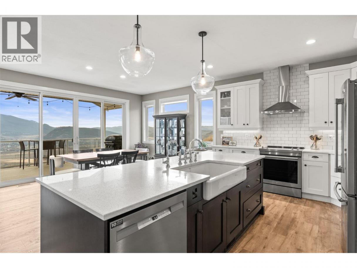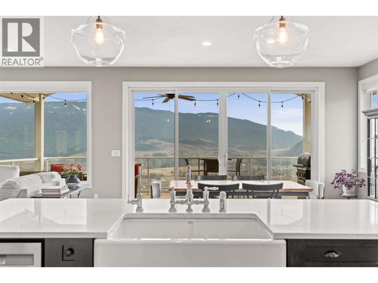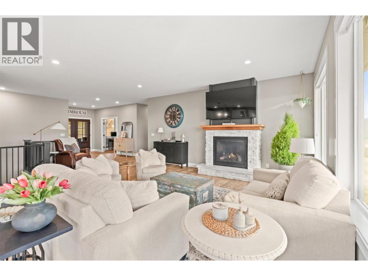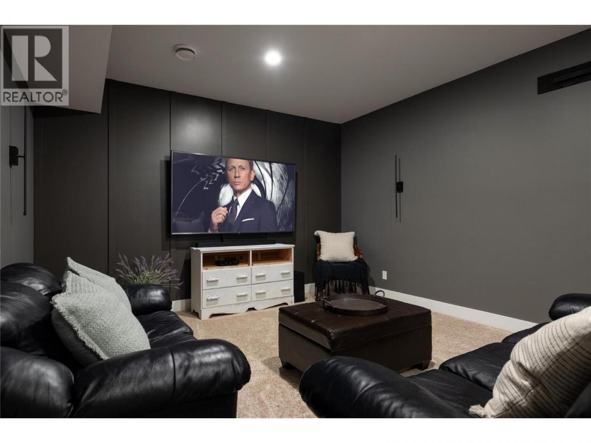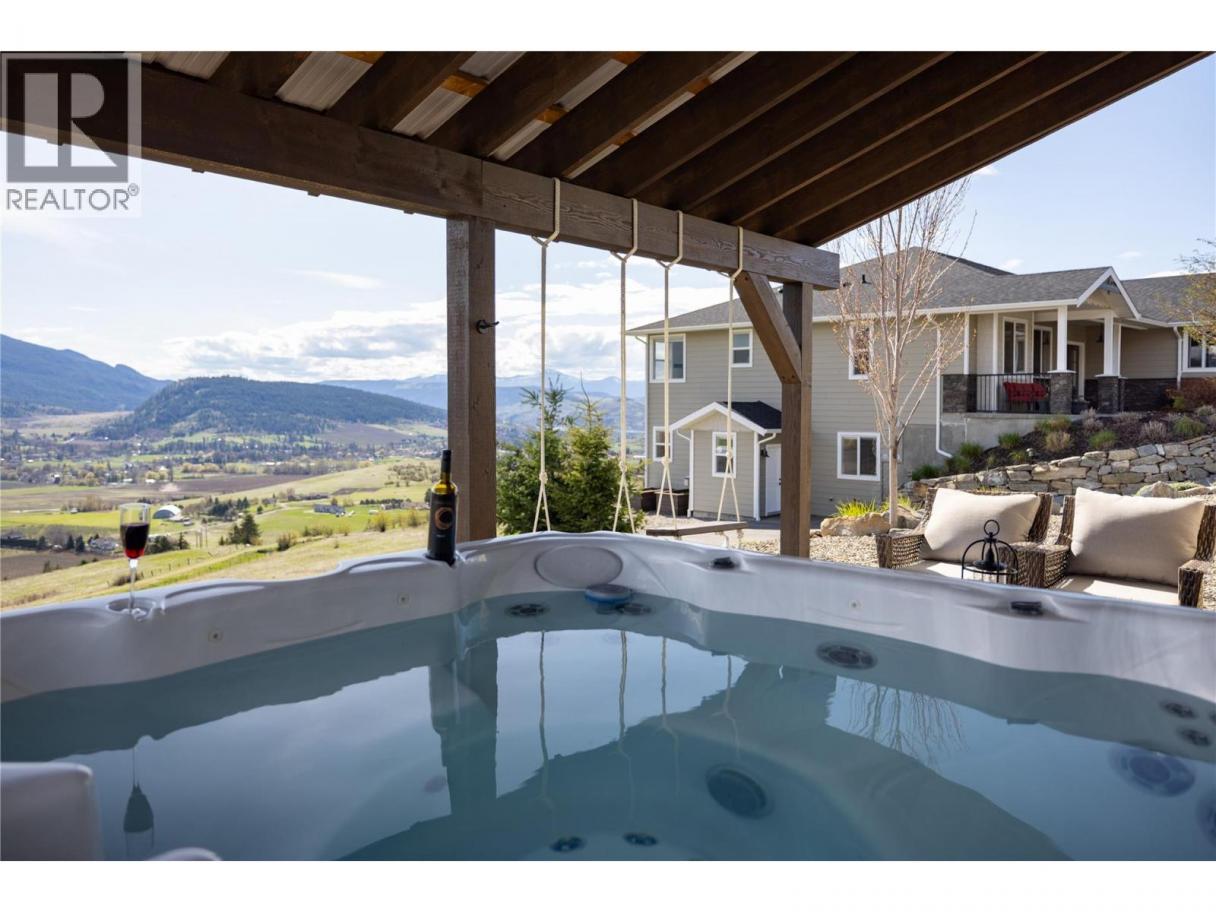 Stunning Coldstream Estate with Panoramic Views & Prime Location Situated on 5 pristine acres, this remarkable estate offers sweeping views of Kalamalka Lake and Park. Step inside to a bright, open-concept layout where the family room, dining area, and kitchen flow effortlessly—ideal for everyday living and entertaining. The living room is a showstopper, with floor-to-ceiling windows that frame the lake and park, flooding the space with natural light. The chef’s kitchen boasts a large island, quartz countertops, newer appliances, and a stylish backsplash. The primary bedroom is a luxurious retreat with stunning views, a spacious walk-in closet, and a spa-like 5-piece ensuite. Enjoy movie nights in the theatre room or stay fit in your private home gym. Outdoor living includes covered patios on both levels, a hot tub, fire pit, and space to entertain or unwind. The level-entry 2+1 bedroom legal suite offers separate living with its own furnace, hot water tank, AC, and utility meters—ideal for extended family or rental income. A 24’ x 32’ shop with 14-foot ceilings adds function and flexibility, and the freshly seal-coated driveway enhances both curb appeal and durability. Just minutes from Kalamalka Park, with scenic trails and forested paths for hiking and running. The Grey Canal Trail borders the property, offering direct access to nature. With stunning surroundings and modern comforts, this isn’t just a home—it’s a lifestyle. (id:6769)