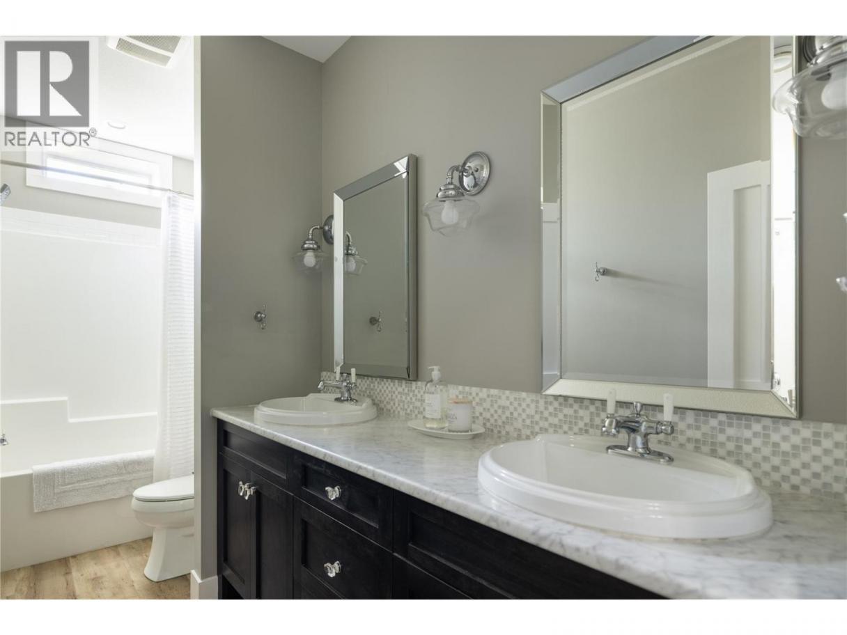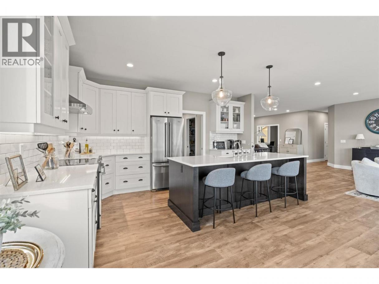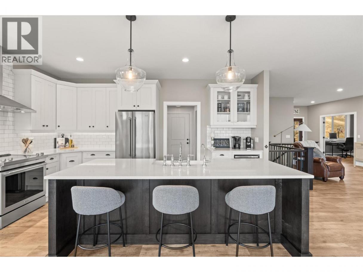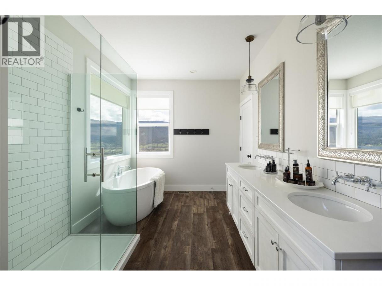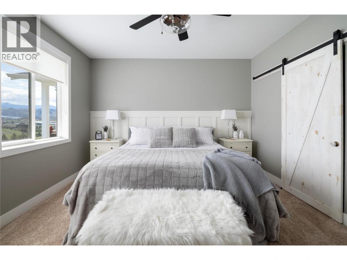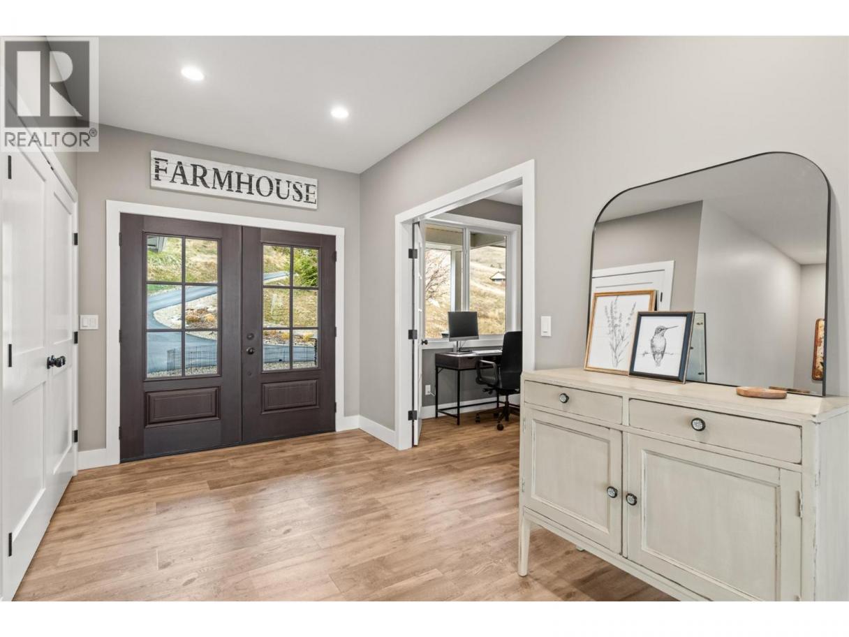 Stunning Coldstream Estate with Panoramic Views & Prime Location Situated on 5 pristine acres, this remarkable estate offers sweeping views of Kalamalka Lake and Park. Step inside to a bright, open-concept layout where the family room, dining area, and kitchen flow effortlessly—ideal for everyday living and entertaining. The living room is a showstopper, with floor-to-ceiling windows that frame the lake and park, flooding the space with natural light. The chef’s kitchen boasts a large island, quartz countertops, newer appliances, and a stylish backsplash. The primary bedroom is a luxurious retreat with stunning views, a spacious walk-in closet, and a spa-like 5-piece ensuite. Enjoy movie nights in the theatre room or stay fit in your private home gym. Outdoor living includes covered patios on both levels, a hot tub, fire pit, and space to entertain or unwind. The level-entry 2+1 bedroom legal suite offers separate living with its own furnace, hot water tank, AC, and utility meters—ideal for extended family or rental income. A 24’ x 32’ shop with 14-foot ceilings adds function and flexibility, and the freshly seal-coated driveway enhances both curb appeal and durability. Just minutes from Kalamalka Park, with scenic trails and forested paths for hiking and running. The Grey Canal Trail borders the property, offering direct access to nature. With stunning surroundings and modern comforts, this isn’t just a home—it’s a lifestyle. (id:6769)
