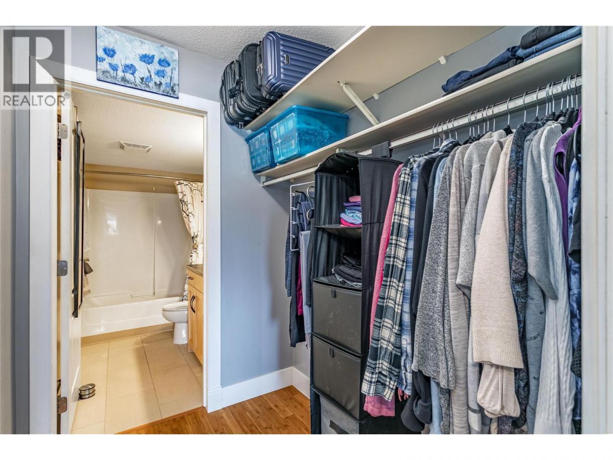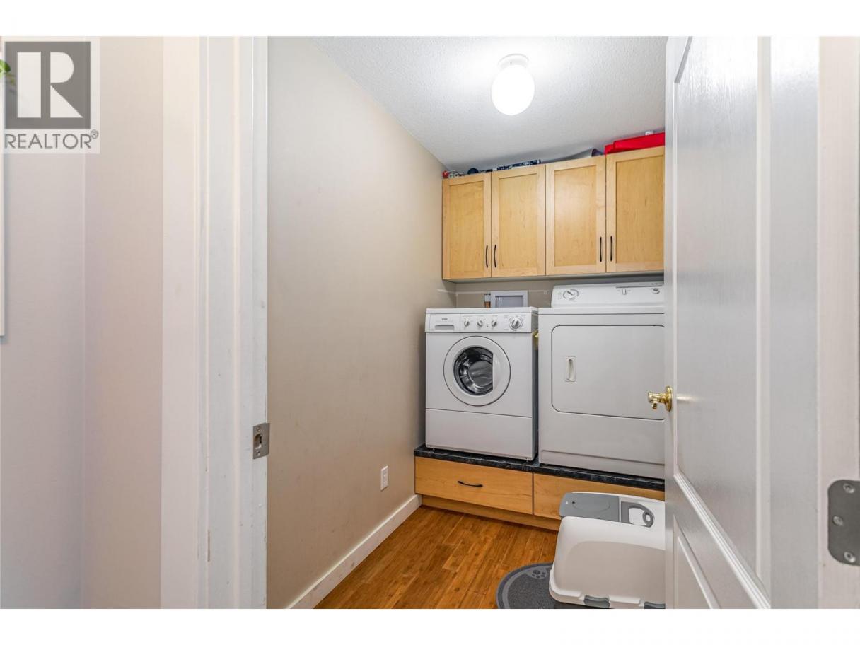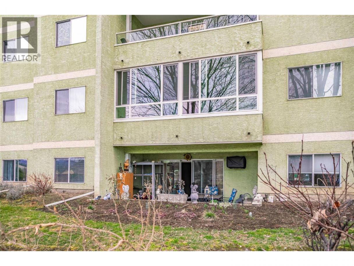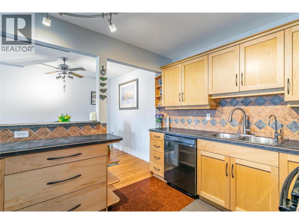 Welcome to Peach Tree Place in the heart of Rutland! This well maintained ground-floor home offers comfortable move-in ready living with a private covered patio overlooking the greenery of Ben Lee Park — a peaceful setting to enjoy your morning coffee or relax at the end of the day. With 1110 sf of bright thoughtfully designed living space, this home features 2 bedrooms and 2 full bathrooms. The open concept creates an inviting space for both everyday living and easy entertaining. The kitchen offers a convenient sit-up bar area, attractive tile backsplash, generous counter space and a new kitchen faucet. The spacious primary include a walk-in closet and 4-piece ensuite. A second bedroom, full bathroom w/shower, and a large laundry room with additional cabinetry complete the functional floor plan. Bamboo and cork flooring, updated paint and an in-unit AC providing comfort year-round. Additional features include a covered parking stall in a secure gated area, a separate storage locker and a convenient bike room. Residents enjoy on-site amenities including a gym, games room, library and a guest suite available for just $40 per night. With no age restrictions, long-term rentals permitted, and up to 2 cats allowed (sorry, no dogs) this home offers flexibility for a variety of lifestyles. Fantastic location with parks, public transit, shopping, restaurants and everyday conveniences just steps away!! (id:6769)