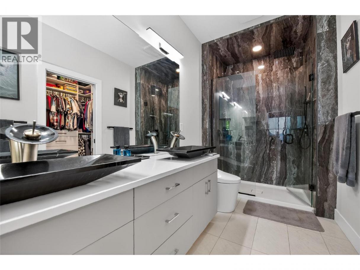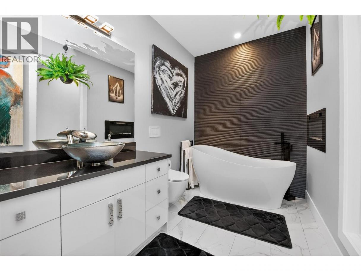 Experience elevated Okanagan living in this custom designed half duplex that captures some of the most breathtaking lake, valley & mountain views. Thoughtfully built alongside the builder w/ enhanced finishes & design details, this home offers a rare combination of luxury, comfort & everyday functionality. Step inside & you are immediately welcomed by a stunning floor to ceiling tiled gas fireplace & the wall of windows that fill the home w/ natural light. The heart of the home is the gorgeous kitchen, featuring custom cabinetry, a quartz waterfall island, gas range & plenty of space. The main floor primary bedroom offers a peaceful retreat w/ its own fireplace, a patio door, walk-in closet & spa-inspired ensuite complete with dual sinks, a tiled shower w/ double shower heads & a bidet toilet. The main level also features laundry & an additional bathroom. Off the living room leads to the covered deck, where morning coffee or BBQs can be enjoyed while taking in the sweeping views, w/ a gas hookup. The walkout lower level offers additional space w/ a family room featuring another floor to ceiling fireplace, 2 more bedrooms & a full bathroom w/ fireplace. Step outside to the lower patio & relax in the hot tub beneath the Okanagan sky. Additional highlights include hot water on demand, an attached double garage & extra parking. Just minutes from The Rise Golf Course, Silver Star Mountain Resort, Okanagan Lake & some of the region’s best wineries. (id:6769)
