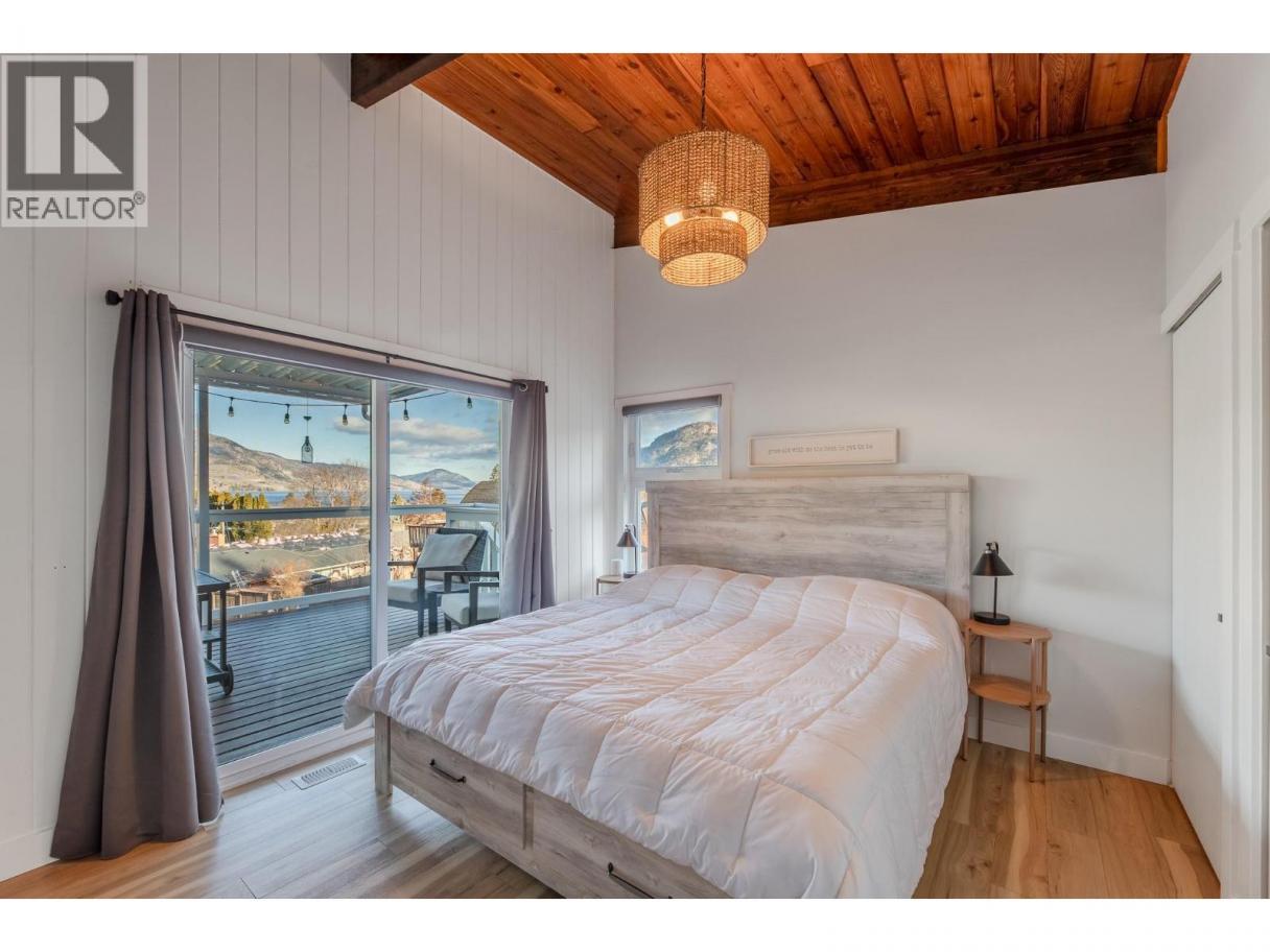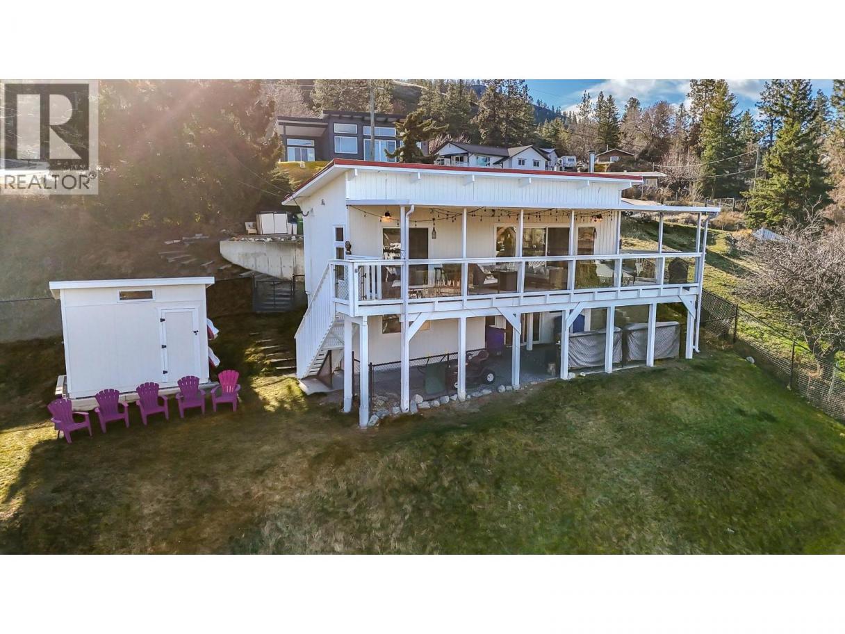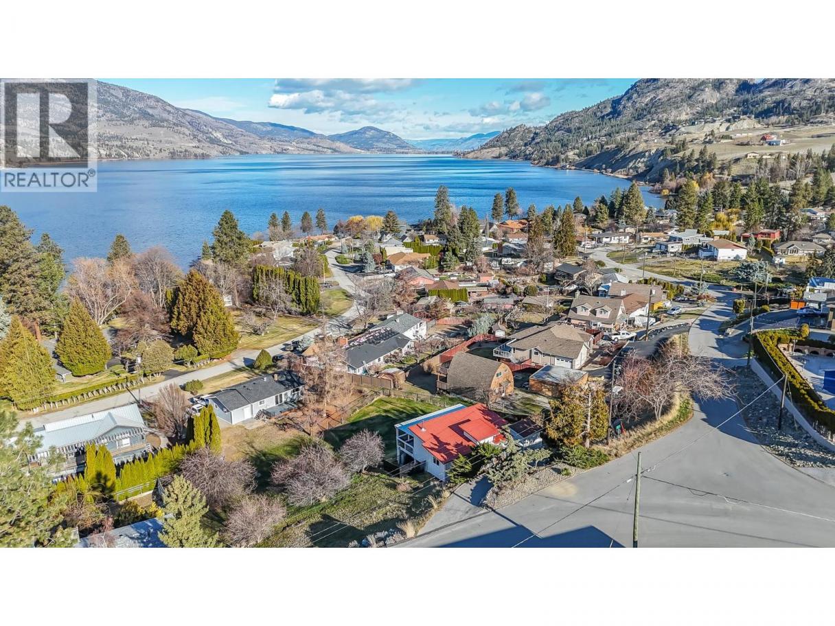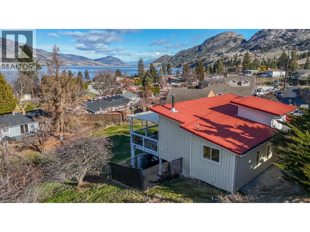 Must see, lake view home in peaceful Skaha Estates! Just in time for Summer, this lakeside community offers access to a beach & boat launch in tranquil surroundings! Thoughtfully designed, this warm & welcoming home takes advantage of beautiful views from both the main floor & the walk out basement. On the main floor you'll find a generous primary bdrm w/sliding doors to the lake view deck, a professionally updated 5pc bthrm w/rain shower, an open concept kitchen w/brand new Chef's fridge/eat up island, powered black out blinds & beautiful vaulted cedar ceilings. The living room is also located on this floor & features a cozy wood stove, tastefully updated flooring & over sized sliding doors to the sprawling lake view deck that's great for entertaining or to simply have some quiet time while enjoying the surroundings. Downstairs, the walk out basement has another updated 3pc bthrm, newer washer/dryer & two more bedrooms one of which has a side office space and sliders to its own patio which could present some exciting bnb opportunities for Buyers with the vision! This terrific offering also includes an upgraded electrical panel, newer heat pump & a newer hot water tank. Located on a generous 0.23 acre lot, the backyard is fully fenced allowing for kids & pets to play safely and there's a sturdy new shed for extra storage. Enjoy a quiet, lakeside lifestyle while being a quick 15 min drive to Penticton amenities. Come view all this beautiful property has to offer today! (id:6769)