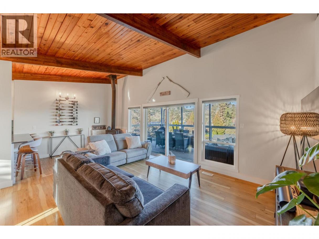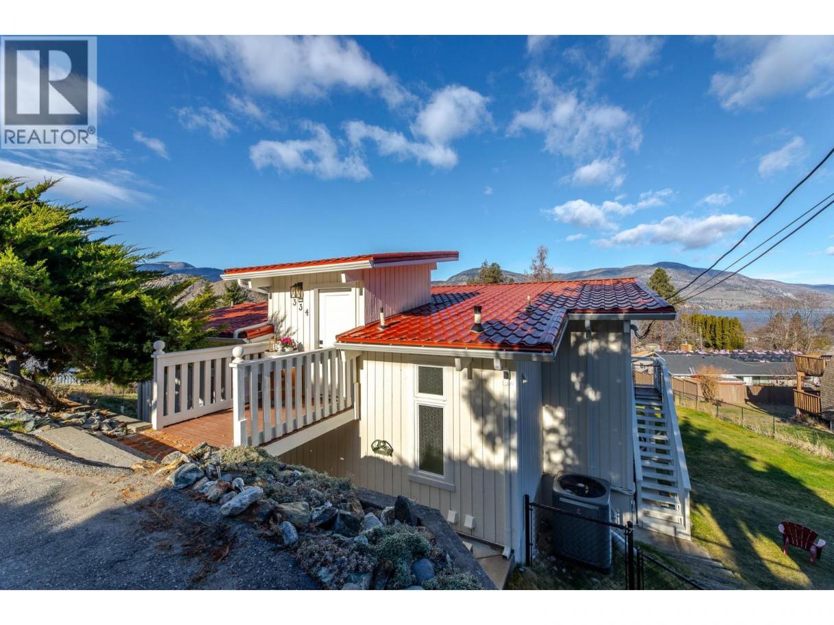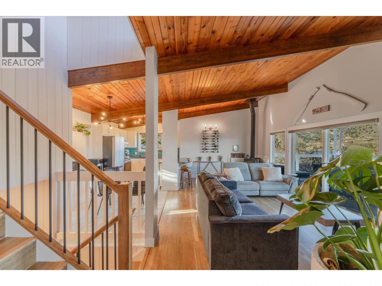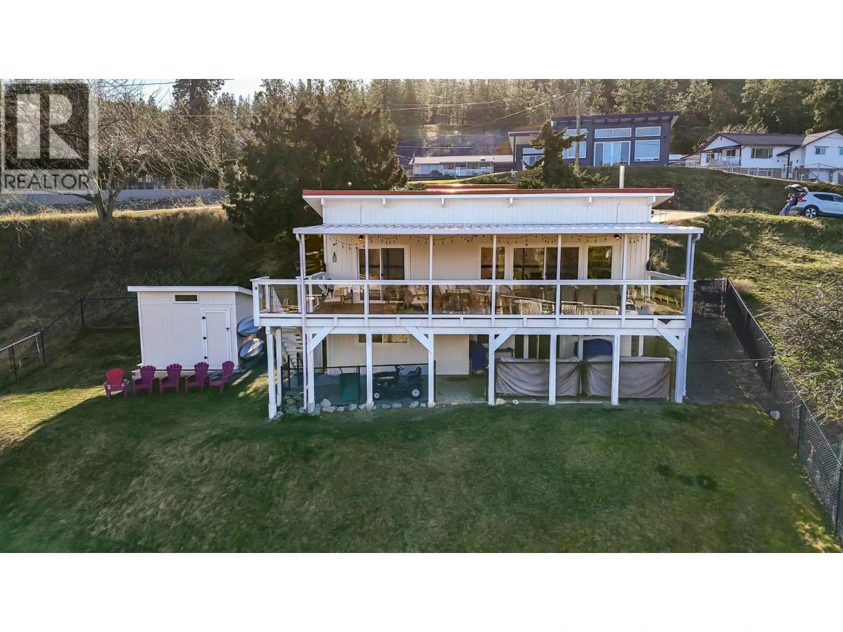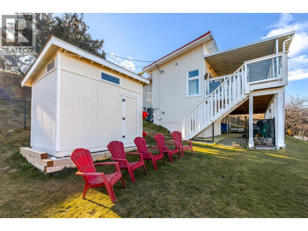 Must see, lake view home in peaceful Skaha Estates! Just in time for Summer, this lakeside community offers access to a beach & boat launch in tranquil surroundings! Thoughtfully designed, this warm & welcoming home takes advantage of beautiful views from both the main floor & the walk out basement. On the main floor you'll find a generous primary bdrm w/sliding doors to the lake view deck, a professionally updated 5pc bthrm w/rain shower, an open concept kitchen w/brand new Chef's fridge/eat up island, powered black out blinds & beautiful vaulted cedar ceilings. The living room is also located on this floor & features a cozy wood stove, tastefully updated flooring & over sized sliding doors to the sprawling lake view deck that's great for entertaining or to simply have some quiet time while enjoying the surroundings. Downstairs, the walk out basement has another updated 3pc bthrm, newer washer/dryer & two more bedrooms one of which has a side office space and sliders to its own patio which could present some exciting bnb opportunities for Buyers with the vision! This terrific offering also includes an upgraded electrical panel, newer heat pump & a newer hot water tank. Located on a generous 0.23 acre lot, the backyard is fully fenced allowing for kids & pets to play safely and there's a sturdy new shed for extra storage. Enjoy a quiet, lakeside lifestyle while being a quick 15 min drive to Penticton amenities. Come view all this beautiful property has to offer today! (id:6769)