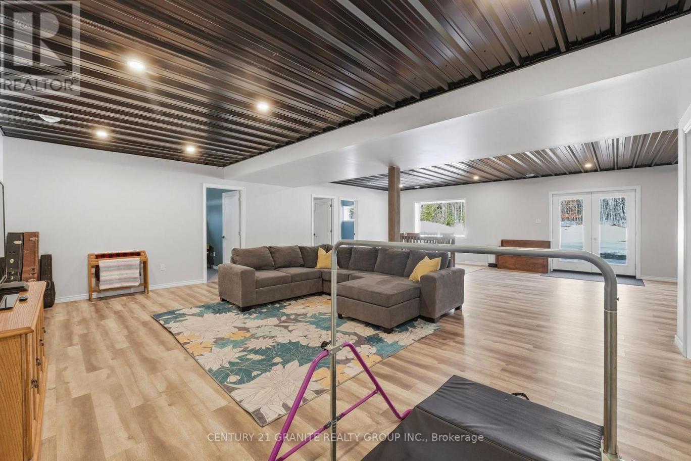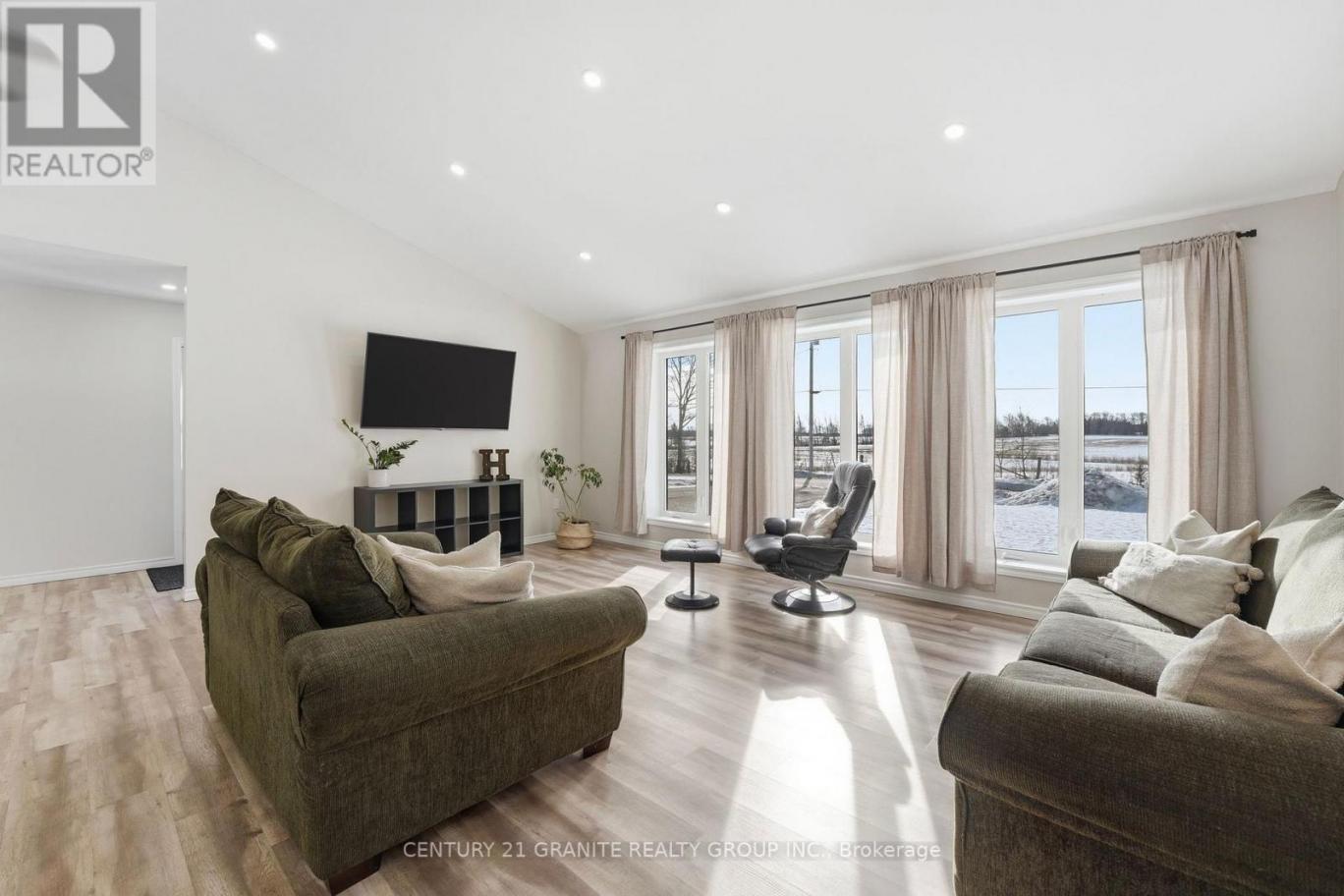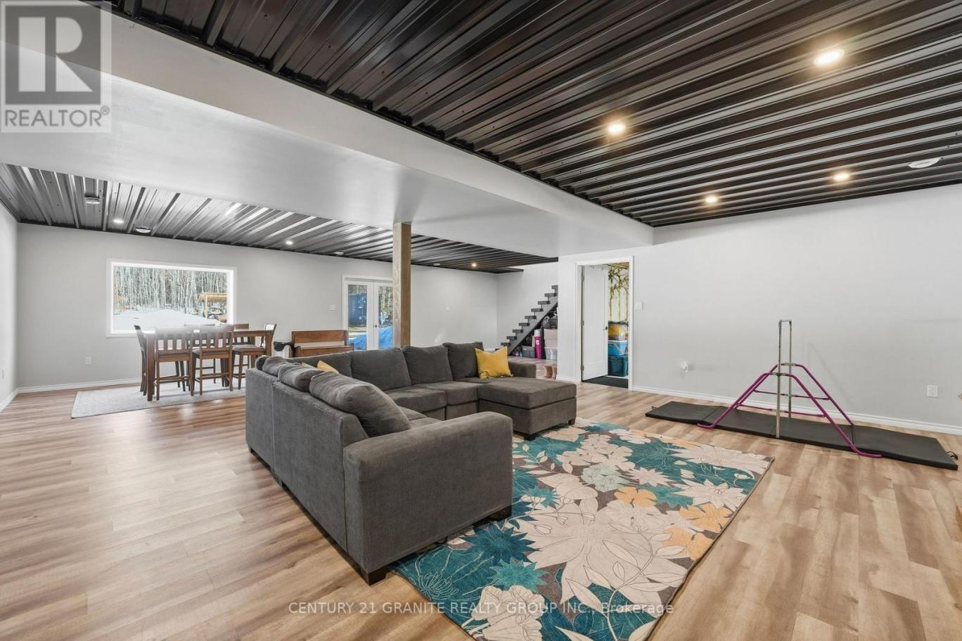 Welcome to 36 Fraser Lake Road-a modern country home offering just steps from the lake on a beautiful 1.19 acre lot. Built in 2021, this turn-key property is ready to be enjoyed this summer! The interior offers a bright, open layout with large windows that fill the home with natural light and showcase the stunning southern views over acres of open farmland. Durable and stylish luxury vinyl plank flooring flows throughout the main living areas, creating a warm and cohesive feel. The main floor features three spacious bedrooms, including a primary suite complete with a private ensuite and generous closet space. Large closets, pantries and plenty of storage throughout the home make it easy to stay organized. Downstairs, the fully finished walkout basement adds even more living space with two additional bedrooms, full bathroom and a huge recreation room-the perfect spot for movie nights, games, or entertaining. The rec room is finished with a striking corrugated black metal ceiling that adds a modern, industrial touch. Walk out directly to the new stamped concrete patio and enjoy the expansive yard, ideal for kids, pets, or hosting summer gatherings. Built on solid ICF construction and topped with a durable metal roof, this home offers both efficiency and long-term peace of mind. Heating is provided by a forced-air propane furnace. Outdoor lovers will appreciate the location-just a five-minute walk to the Fraser Lake boat launch where you can enjoy boating, fishing, and relaxing days on the water. If you're looking for newer home with extra space, modern finishes, and beautiful countryside views, 36 Fraser Lake Road is ready to welcome you home. (id:6769)