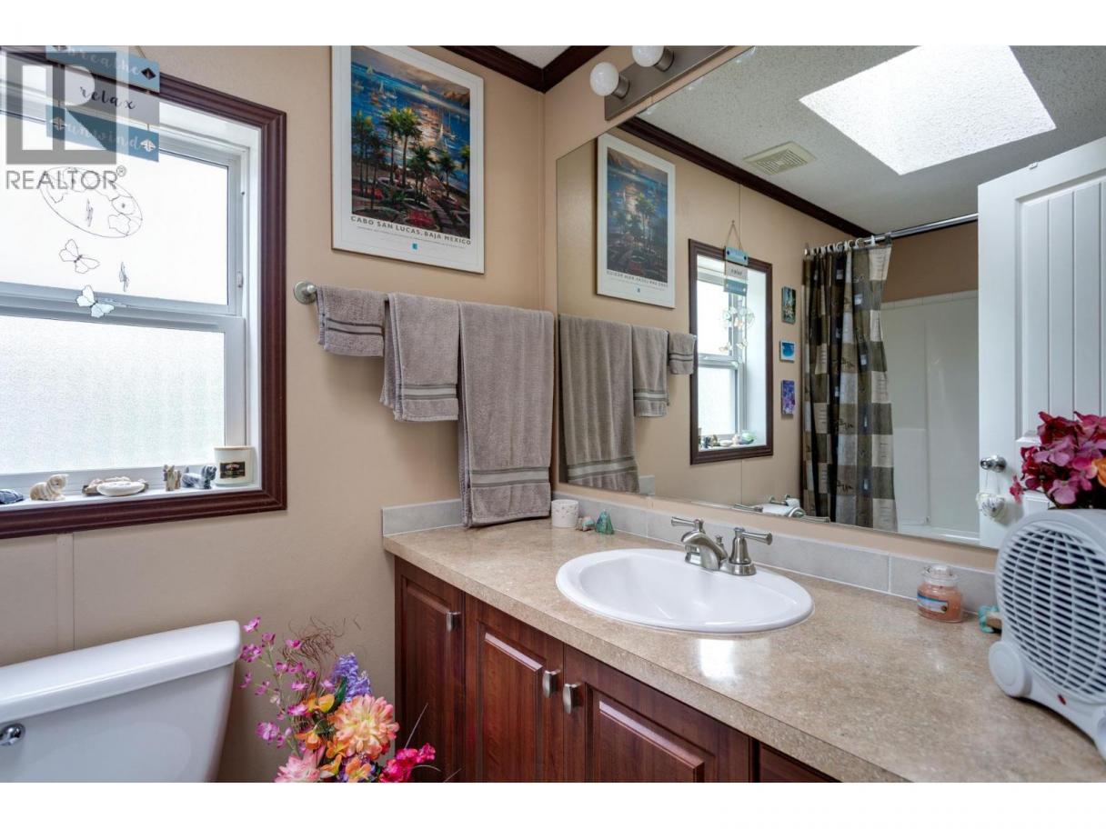 Dreaming of lakeside living without breaking the bank? Discover this spacious 2 bedroom/2 bathroom 2008 home in West Kelowna, featuring a large living room, a well-appointed kitchen with ample storage, and an expansive outdoor deck perfect for enjoying the Okanagan lifestyle. The home offers a desirable split-bedroom layout for enhanced privacy and two skylights that fill the space with natural light and a jacuzzi bathtub located in the ensuite for ultimate relaxation. Recent upgrades include an updated hot water tank, dishwasher, superior vinyl planking flooring, installed leafguard, and fresh paint throughout. Enjoy walking proximity to beach access for those hot Okanagan days and evenings. A beautiful shed provides additional storage. The property boasts attractive landscaping with mature peach and cherry trees and a fenced yard. Gross annual taxes are $1272. Prospective buyers are encouraged to know their credit score prior to requesting a viewing (a score around 730 is typically required). Please note, while cats and small pets are welcome, dogs are not permitted. This is a must-see property. (id:6769)