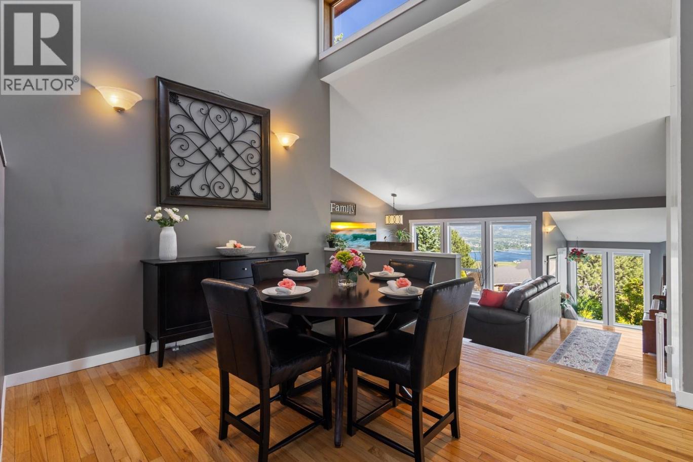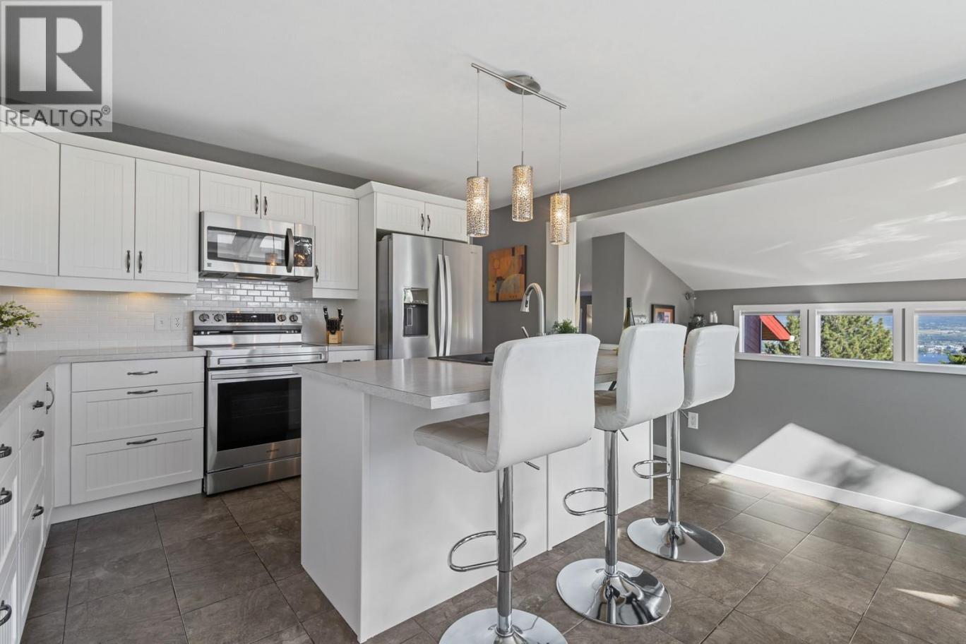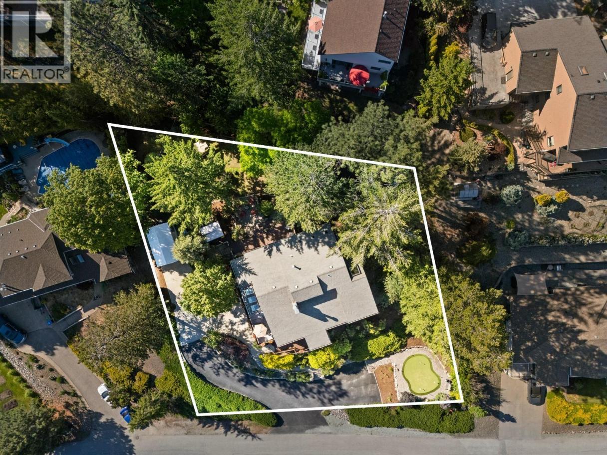 Some homes simply feel different the moment you arrive. Nestled in a quiet, coveted corner of West Kelowna Estates and set on a beautifully landscaped 0.44-acre lot, this distinctive family home captures sweeping lake, city, and mountain views while delivering a rare blend of warmth, character, and elevated lifestyle. Over 4,000 sq. ft. unfolds across multiple levels, where expansive windows frame the scenery and skylights pour natural light into the main living spaces. Hardwood floors, curated lighting, and inviting gathering areas create a home that feels both sophisticated and effortlessly comfortable. The refreshed kitchen anchors the home with modern cabinetry, updated lighting, and newer appliances, while the skylit dining nook becomes a natural place to gather for slow mornings and lively dinners. Just beyond, multiple patios and decks extend the living experience outdoors — each one perfectly positioned to take in the ever-changing views. The main level offers three bedrooms, including a beautiful primary retreat with spa-inspired ensuite, electric fireplace, and its own private patio. Downstairs adds flexibility with a spacious recreation area, additional bedroom, den, and separate entrance — ideal for guests, creative space, or extended family. Outside, the property transforms into a private retreat. The fully fenced backyard features a hot tub, fire pit lounge, tree fort and 3 sheds while the front yard includes a three-hole putting green offering incredible panoramic city views while you play. The property boasts ample parking for RV’s and toys. With room for a future pool, detached shop/garage or carriage house, the possibilities here are as expansive as the views. Private, stylish, and full of personality — an oasis that truly stands apart in West Kelowna Estates. This is one you have to experience for yourself! (id:6769)