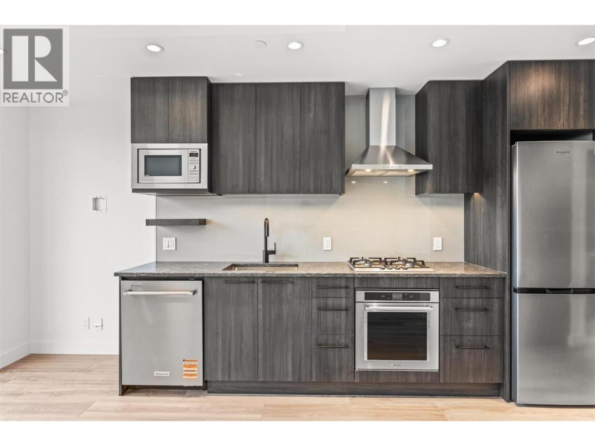 Step into ALMA by Mission Group--this smartly crafted 4th floor studio residence offers approximately 312 sq ft of sun-filled, highly functional living in the heart of Kelowna’s coveted Lower Mission. Designed for effortless Okanagan living, this home blends style and efficiency with ease. The contemporary kitchen showcases flat-panel wood-grain cabinetry, sleek quartz counters, porcelain tile backsplash, and a premium stainless steel appliance package, all accented by under-cabinet LED lighting. Expansive windows flood the open layout with natural light, while durable laminate flooring and modern roller shades add a polished finish. The spa-inspired bathroom delivers everyday luxury with large-format tile, a rainfall shower, custom niche, and soft ambient lighting. Comfort meets convenience with in-suite laundry and individually controlled heating and cooling for year-round climate control. Residents enjoy access to exceptional amenities, including an 8,000 sq ft lakeview terrace complete with firepits, BBQ areas, and community gardens, plus a fully equipped fitness centre, dog wash station, and bike maintenance hub. With an outstanding walk score of 93, you’re just steps to transit, Kelowna General Hospital, the boutiques and dining of vibrant Pandosy Village, and the shores of Okanagan Lake. Square footage and room dimensions are approximate. Photos may represent a similar home and layout. Newly constructed and move-in ready! Price is Exclusive of GST. (id:6769)