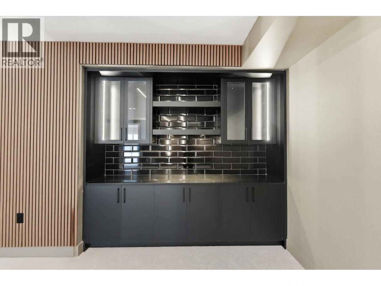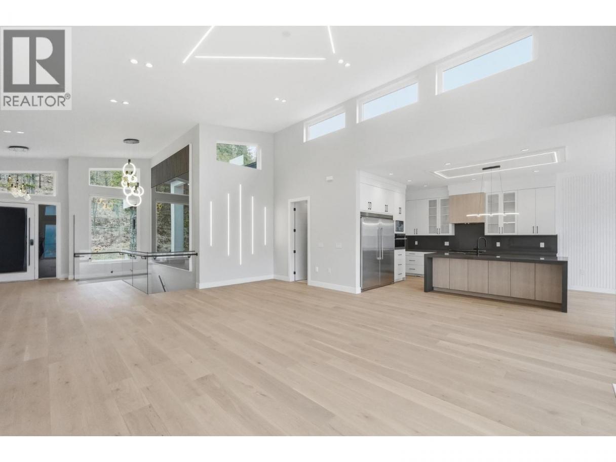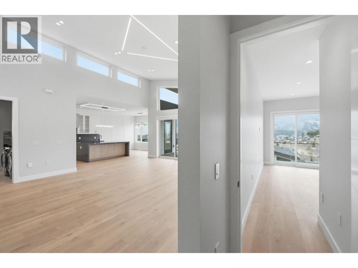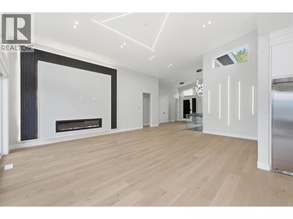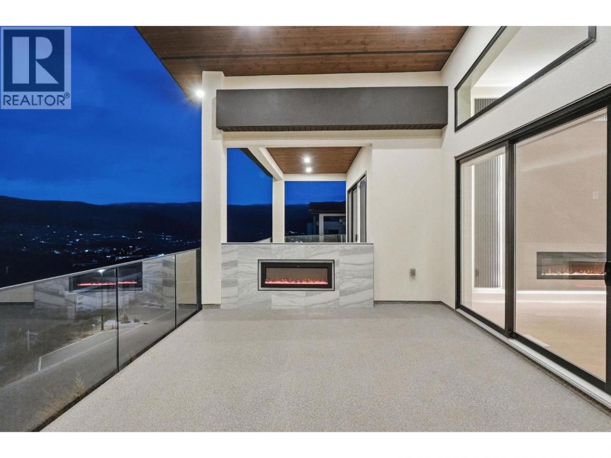 Perched on the hillside in desirable Black Mountain, this exceptional 6-bedroom, 4-bathroom residence offers stunning valley views, thoughtful design, and modern luxury throughout. Expansive windows flood the home with natural light, complemented by elegant lighting selections that allow you to set the perfect atmosphere day or night. The main living area features engineered hardwood flooring and a beautifully designed chef’s kitchen equipped with premium Electrolux appliances, a gas range, and an oversized chef’s refrigerator. A fully equipped spice kitchen provides additional space for cooking and entertaining while keeping the main kitchen pristine. Upon entry, a striking custom glass display above the staircase, crafted with a single joint, creates a dramatic focal point and enhances the home’s open feel. The layout flows seamlessly from the kitchen and living area onto a balcony with its own fireplace which is perfect for enjoying Okanagan evenings. Downstairs offers a spacious second living area, two additional bedrooms, and an impressive 23 ft x 23’6” theatre room complete with a built-in bar. The property also includes a private 2-bedroom suite currently rented for $2,000 per month, positioned along the side of the home to maximize privacy. Additional features include a double garage with epoxy flooring, irrigated landscaping, a generous backyard, and the added benefit of GST being paid by the seller. (id:6769)
