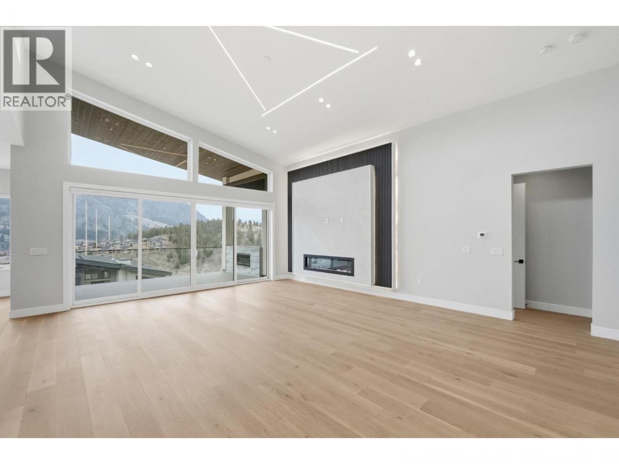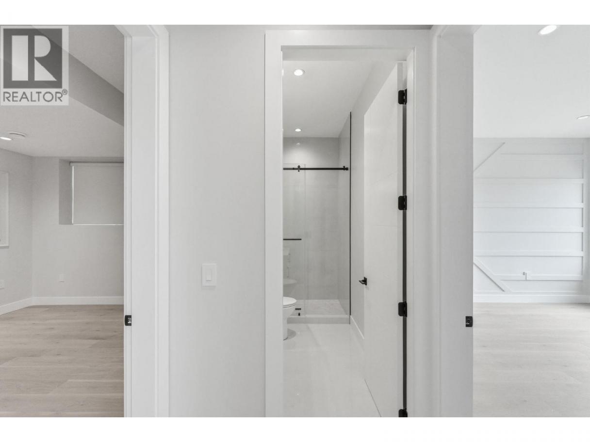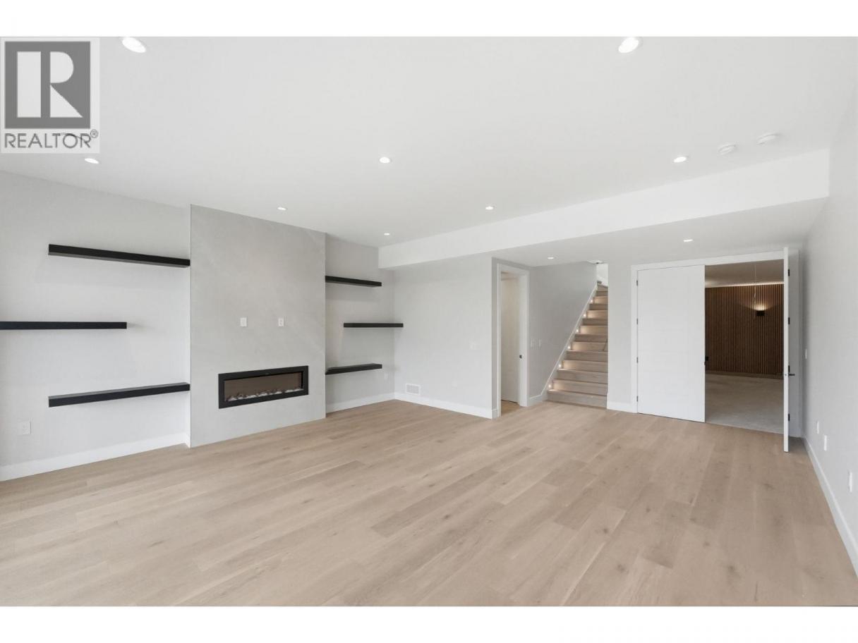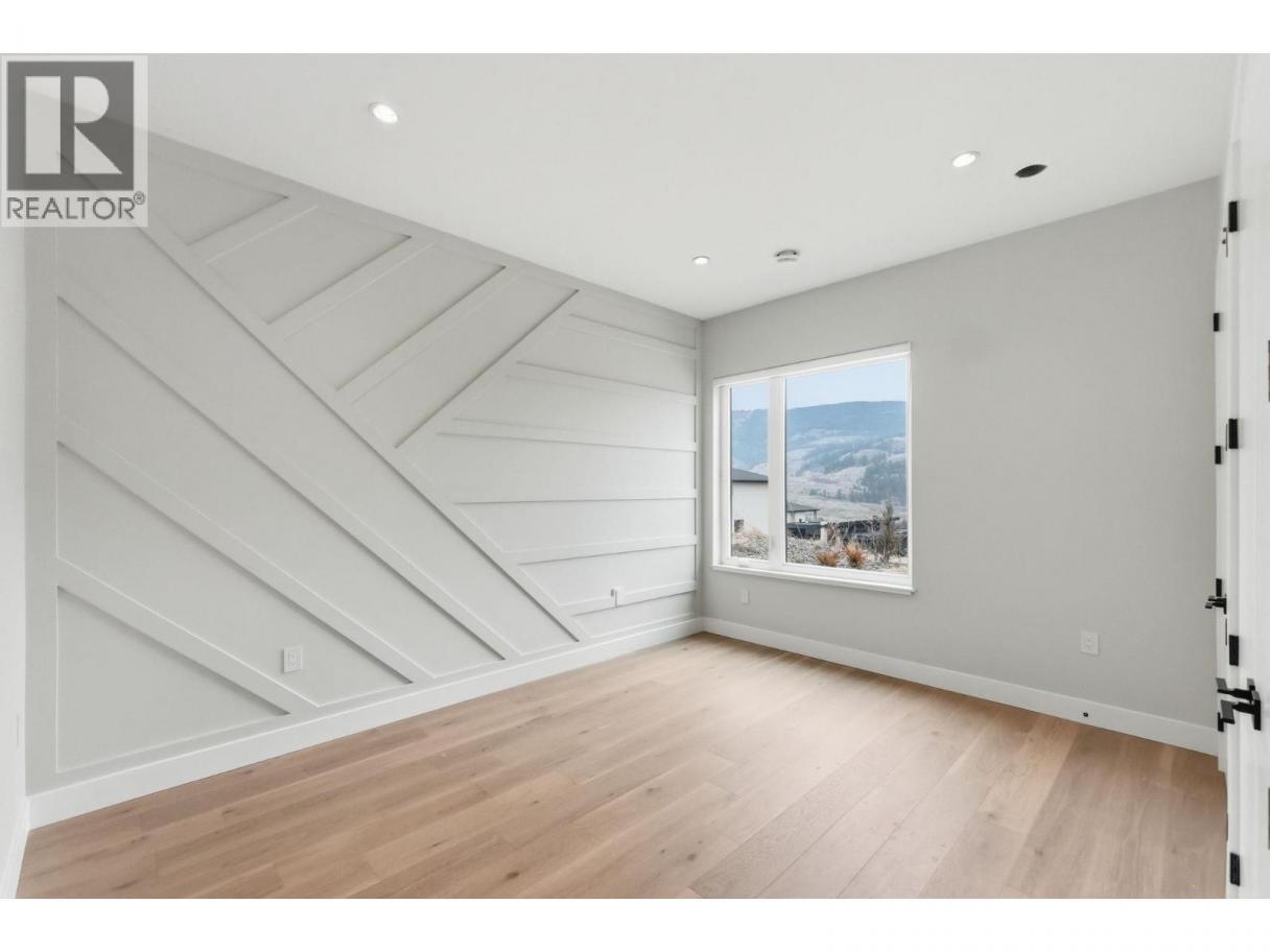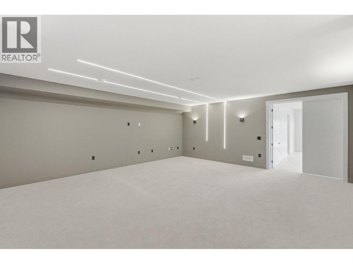 Perched on the hillside in desirable Black Mountain, this exceptional 6-bedroom, 4-bathroom residence offers stunning valley views, thoughtful design, and modern luxury throughout. Expansive windows flood the home with natural light, complemented by elegant lighting selections that allow you to set the perfect atmosphere day or night. The main living area features engineered hardwood flooring and a beautifully designed chef’s kitchen equipped with premium Electrolux appliances, a gas range, and an oversized chef’s refrigerator. A fully equipped spice kitchen provides additional space for cooking and entertaining while keeping the main kitchen pristine. Upon entry, a striking custom glass display above the staircase, crafted with a single joint, creates a dramatic focal point and enhances the home’s open feel. The layout flows seamlessly from the kitchen and living area onto a balcony with its own fireplace which is perfect for enjoying Okanagan evenings. Downstairs offers a spacious second living area, two additional bedrooms, and an impressive 23 ft x 23’6” theatre room complete with a built-in bar. The property also includes a private 2-bedroom suite currently rented for $2,000 per month, positioned along the side of the home to maximize privacy. Additional features include a double garage with epoxy flooring, irrigated landscaping, a generous backyard, and the added benefit of GST being paid by the seller. (id:6769)
