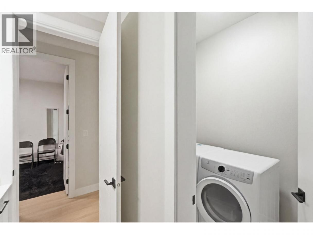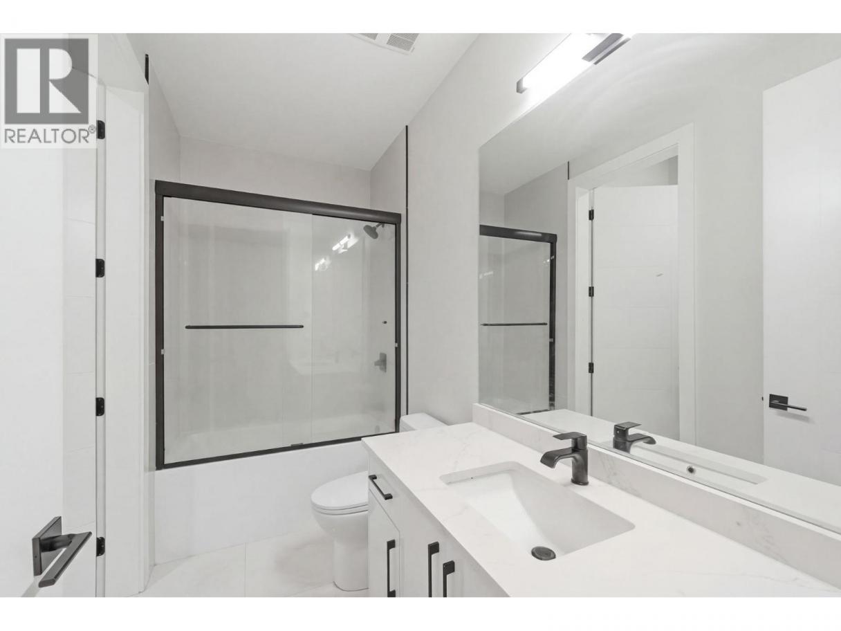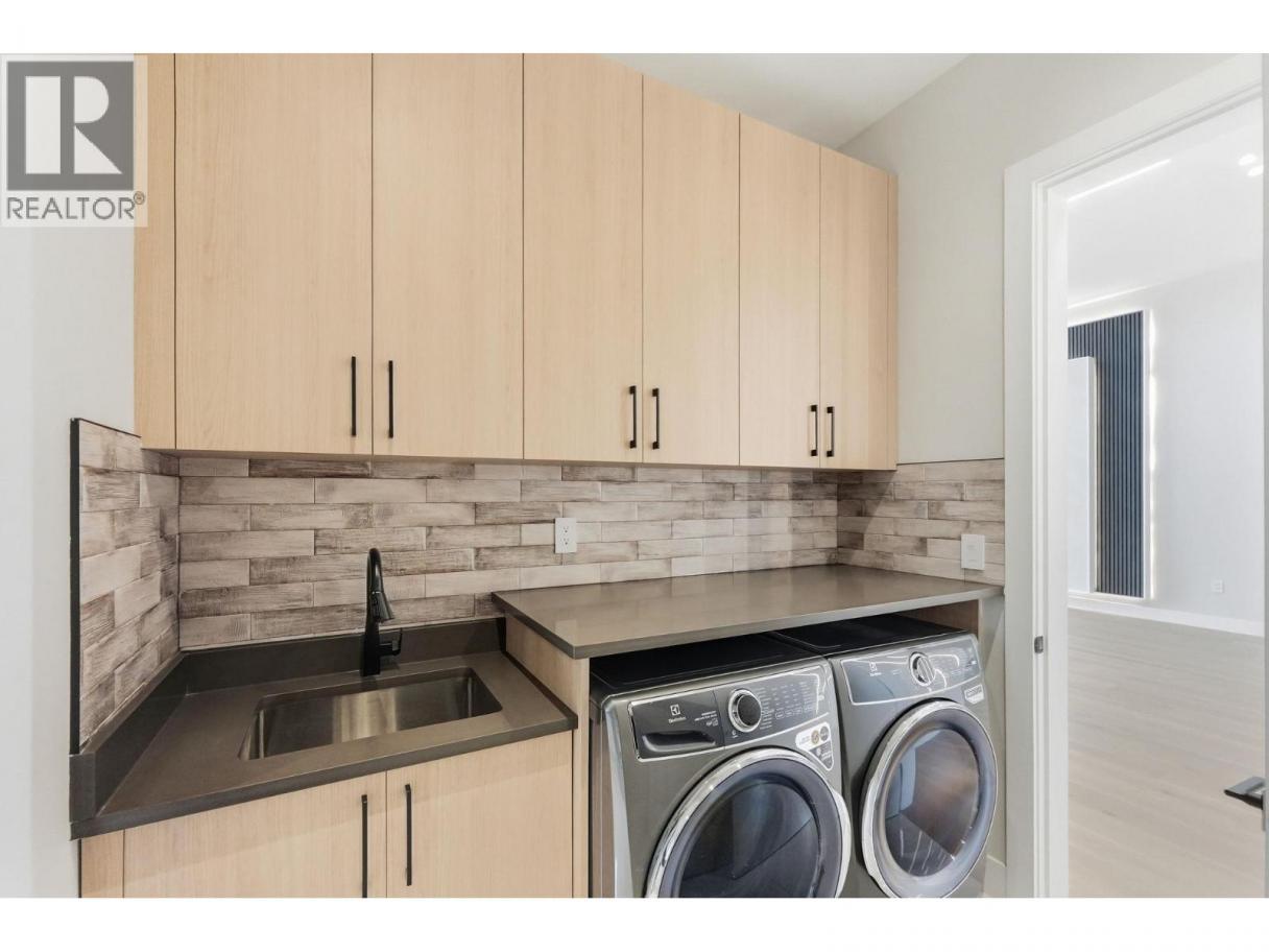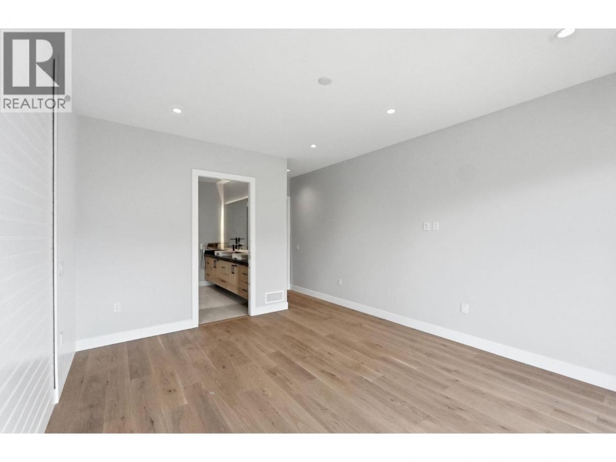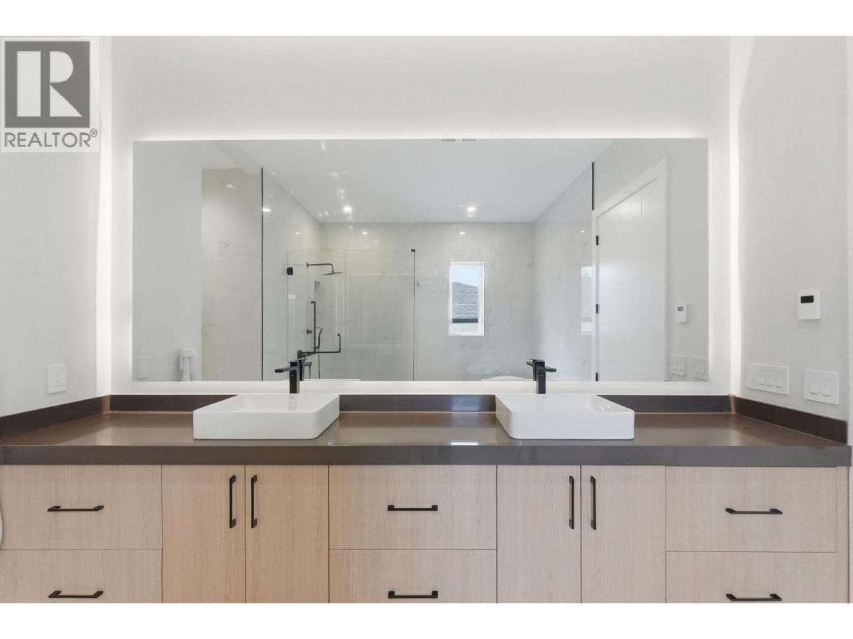 Perched on the hillside in desirable Black Mountain, this exceptional 6-bedroom, 4-bathroom residence offers stunning valley views, thoughtful design, and modern luxury throughout. Expansive windows flood the home with natural light, complemented by elegant lighting selections that allow you to set the perfect atmosphere day or night. The main living area features engineered hardwood flooring and a beautifully designed chef’s kitchen equipped with premium Electrolux appliances, a gas range, and an oversized chef’s refrigerator. A fully equipped spice kitchen provides additional space for cooking and entertaining while keeping the main kitchen pristine. Upon entry, a striking custom glass display above the staircase, crafted with a single joint, creates a dramatic focal point and enhances the home’s open feel. The layout flows seamlessly from the kitchen and living area onto a balcony with its own fireplace which is perfect for enjoying Okanagan evenings. Downstairs offers a spacious second living area, two additional bedrooms, and an impressive 23 ft x 23’6” theatre room complete with a built-in bar. The property also includes a private 2-bedroom suite currently rented for $2,000 per month, positioned along the side of the home to maximize privacy. Additional features include a double garage with epoxy flooring, irrigated landscaping, a generous backyard, and the added benefit of GST being paid by the seller. (id:6769)