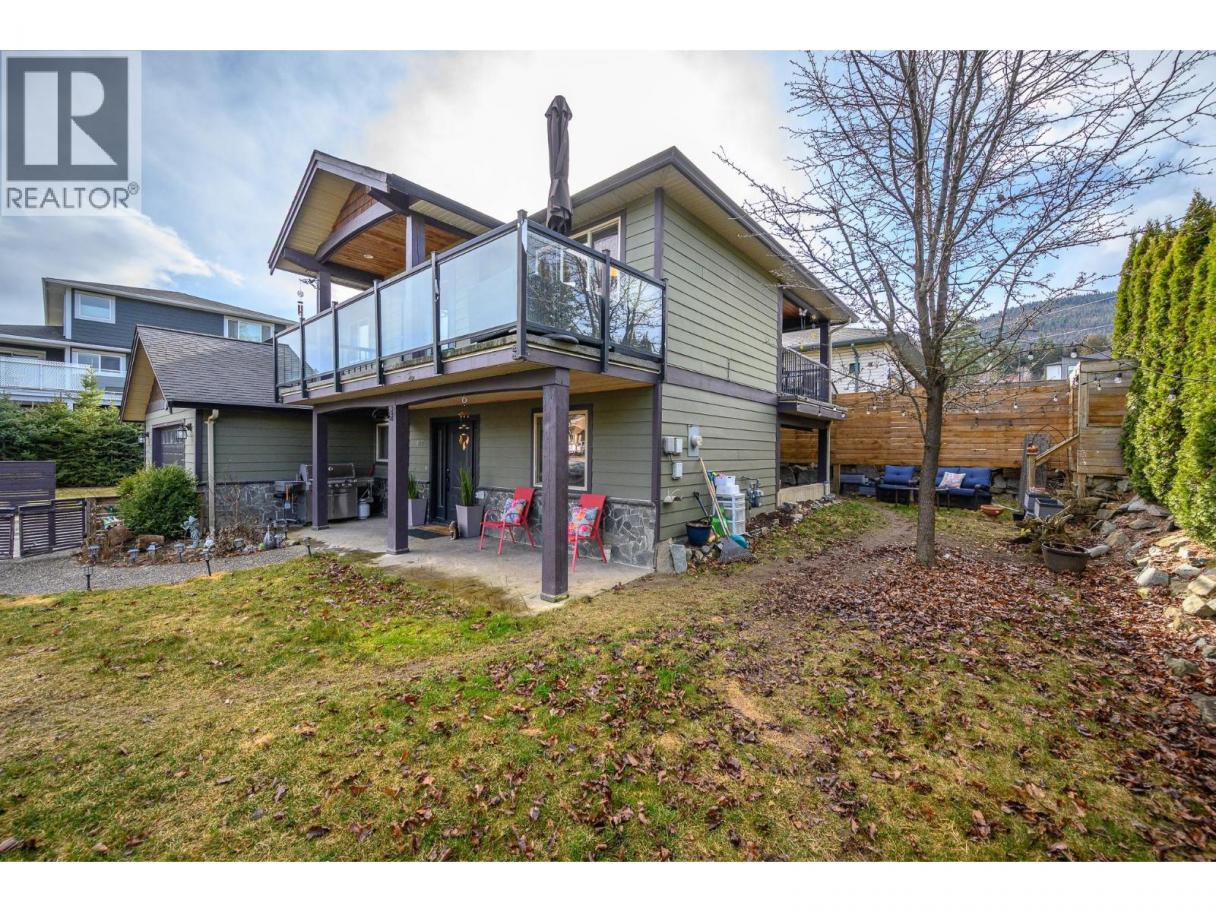 FAMILY HOME WITH SUITE IN A DESIRABLE NEIGHBOURHOOD! Set on a private corner lot in a sought-after area, this inviting property is the kind of place where kids ride bikes after dinner and lifelong memories are made.The bright open-concept kitchen, living, and dining area is designed for gathering and connection. Warm hardwood floors, tile in key spaces, and soft carpet add comfort throughout. The spacious kitchen offers abundant cabinetry, a charming post-and-beam accent, and direct access to a side balcony with BBQ hookup - perfect for easy summer dinners and entertaining. The cozy living room is anchored by an electric fireplace, creating the perfect place to unwind at the end of the day. French doors off the dining area lead to a concrete balcony where you can enjoy peaceful views of Shuswap Lake while sipping morning coffee or watching the sunset. With 4 bedrooms & 2 bathrooms in the main home, there is room for growing families. The primary suite provides a relaxing retreat w/ a generous 5-piece ensuite & deep soaker tub. Downstairs, a lovely 1-bed, 1-bath Suite w/ separate laundry & own entrance offers excellent potential for extended family, guests, or valuable mortgage helper income. Outside, the partially fenced yard is ready for summer fun w/ an above-ground pool, gazebo, and space for kids & pets to play. Extra parking & a double attached garage provide plenty of room for vehicles, storage, & all the family toys. A warm & welcoming home in a location families love! (id:6769)