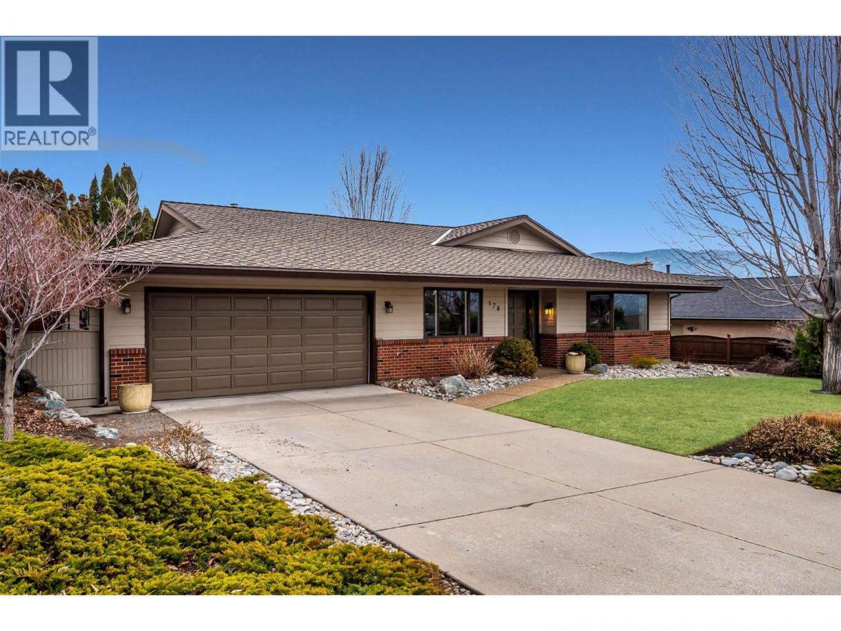 Welcome to 178 Westview Drive in the desirable Wiltse neighbourhood. This 1,775 sq ft rancher offers convenient one-level living in a quiet, family-friendly area close to schools, parks, and outdoor recreation. The home features 3 bedrooms and 2 bathrooms with a spacious and functional layout. A separate living room at the front of the home provides a bright space for entertaining, while the family room with fireplace offers a comfortable place to relax and gather. The kitchen includes plenty of cabinetry and connects to a casual eating nook with easy access to the backyard. The primary bedroom includes a walk-in closet and ensuite, while two additional bedrooms provide flexibility for family, guests, or a home office. Step outside to enjoy the super private backyard with mature landscaping and a covered patio, creating a wonderful outdoor space for relaxing, gardening, or entertaining. The double garage includes additional workshop space, perfect for hobbies, projects, or extra storage. Located within walking distance to Wiltse Elementary School and just minutes from hiking and biking trails, this property offers an excellent opportunity to own a home in one of Penticton’s most sought-after neighbourhoods. (id:6769)