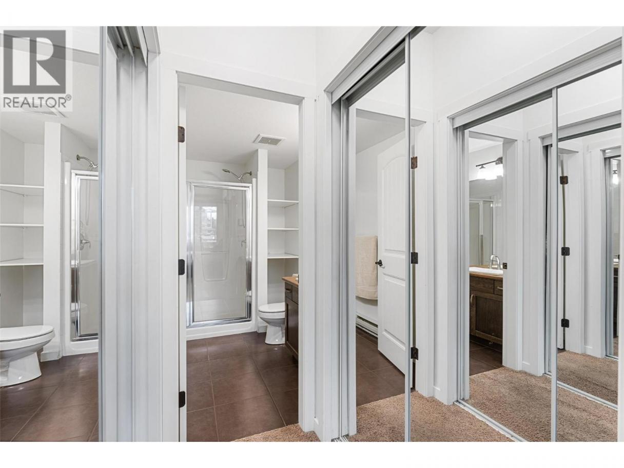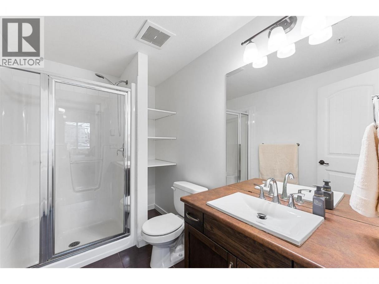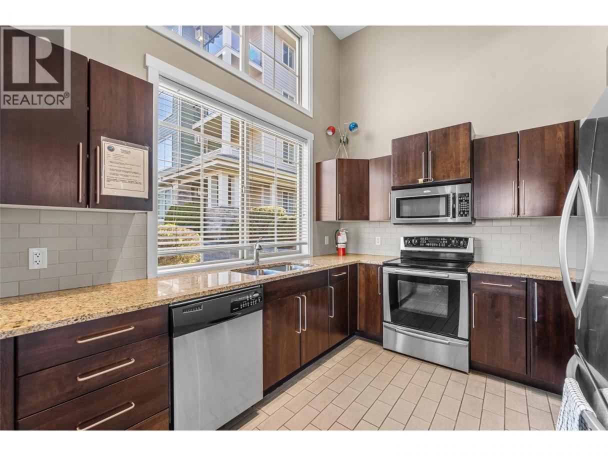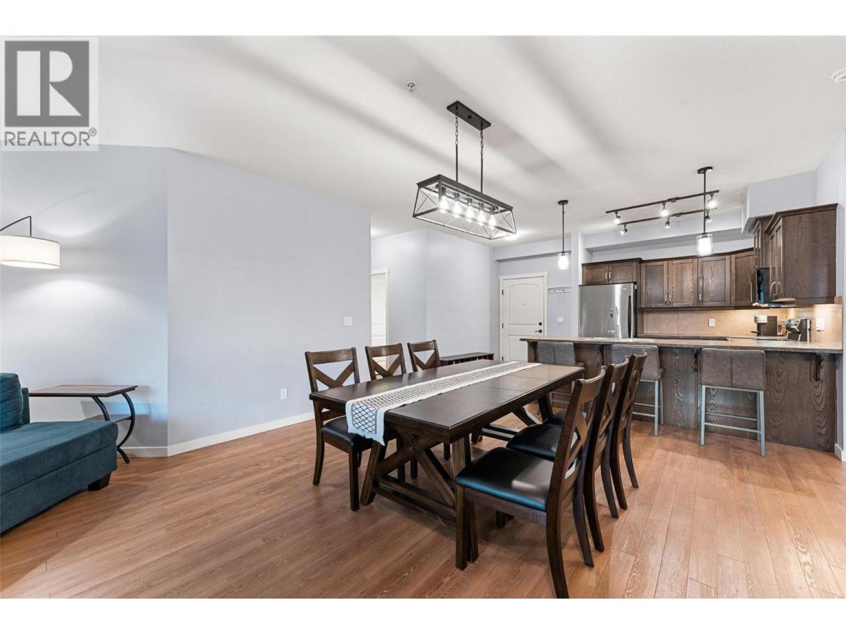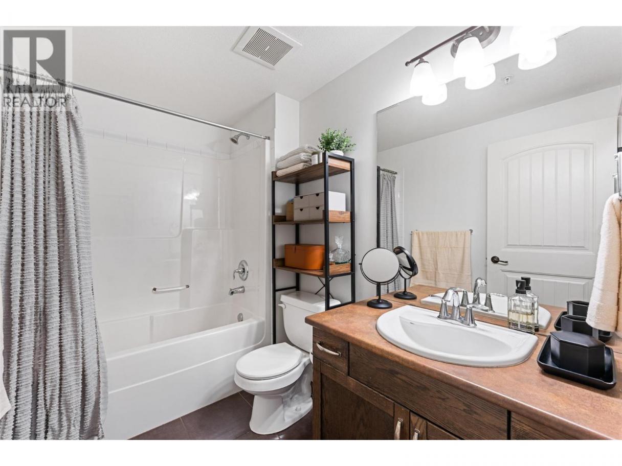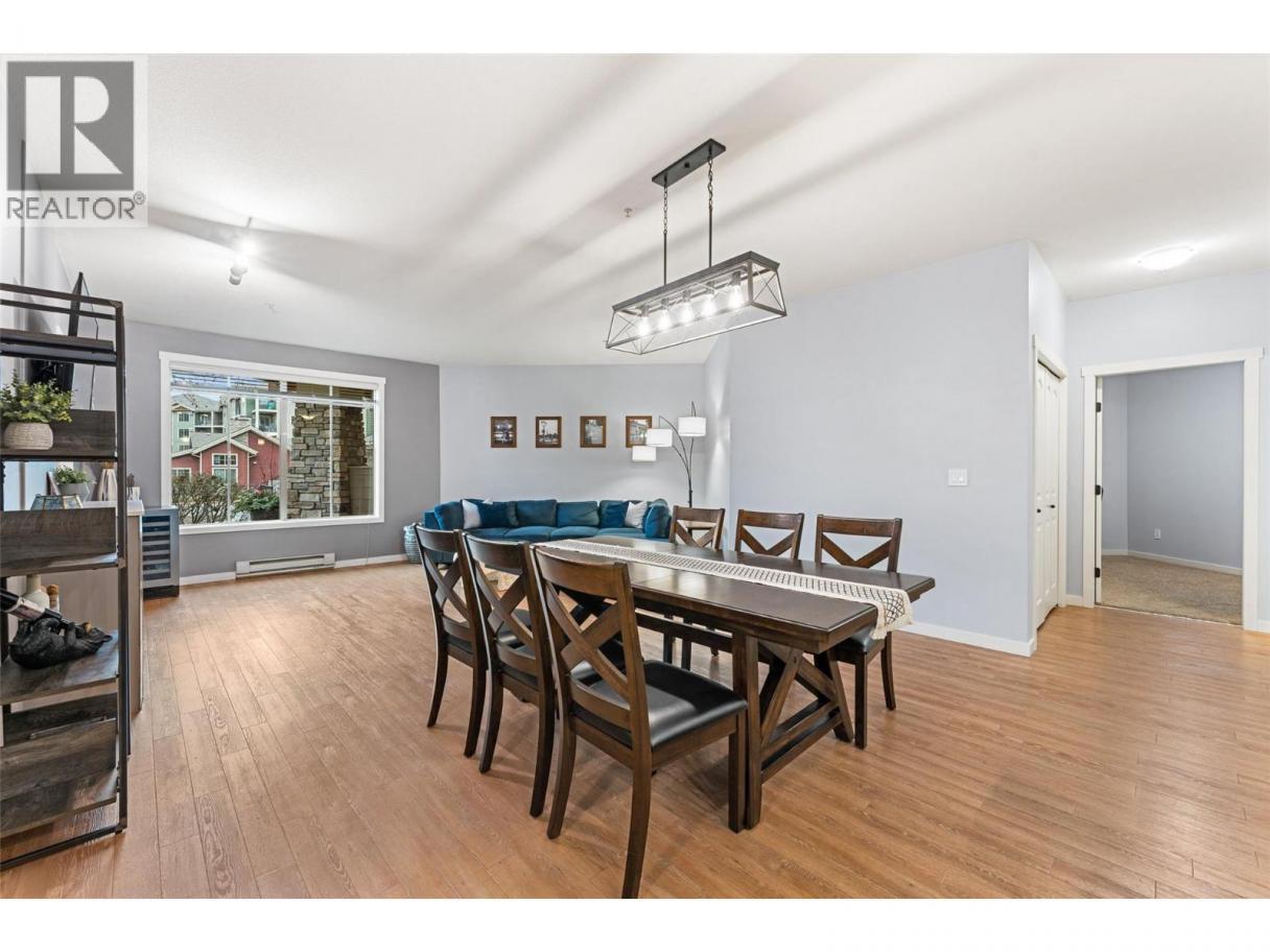Bright and inviting ground-level residence in Mission Meadows, built by Mission Group and ideally located in Kelowna’s desirable Lower Mission. Thoughtfully designed, this home offers 1 bed plus oversized den and 2 baths, creating a functional layout ideal for first-time buyers, professionals, or downsizers. High ceilings and wide-plank flooring enhance the open-concept living spaces, while large windows fill the home with natural light. The spacious kitchen features a U-shaped layout with island seating, oak cabinetry with under-cabinet lighting, and a newer appliance package. The dining area accommodates a full table and flows into the bright living room, complete with an electric fireplace and access to the covered patio—perfect for outdoor dining or morning coffee. The primary suite offers generous natural light, a walk-through closet with built-ins, and a private ensuite. A separate den provides flexible space for a home office or reading nook. Additional highlights include fresh paint, upgraded lighting, a new kitchen faucet, in-suite laundry, excellent in-unit storage, and two wall-mounted A/C units for comfort. This well-maintained building offers a resident clubhouse with fitness centre, games room, and kitchen, plus bike storage, guest parking, a dedicated parking stall, and storage locker. Potential additional parking for rent through strata. Just steps to H2O Adventure + Fitness Centre, shopping, cafés, transit, walking trails, and everyday amenities. (id:6769)