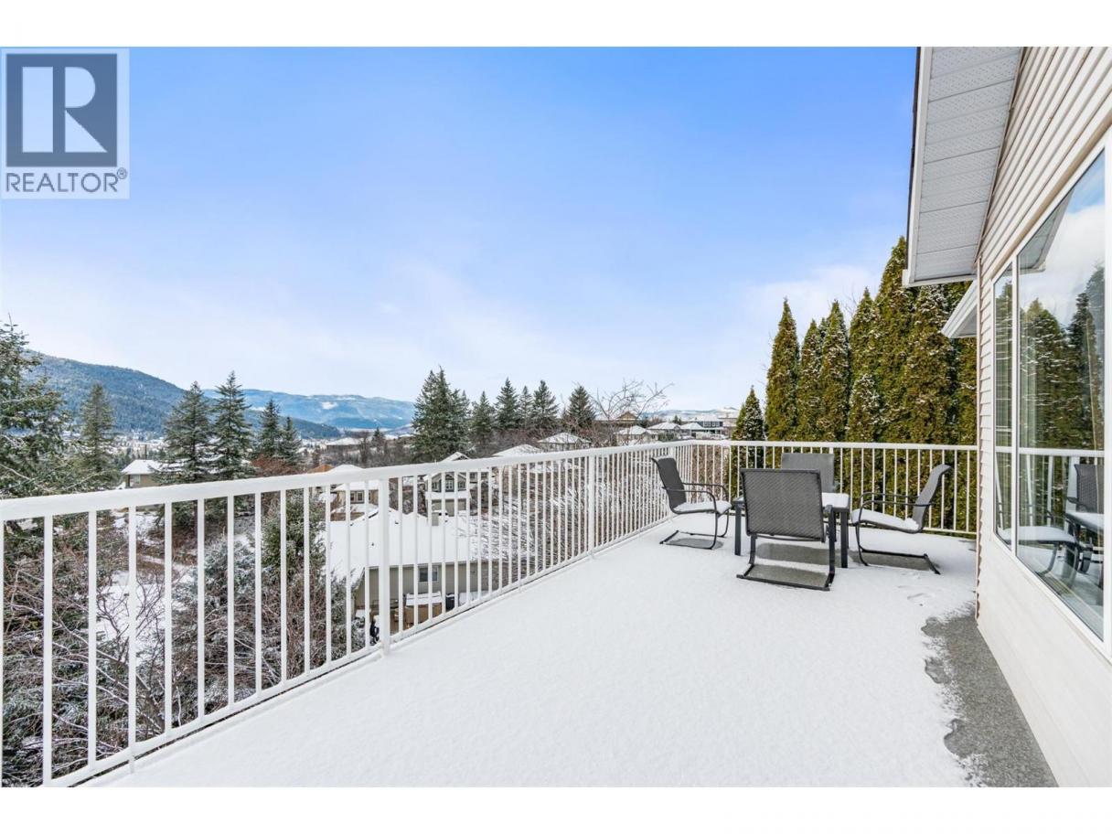 Wake up to spectacular valley sunrises in this beautifully designed rancher with a walkout basement, located in the sought-after Foothills neighbourhood. Offering 4 bedrooms and 3 bathrooms, this home blends comfort, space, and lifestyle in a family-friendly setting. The main floor features engineered hardwood flooring and a bright open living area with large east-facing windows capturing stunning valley and mountain views. The living room includes a cozy gas fireplace with access to the spacious deck, while the kitchen offers stainless steel appliances, an induction cooktop, and a central island and dining area perfect for entertaining. The main level includes a light filled primary bedroom with ensuite, a second bedroom, and a full bathroom. Downstairs, the fully finished walkout basement offers impressive 10-foot ceilings, a large family room, two additional bedrooms, a full bathroom with in-floor heating, and plenty of storage. Outside, the flat fenced yard offers room for relaxation and play, complete with underground irrigation, a storage shed, and a hot tub hookup. Just minutes from walking trails and a short drive to SilverStar Ski Resort, this home offers the perfect balance of lifestyle, comfort, and year-round adventure. For more information or a private viewing of this property contact RE/MAX Vernon Salt Fowler today at 250-549-7258 and “Just Add Salt”! (id:6769)