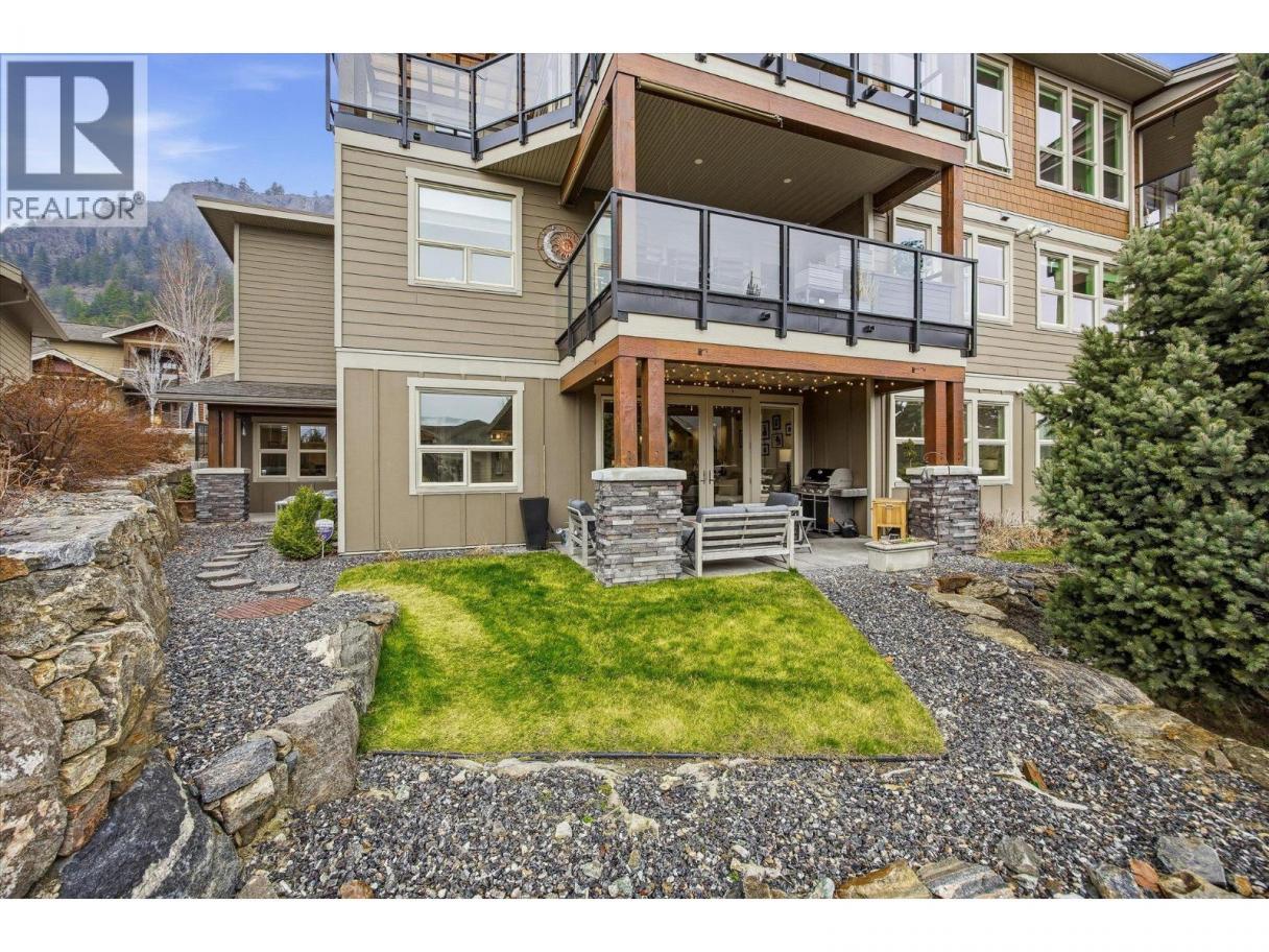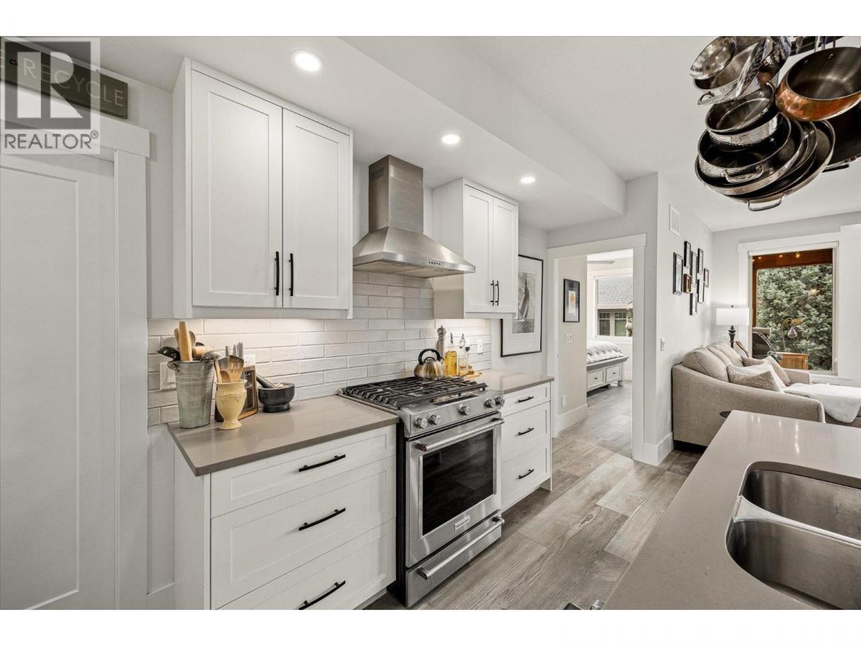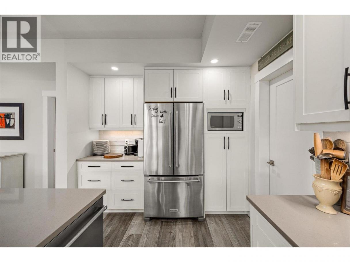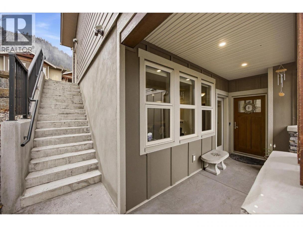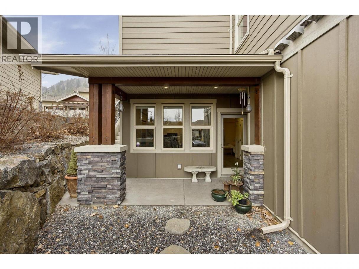 Quaint and Cozy! This bright, one level-ground floor townhome offers 1676 Sq. Ft of spacious living with 3 bedrooms, 3 bathrooms and a detached single garage with driveway parking for one additional car. Your out-of-town guests or residing family member will appreciate the privacy of this unique floor plan which includes an attached wing with a separate entry, a generous sized bedroom/multi use space and one full bathroom. Unwind in the open concept living-dining and kitchen area overlooking French glass doors leading onto a semi-covered, stamped concrete outdoor space with newly planted lavender. Recipe’s new or old will be inspired by the stunning rod iron, ceiling mounted gourmet rack, a large walk-in pantry equipped with a secondary fridge and floating pantry shelfs. Gas stove cooking, S/S appliances, stone-composite countertops and a kitchen island that seats three creates the perfect backdrop for cooking and hosting. Other interior features include a front wood door with custom stain leaded glass for privacy, a gas fireplace with a wood mantle, custom window coverings, heated ensuite flooring and a “slide and lock” custom closet system. Direct access to visitor parking along a short pebble pathway off of your private back patio space provides additional convenience. This charming Peachland “nest” is perfectly situated within a few short minute drive to the Lake, trendy cafe's, boutique shopping and to the popular Pincushion Mountain for the outdoor enthusiasts! (id:6769)