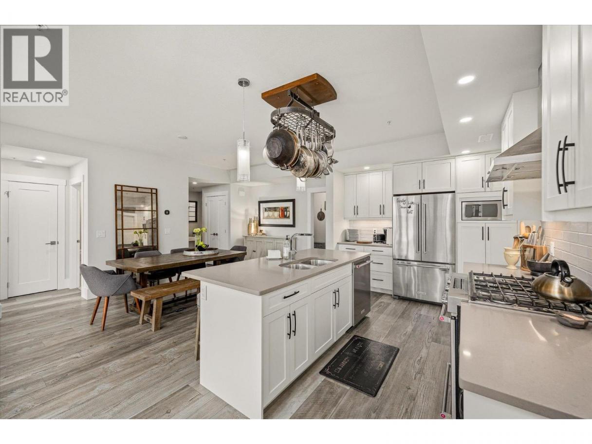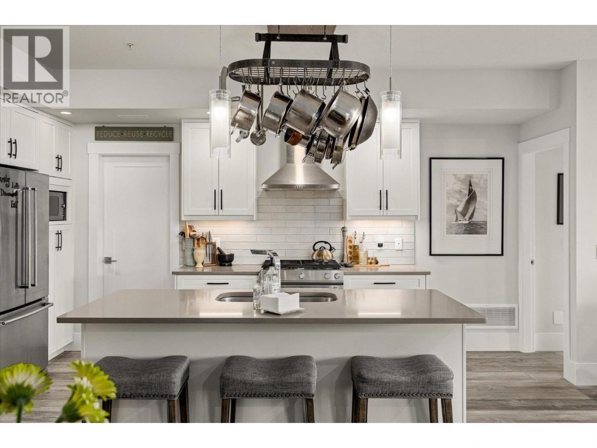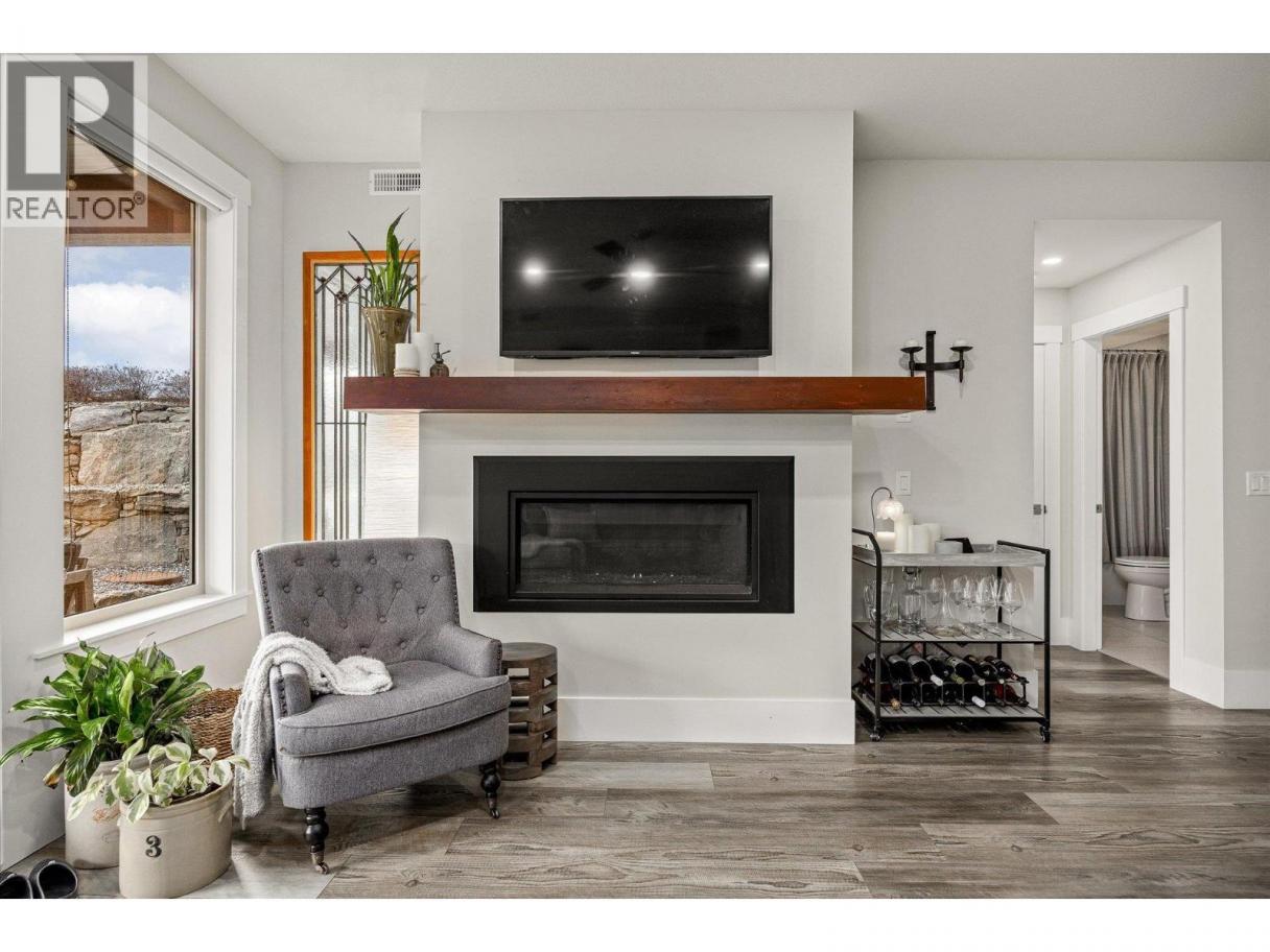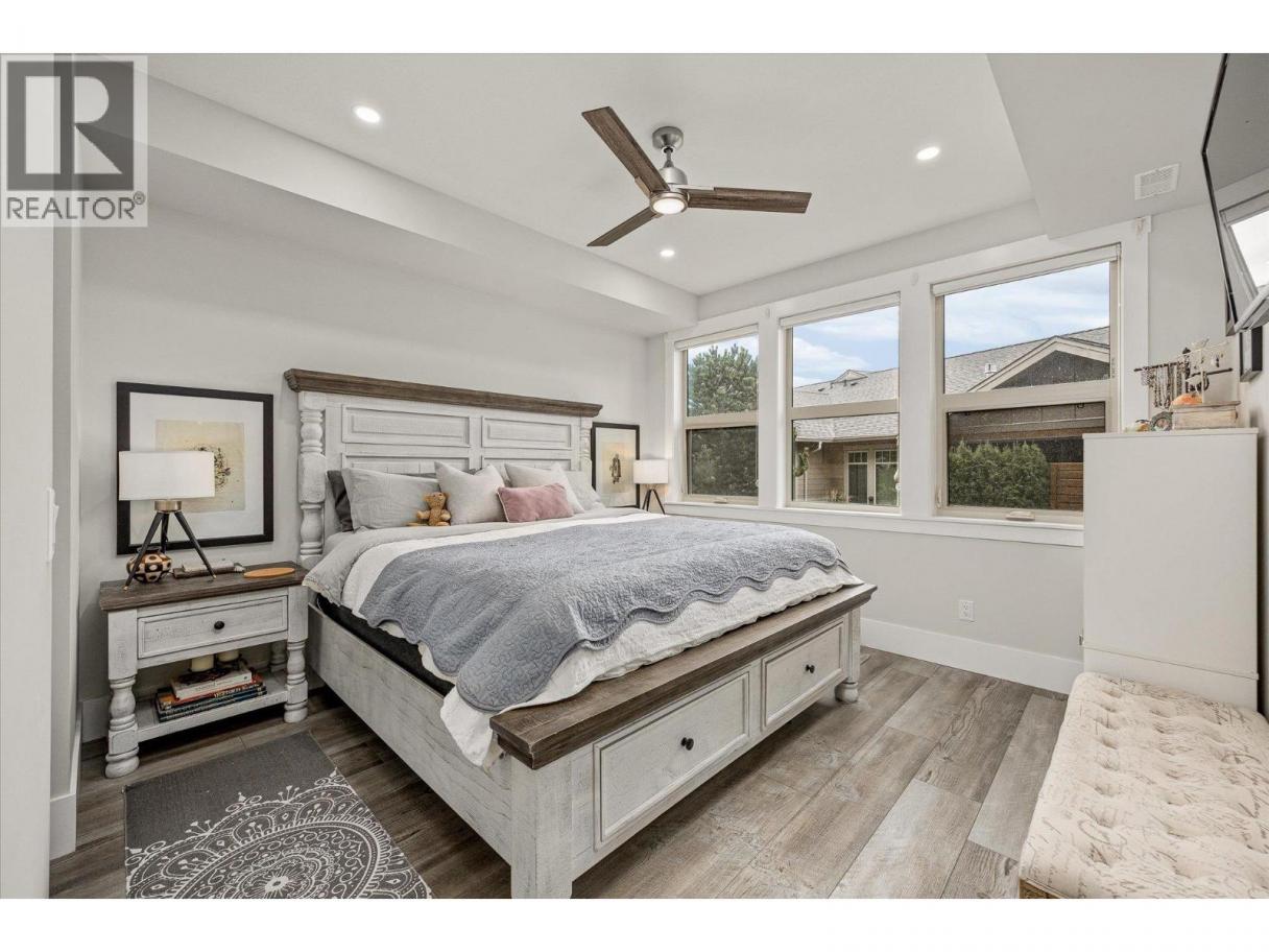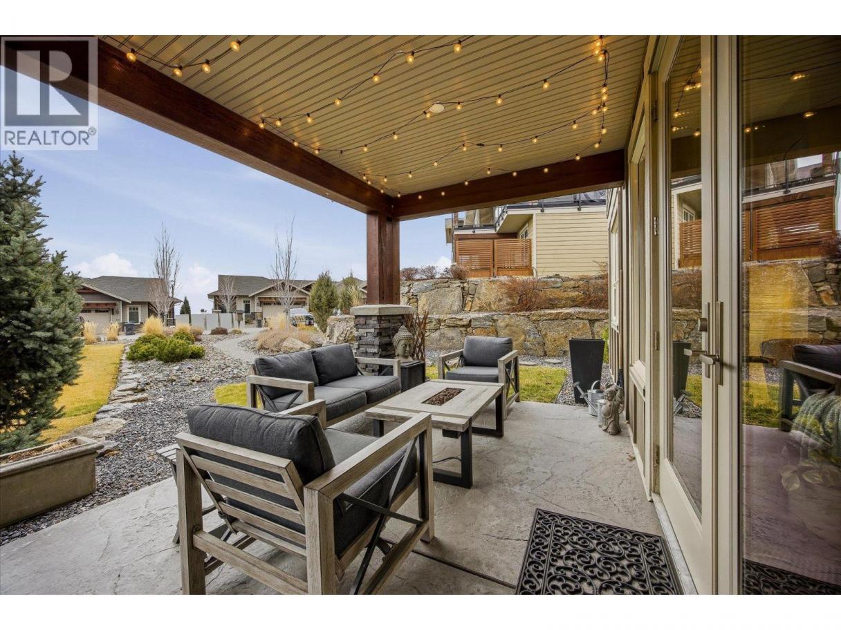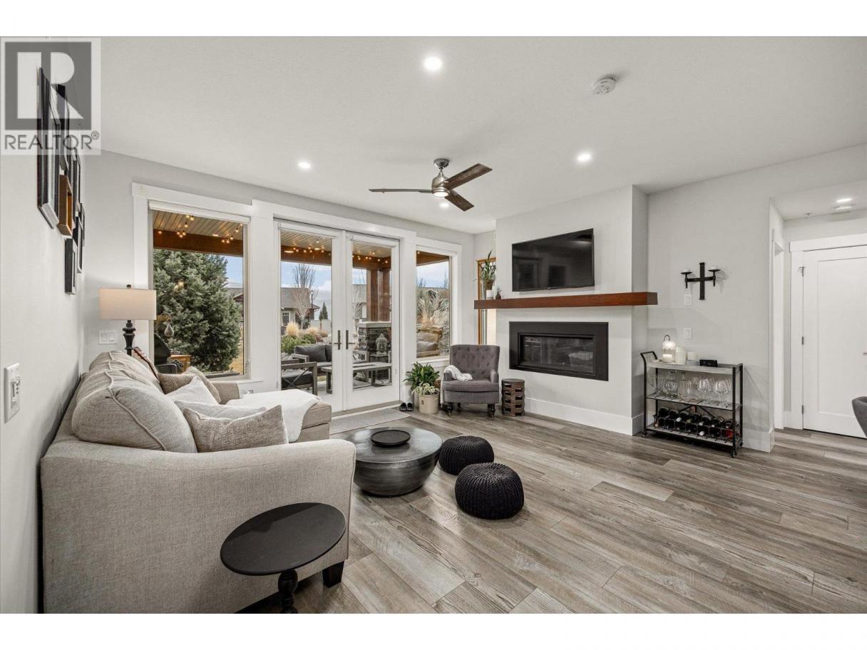 Quaint and Cozy! This bright, one level-ground floor townhome offers 1676 Sq. Ft of spacious living with 3 bedrooms, 3 bathrooms and a detached single garage with driveway parking for one additional car. Your out-of-town guests or residing family member will appreciate the privacy of this unique floor plan which includes an attached wing with a separate entry, a generous sized bedroom/multi use space and one full bathroom. Unwind in the open concept living-dining and kitchen area overlooking French glass doors leading onto a semi-covered, stamped concrete outdoor space with newly planted lavender. Recipe’s new or old will be inspired by the stunning rod iron, ceiling mounted gourmet rack, a large walk-in pantry equipped with a secondary fridge and floating pantry shelfs. Gas stove cooking, S/S appliances, stone-composite countertops and a kitchen island that seats three creates the perfect backdrop for cooking and hosting. Other interior features include a front wood door with custom stain leaded glass for privacy, a gas fireplace with a wood mantle, custom window coverings, heated ensuite flooring and a “slide and lock” custom closet system. Direct access to visitor parking along a short pebble pathway off of your private back patio space provides additional convenience. This charming Peachland “nest” is perfectly situated within a few short minute drive to the Lake, trendy cafe's, boutique shopping and to the popular Pincushion Mountain for the outdoor enthusiasts! (id:6769)