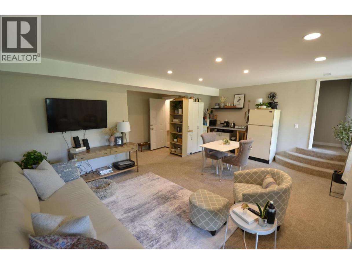 Located on a quiet no thru street, this lovingly maintained 5 bed + den/ 3 full bath West Coast contemporary home is 3 minutes to the bridge for easy access to Kelowna. Step through the front door into the heart of the home, where you'll find a spacious living area with an open layout to the dining area and kitchen, vaulted ceilings creating a warm and inviting atmosphere. This spacious home features an island kitchen and ample storage space and a finished basement. The primary bedroom features an en-suite bathroom, offering a private oasis for relaxation. Vaulted ceilings, large rooms, wrap around deck, ideal location, spacious layout, and endless potential, and a in-law suite make this home is just waiting for you to make it your own. RV parking available at the bottom of driveway. Ample parking on the large driveway as well as an attached double car garage. Don't miss this one! (id:6769)