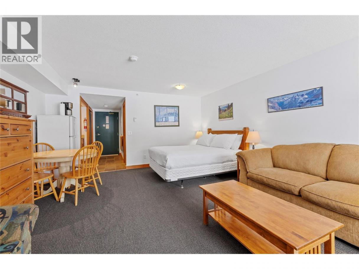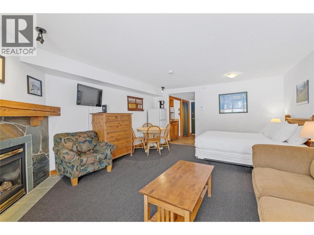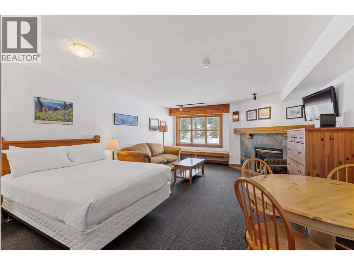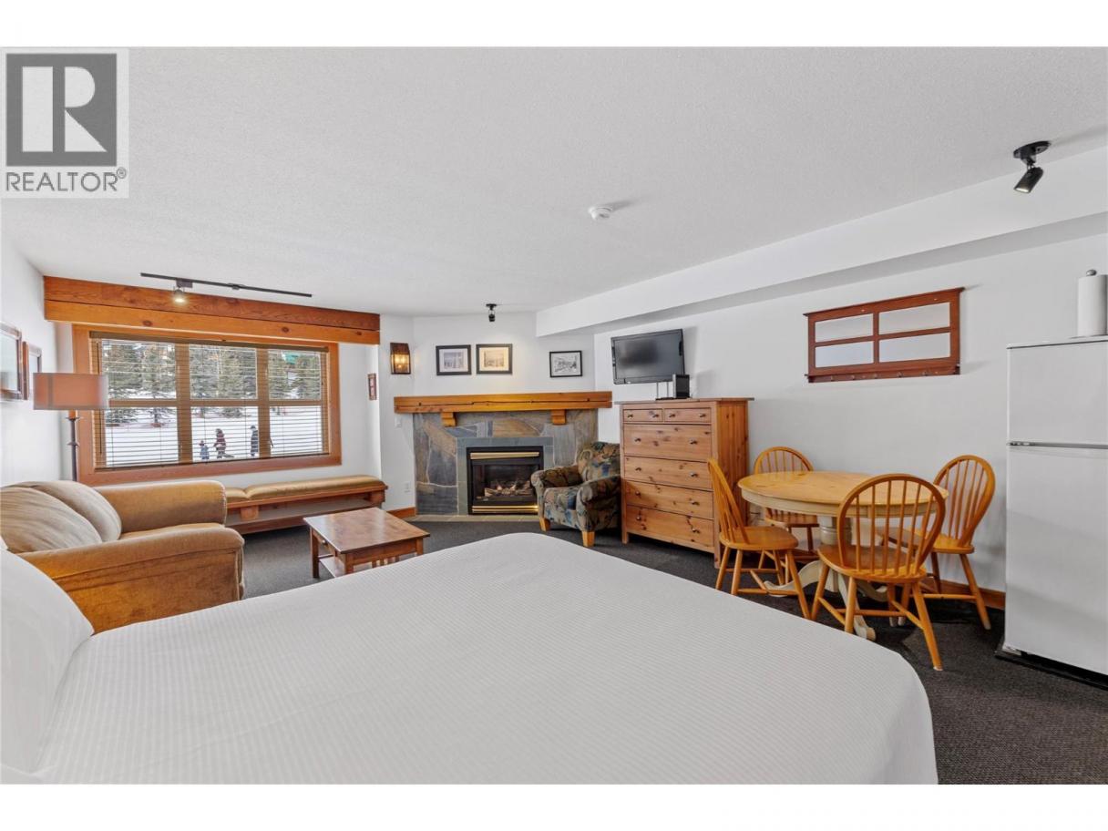 Perfectly located in the heart of the Village, this charming 1-bedroom studio at White Crystal Inn offers true ski-in/ski-out convenience. Situated right beside the Lara's Gondola and the Bullet Express Chairlift, you’ll be just steps from the slopes and the vibrant village atmosphere. The suite features a cozy fireplace, a convenient kitchenette, and comfortable living space—perfect for weekend getaways or rental income. Enjoy great amenities including heated underground parking, ski storage, an outdoor hot tub, and sauna. Plus, the popular The BullWheel Gastro Family Pub is right downstairs for apres-ski dining and drinks. (id:6769)
