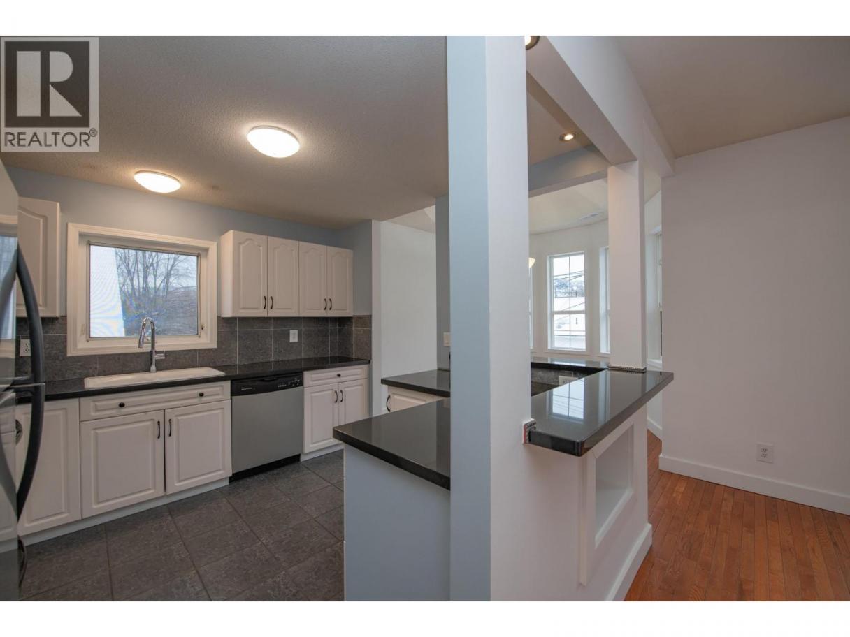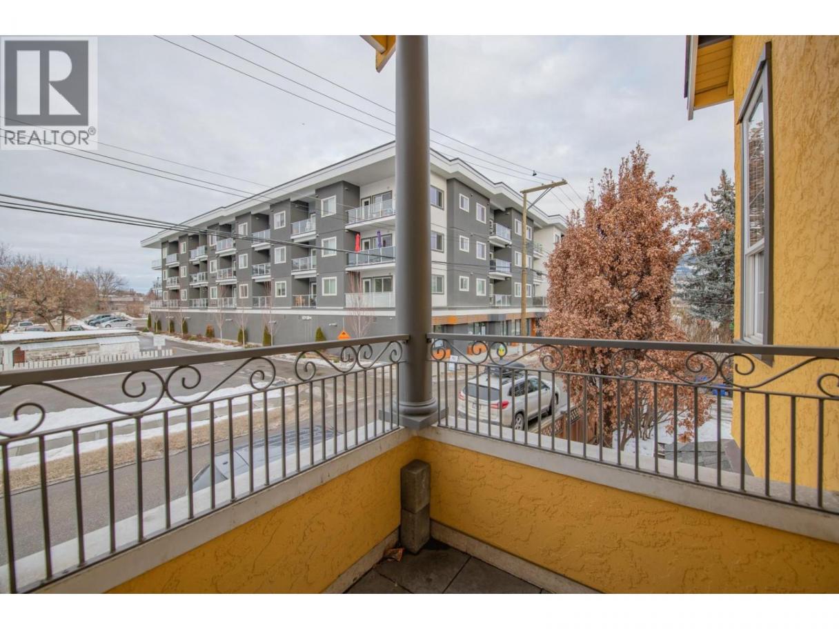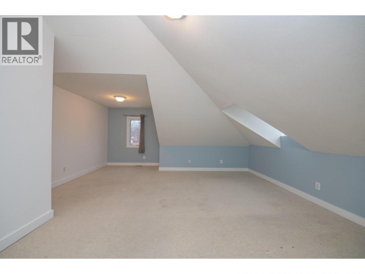 Unique 2 level townhome in downtown Vernon. This spacious townhome features over 1500 sq/ft of living space, including 3 bedrooms and 2 full bathrooms. The spacious kitchen has solid surface counters, stainless steel appliances and an eat in island. The living room is bright, flows nicely from the dining room and has real hardwood flooring. 2 bedrooms and a bathroom complete the main living level. Upstairs, you will find a oversized loft style master bedroom with vaulted ceiling plus an adjoining bathroom. Plenty of storage, balcony patio and tall ceilings make this unit stand out. Small 3 unit strata with quaint design, walking distance to all shops and amenities downtown has to offer. Freshly painted,1 pet allowed. Book your showing today! (id:6769)