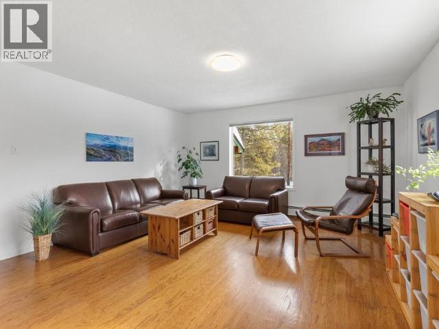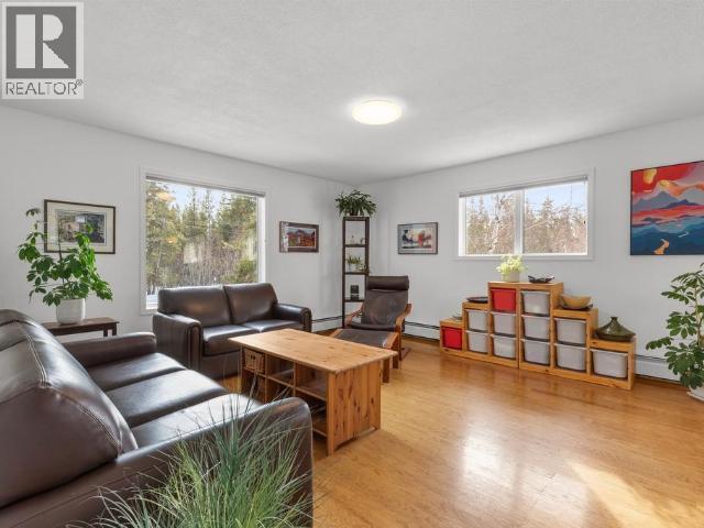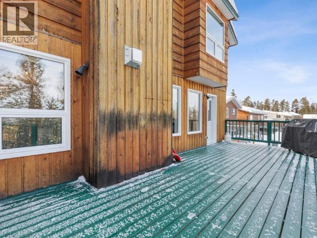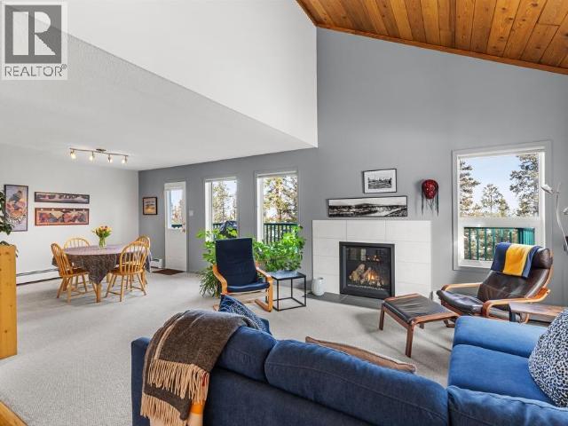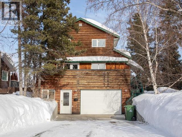 Contemporary home with garage on greenbelt lot with panoramic vista of Yukon River Valley. Open concept living and dining area with vaulted ceilings and acess to private deck, propane fireplace in living room adds ambience. Kitchen is centrally located with access to sunny family room with garden doors leading to another private deck. Upper level has a delighful primary with views and two more spacious bedrooms and full bath. Grade level, extra large arctic entry with ample closet/storage space with access to single attached garage/workshop. French doors opening into recreation room with built in oak library and computer desk. Also a fourth bedroom with direct access into 3/4 bath with tiled accents. Great location close to park. A rare find in Porter Creek. Call to view! (id:6769)