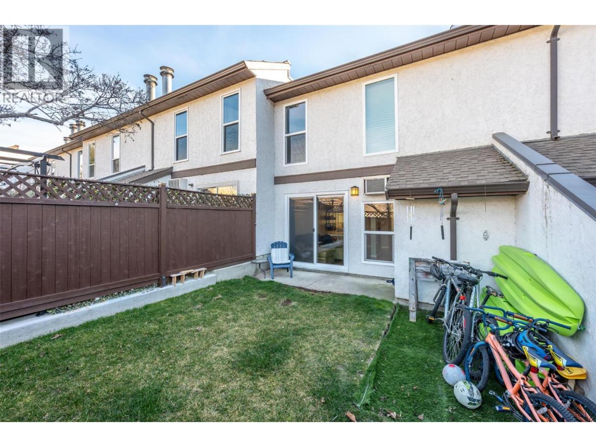 Discover Gabion Courts: a two-storey townhouse ideally situated at the south end of Penticton. Enjoy easy access to schools, the bike route, shopping, and the beautiful Skaha Park and beach. This home offers 2 bedrooms and a den upstairs, complemented by a 4-piece bathroom. The main level features a convenient 2-piece bath. Recent updates include a newer roof in 2021 and new windows and renovated bathrooms in 2025, ensuring peace of mind. The private backyard is perfect for relaxation, featuring grass and an irrigation system. There are no age restrictions, and the strata permits 2 pets upon approval. (id:6769)