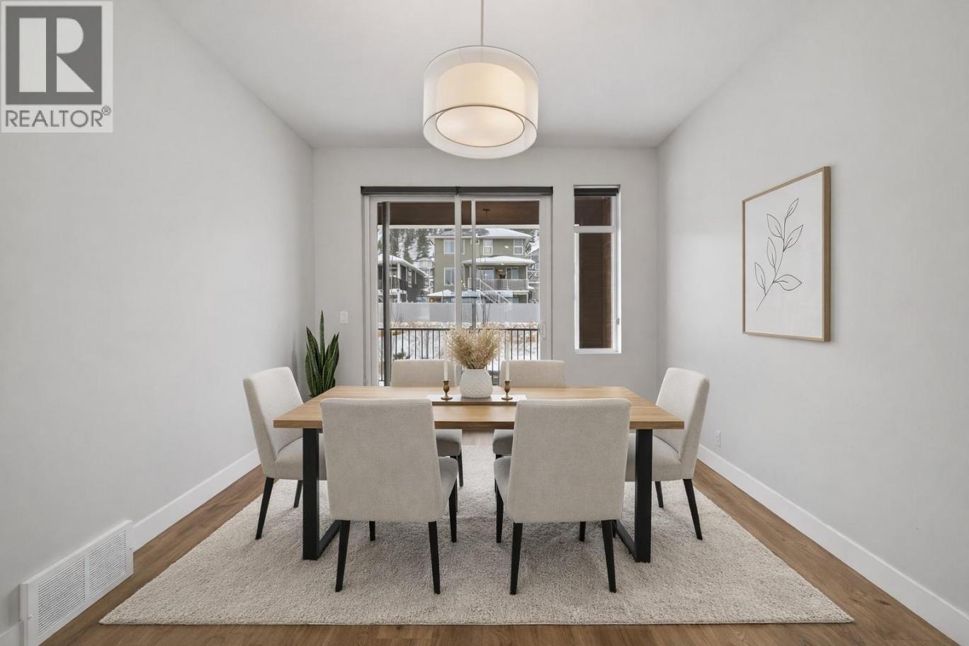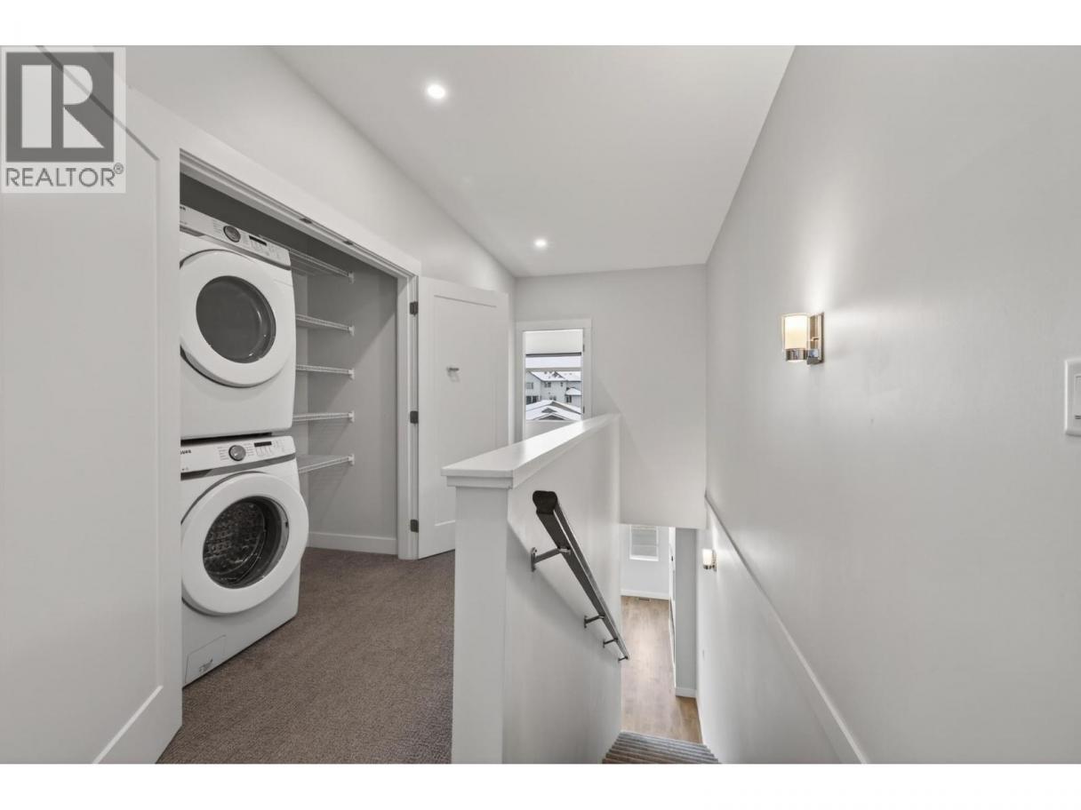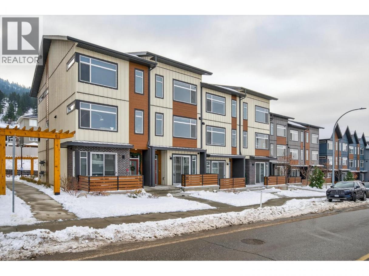 Lovely Juniper Ridge three level townhome with 4 bedrooms, beautiful bright open living space and an oversized single garage. Enter this nearly new townhome and you will find a good sized main entry. This level consists of a bedroom with siliding glass doors to a patio and could be a home office, family room or additional bedroom. There is a storage/mud room space which then leads to the single oversized garage (16’1x21.2) with EV charging. To finish it off there is a 2 piece bathroom. Ascend to the main living space where you will find a great room open floor plan with modern kitchen featuring stone counters, modern appliances including a gas stove, a dining room which leads to a large south facing deck with BBQ hook up and living room with huge picture window and electric fireplace. There is a 2 piece bathroom on this level. The top level includes 3 bedrooms, the primary bedroom has a nice sized ensuite with double sinks and custom walk in closet with built in organizers. There is laundry on the top floor with linen storage and an additional 4 piece bathroom to compliment the 2 additional bedrooms. Bonus 2 outside parking spaces plus street parking 3+ parking total!! This complex itself is located steps to hiking trails, the Juniper Bike Ranch, playground and park, dog park and community market. It is a great area for families, downsize or first timers! There is something here for the whole family. Quick possession possible. (id:6769)