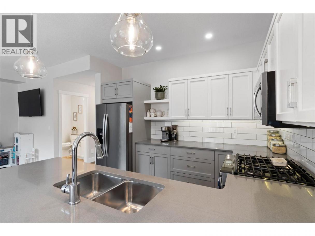Exceptional value in this 2020 built single family home located on a bare land strata lot in the desirable Orchards Walk in Valleyview. The main floor offers comfortable and functional living space, while the upper level features three spacious bedrooms, two full bathrooms, and a conveniently located laundry room. This home is offered at an attractive price point with a monthly bare land strata fee of $230.60. The strata fee includes front and back yard maintenance, professional management, common insurance, snow removal, water, sewer, and garbage services, allowing for convenient and low maintenance living. The current owners selected several premium upgrades throughout the home, including an upgraded appliance package with a gas range, quartz countertops in the kitchen and all bathrooms, and hardwood flooring on both the main and upper levels. Additional highlights include a custom closet organizer system in the primary bedroom and an upgraded 60 gallon hot water tank. Residents of Orchards Walk also contribute $22.50 per month toward the community recreation centre. This facility can be reserved for meetings or larger gatherings for an additional fee and features a full kitchen. The community center also offers shared amenities such as a fitness area, children’s play space, putting green, and picnic areas. Move in with confidence and save the GST on this beautiful home in the sought after Orchards Walk community. (id:6769)