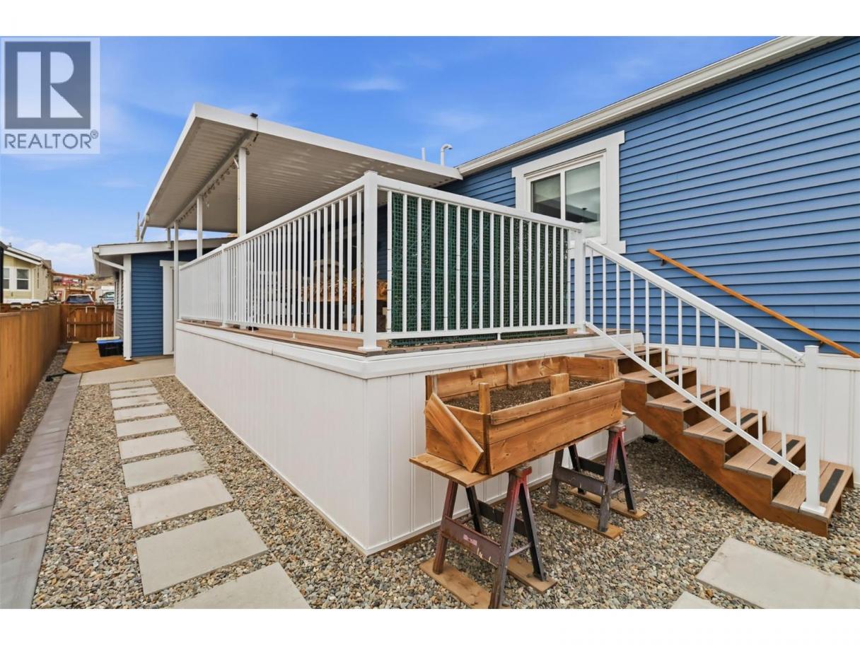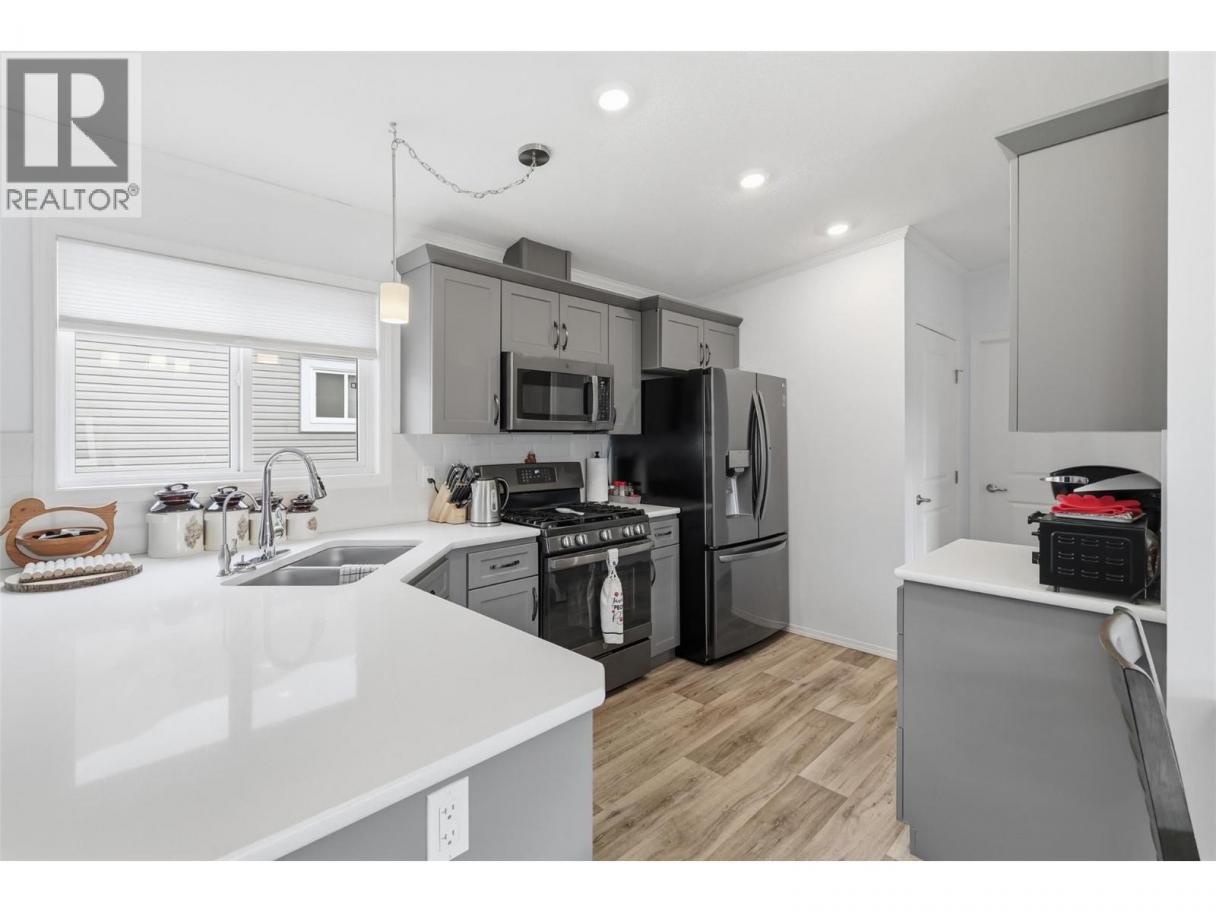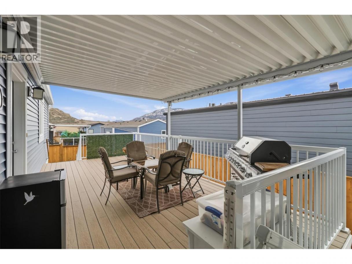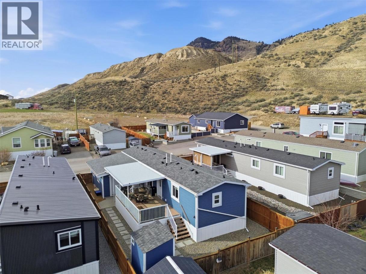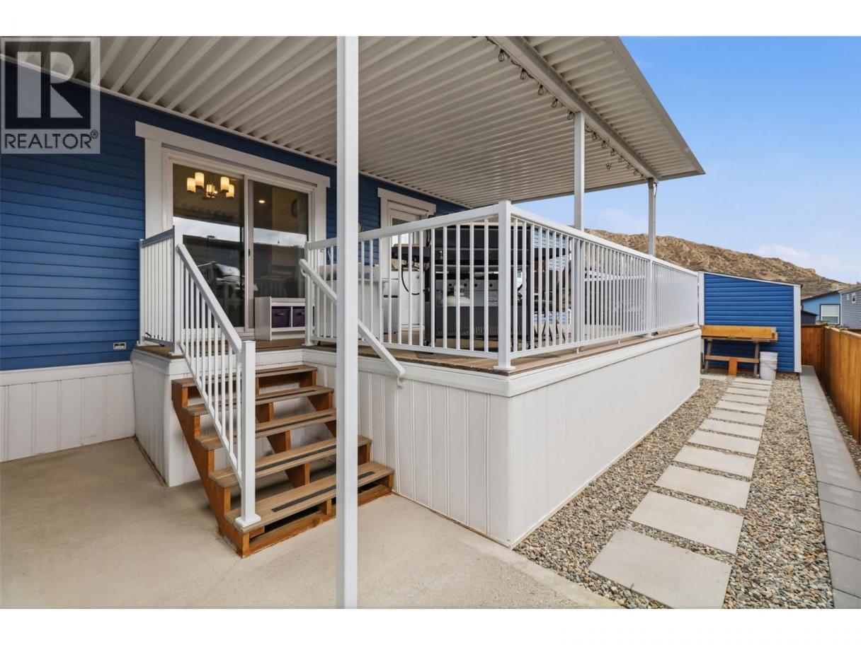 Exceptional value in this pristine 2021-built home! Featuring 3 bedrooms & 2 full bathrooms, a huge covered deck which was built to hold a future hot-tub, and a 11' x 25' heated/cooled garage! The floor plan is bright and functional, boasting a large kitchen with quartz countertops, a gas range, and a walk-in pantry, offering a cozy living space and dining area with access to the 25' x 12' covered patio. The layout is optimal as the huge primary bedroom, with a walk-in closet and 3pc ensuite, is located on one end of the home and the 2 secondary bedrooms and a 4pc bathroom are located on the other end! The yard is very low maintenance, fully fenced, and comes with a storage shed! Located in South Bend Estates providing tons of sun in a quiet complex while only being a 5 minute drive to groceries and restaurants, and just 8 minutes from downtown Kamloops! Other features include hot-water-on-demand, central A/C, custom window coverings, and a pull-out bed in the smaller 3rd bedroom/office. Low pad rent of $450 per month includes water, septic and garbage. Dogs and cats are allowed and RV parking is available in the complex! (id:6769)