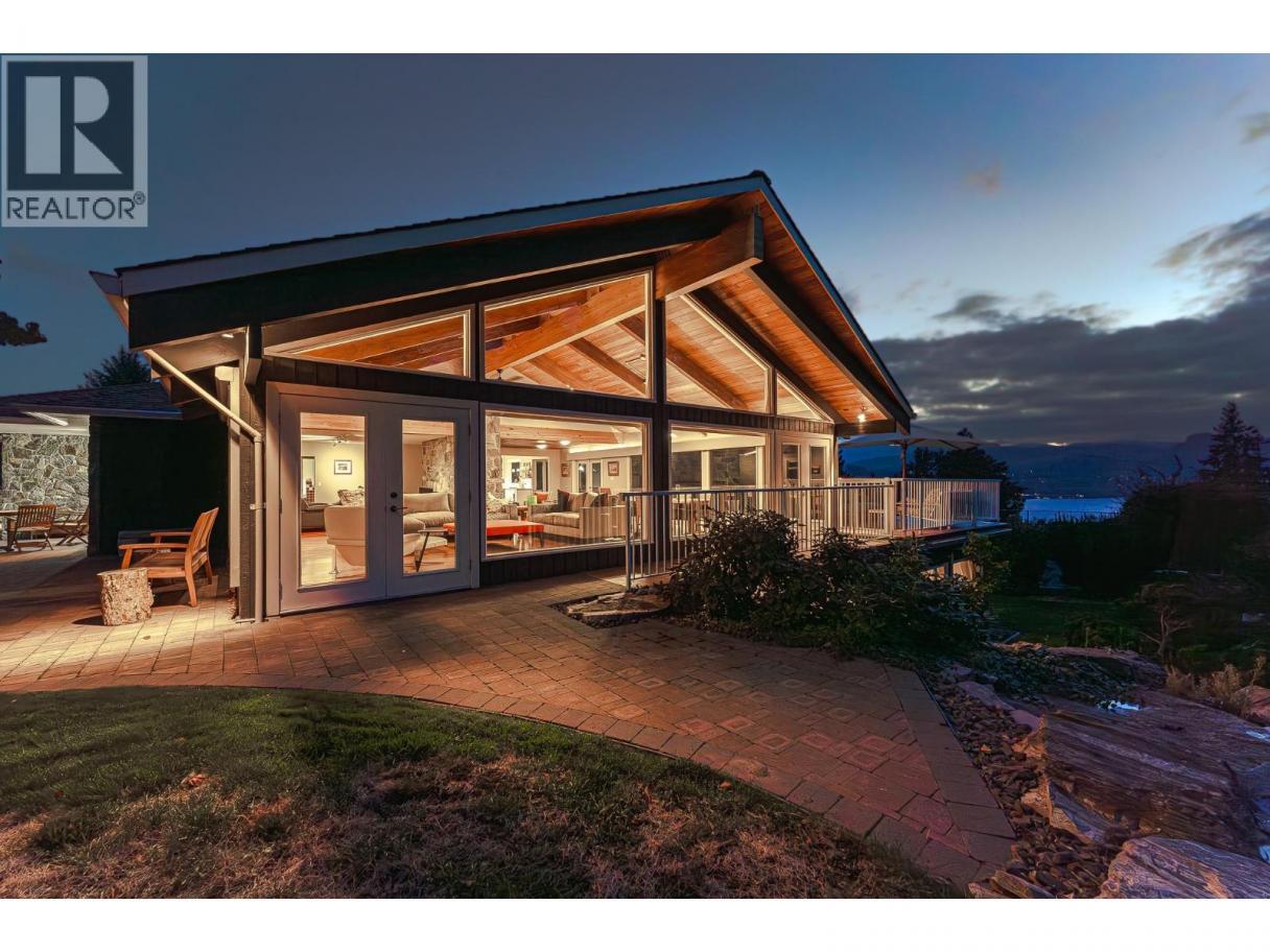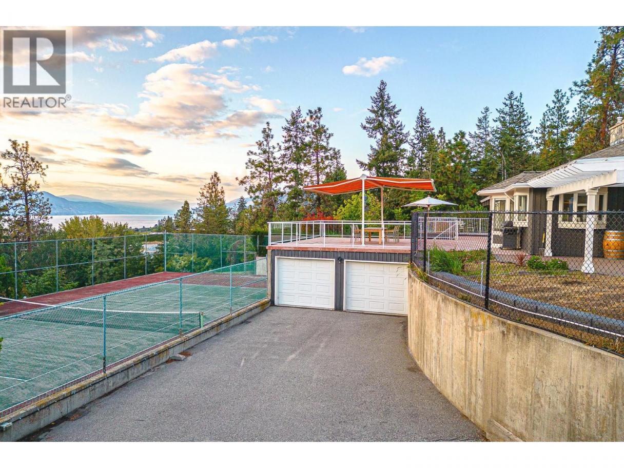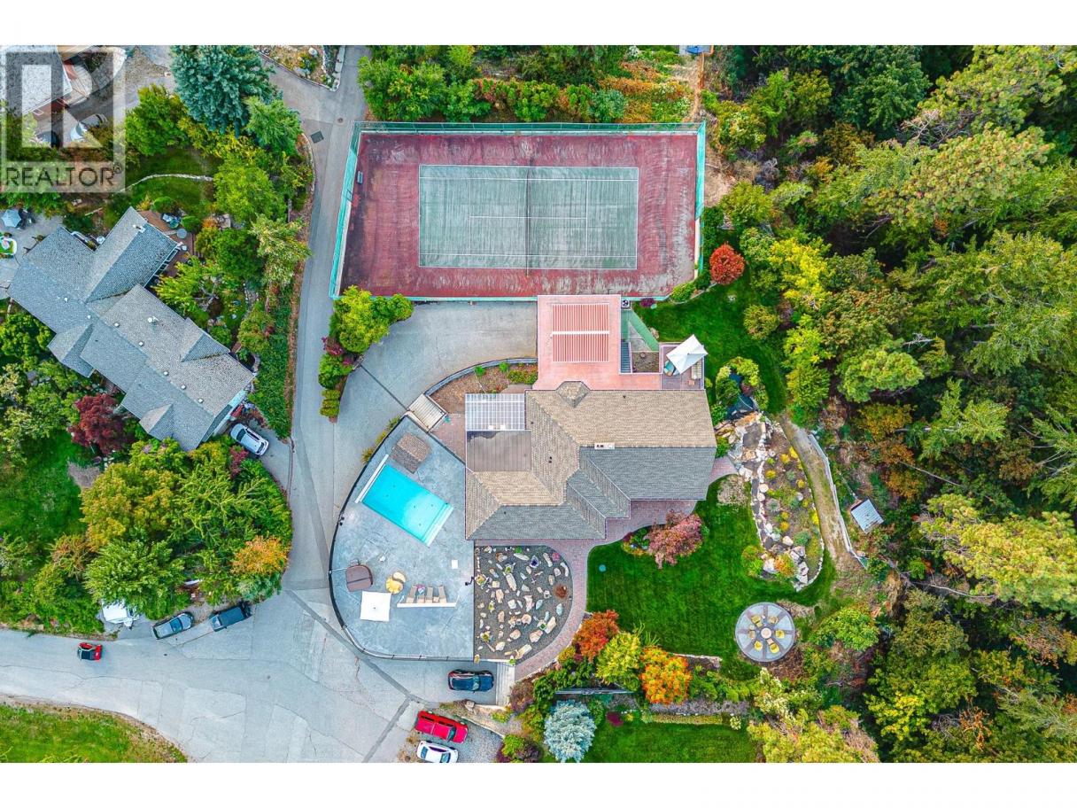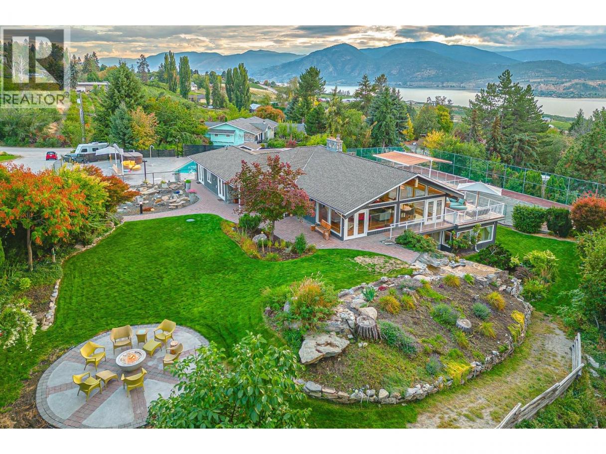 Nestled in luscious grounds this sprawling over 4700 sq ft RANCHER plus basement features: VIEWS, salt-water POOL, pickleball/tennis/basketball COURT, WORKSHOP and a GARAGE. Walk into your home with pouring natural light, massive wood beams and double sided granite fireplace overlooking the WATERFALL. This expansive home has a grand room with vaulted ceilings, room for a 10-person table, walk-out onto your vast patio with spectacular views of the lake. Perfect for entertaining or relaxing. Primary bedroom is beautifully finished with over 190sqft, walk through closet and tranquil ensuite. Bedrooms are steps away from the pool for ease. Downstairs you will find storage/den/wine cellar and a bathroom plus BONUS ROOM: gym/theater room or a potential suite. (id:6769)