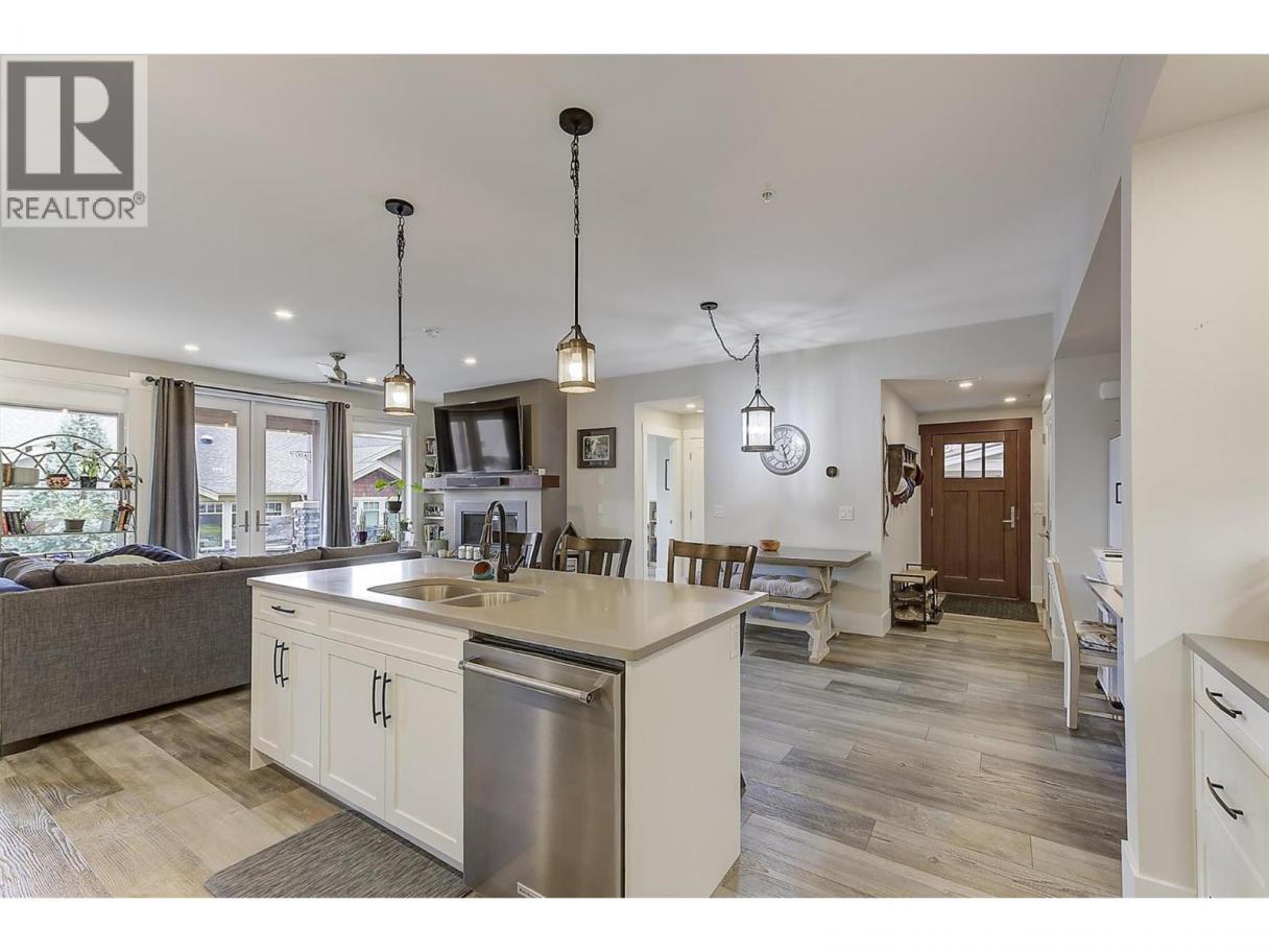Located in the desirable Trails community in Peachland, this stylish rancher townhome features 3 beds and 3 baths of thoughtfully designed living space that blends modern finishes w/ a warm, comfortable atmosphere. The main level area features an open-concept layout ideal for both everyday living and entertaining. The kitchen showcases quartz countertops, stainless steel appliances w/ natural gas range, and pantry. The living area is anchored by a cozy gas fireplace and framed by large windows that flood the home w/ natural light. The bedroom placement at opposite ends of the home offers excellent separation and privacy. Enjoy the covered patio w/ natural gas hook-up for your BBQ during the summer. You can also get a tiny peek-a-boo view of the lake as well. A standout feature is the additional flex room w/ its own private entrance, bedroom, bath, and pre-plumbed for wet bar; perfect for a home office, guest retreat, entertaining area, or in-law/caretaker suite. Outside, you’ll find a private driveway, single-car garage, and convenient visitor parking nearby. Just steps away from walking and hiking trails which includes Pincushion Mountain. Minutes from downtown Peachland, where you can enjoy lakeside strolls, local wineries, restaurants, and coffee shops. Ideal for young families, downsizers, or those seeking a low-maintenance lifestyle, this flexible home offers comfort, views, and convenience in a very sought-after location. (id:6769)