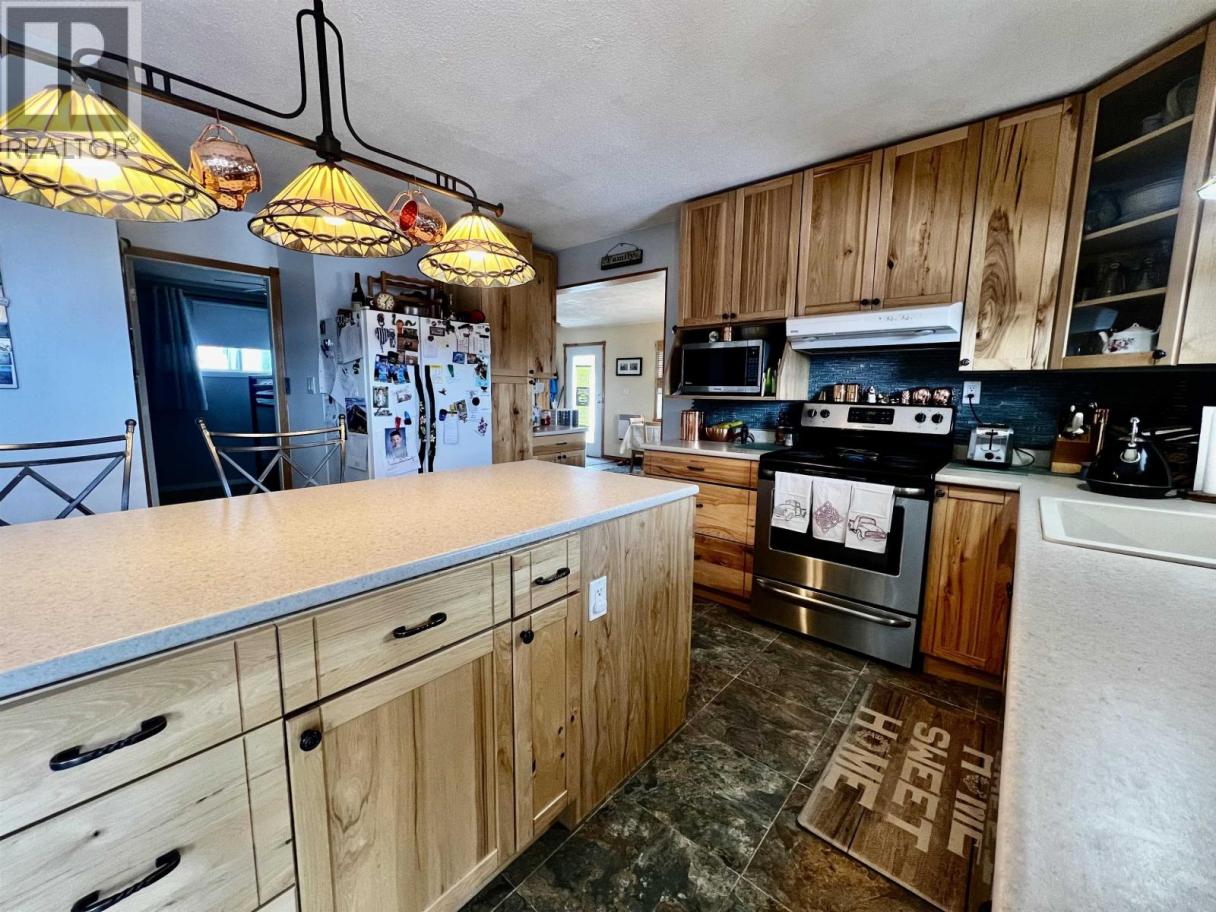 Welcome home to this beautifully updated 4-bedroom, 2.5-bath family residence offering comfort, style, and incredible views. The renovated kitchen is the heart of the home, featuring a large island and spacious dining area—perfect for family meals, entertaining, and everyday living. Step outside to the large covered deck and enjoy breathtaking sunset views over Fraser Lake, creating the ideal setting to relax and unwind. Thoughtful upgrades, including an updated roof, furnace, and hot water tank, provide peace of mind for years to come. The basement entry offers excellent suite potential, adding flexibility for extended family or rental income. With updated bathrooms and a warm, inviting layout, this home beautifully combines modern updates with stunning surroundings. (id:6769)