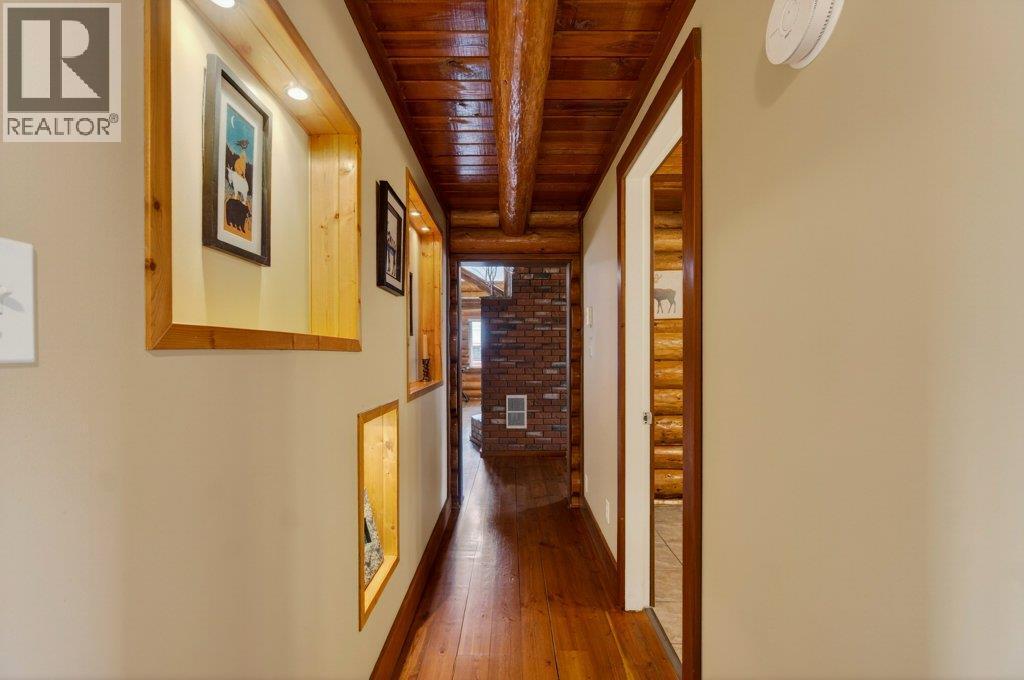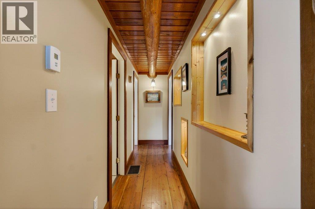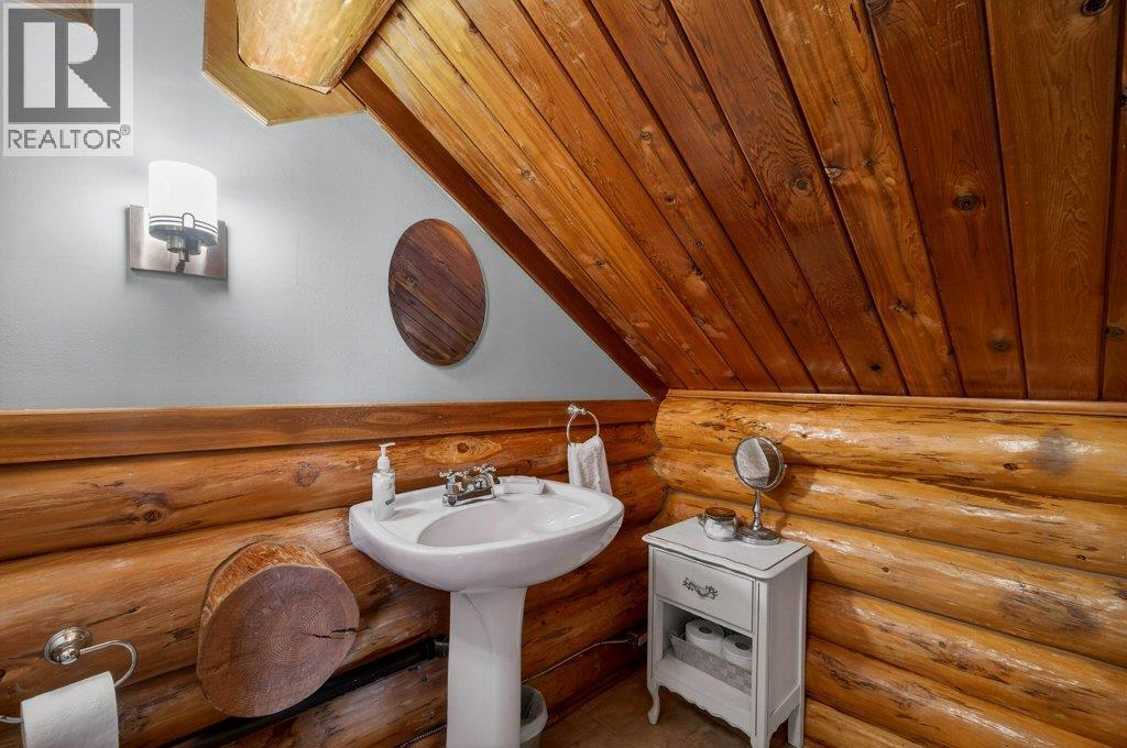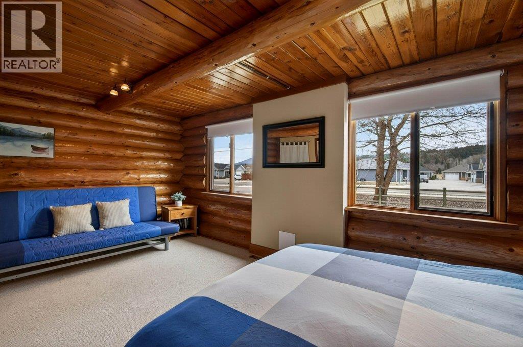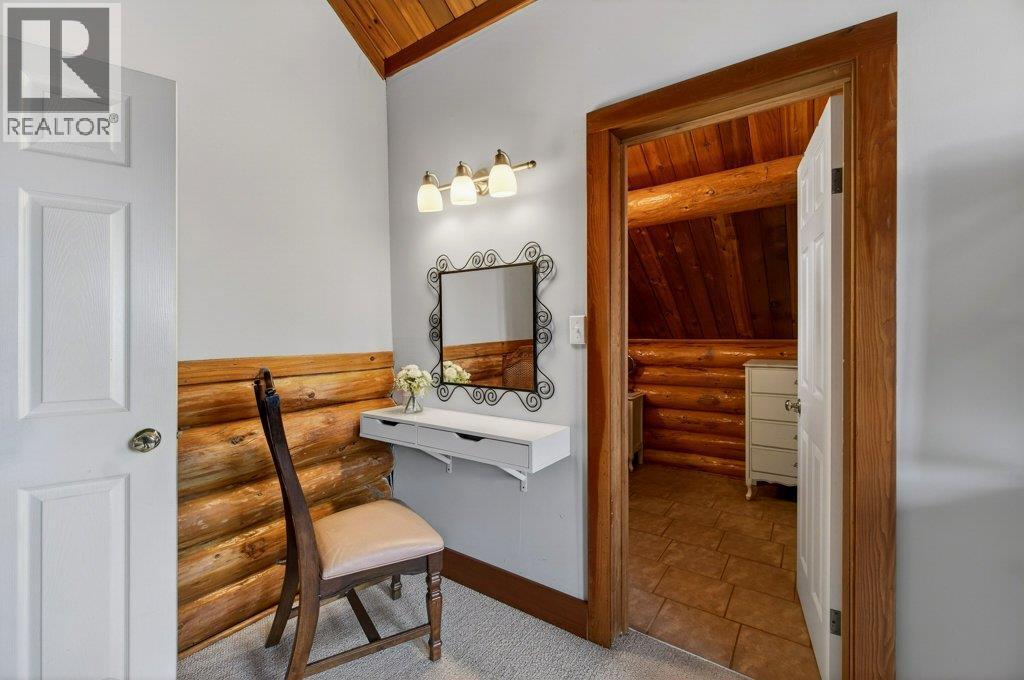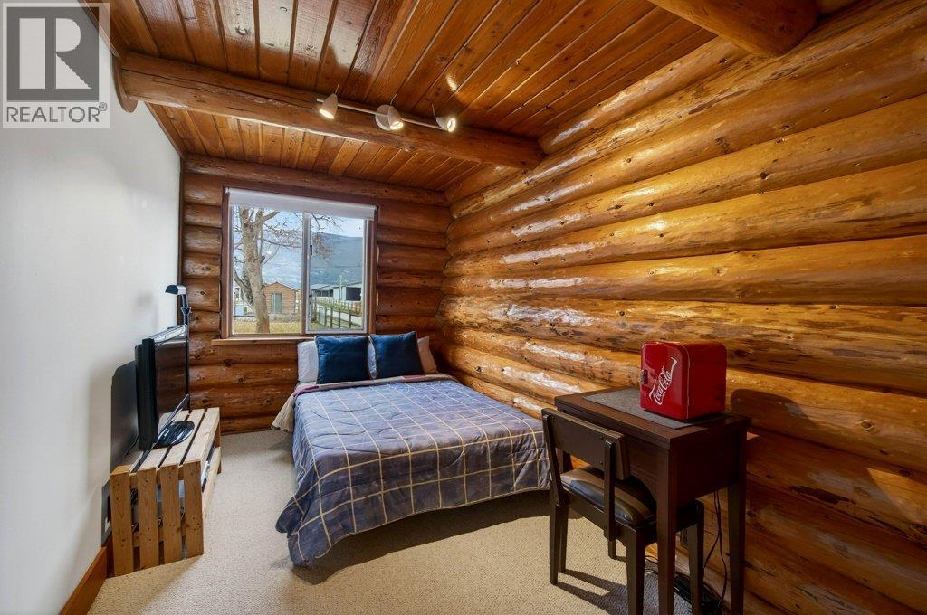 BEAUTIFUL LOG HOME ON A LARGE FENCED LOT. This home has been incredibly well maintained and shows very well. The warm and cosy feel of this home is like being on vacation every day. Offering 3 bedrooms & 2 bathrooms, an open eat-in kitchen with island and stainless steel appliances, and a large living room with a floor to ceiling brick fireplace. The vaulted ceiling makes it feel spacious and open. The .36 acre yard is level and fully fenced with a storage shed, a wonderful garden area, back deck where you can enjoy the views of Mount Ida and Fly Hills and a newer drive through shop/garage. Hi-efficiency furnace with A/C. Walking distance to Piccadilly Mall, walking paths & parks and the Salmon Arm Fair Grounds (Roots & Blues). Room to park your RV. (id:6769)