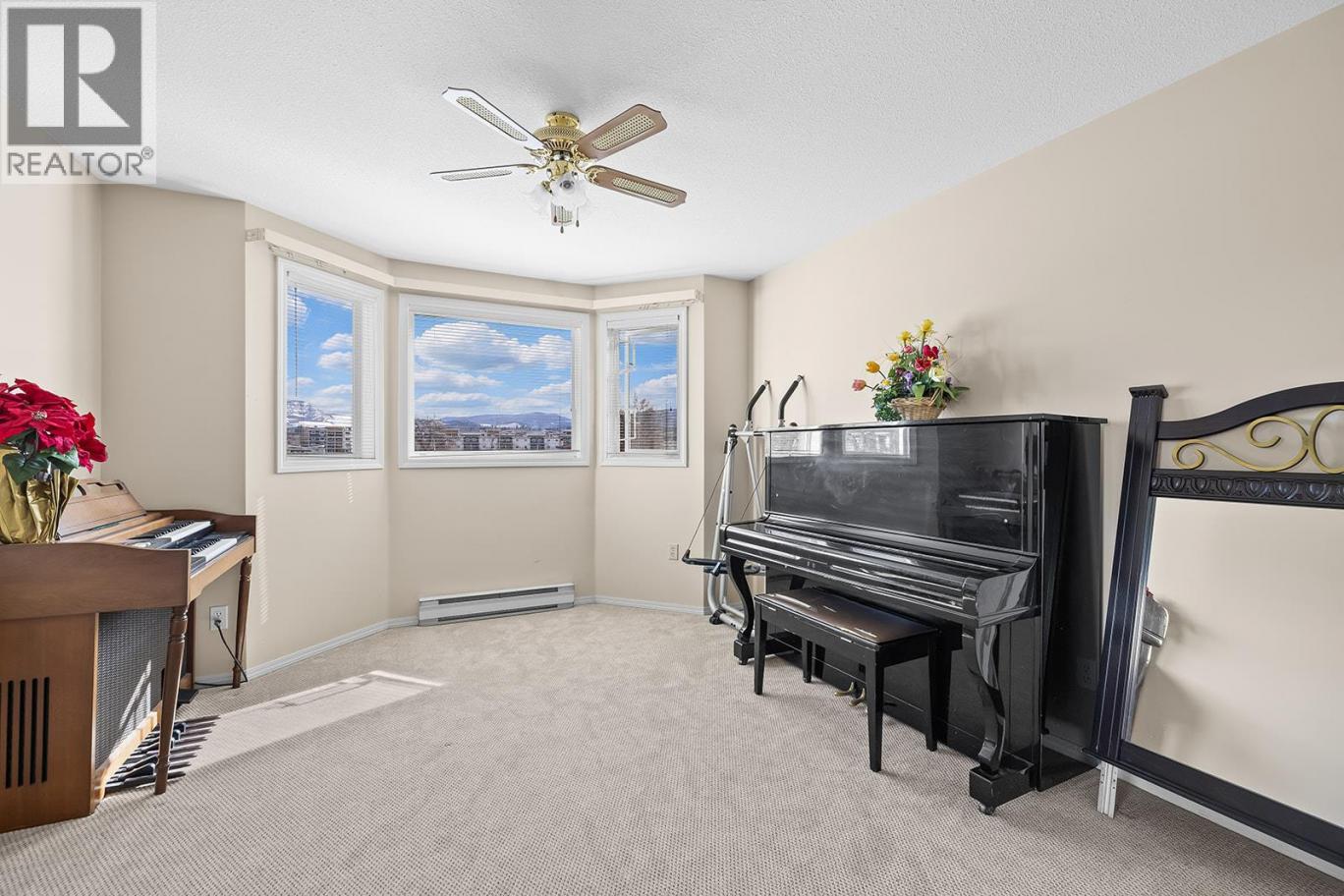 Bright 2-bedroom, 2-bathroom corner unit with desirable north-east exposure, ideally located near the Lower Mission shopping district. This home features updated carpeting and a comfortable layout filled with natural light. Situated in the Gordon Park Housing Community (50+), residents enjoy access to excellent amenities including a communal kitchen, games room with pool table, fitness room, library, and a well-equipped woodworking shop. Conveniently located close to shopping, restaurants, medical services, walking trails, and Okanagan Lake. The unit also includes single parking in a shared garage and a private enclosed patio. Cash purchase only. No pets or rentals permitted. Quick possession available. (id:6769)