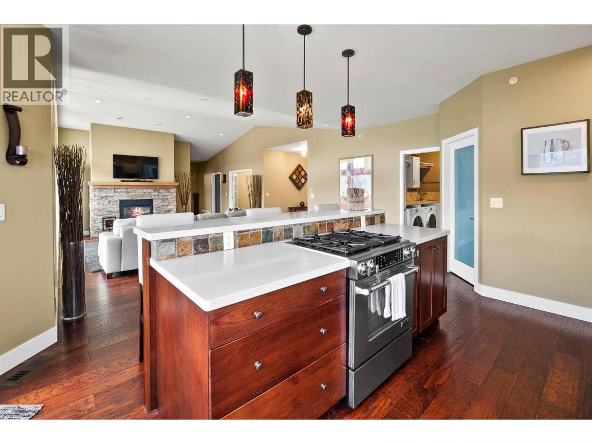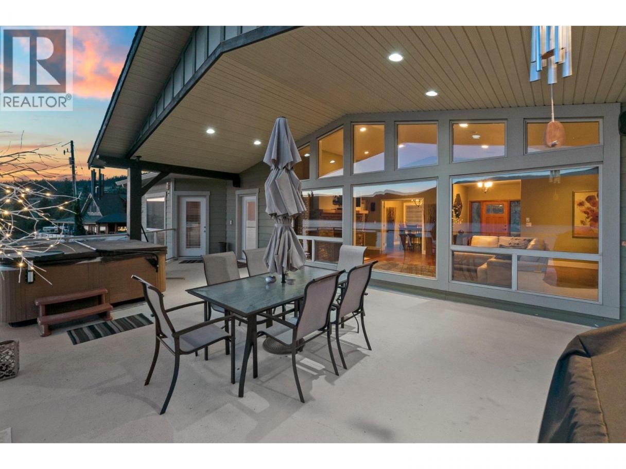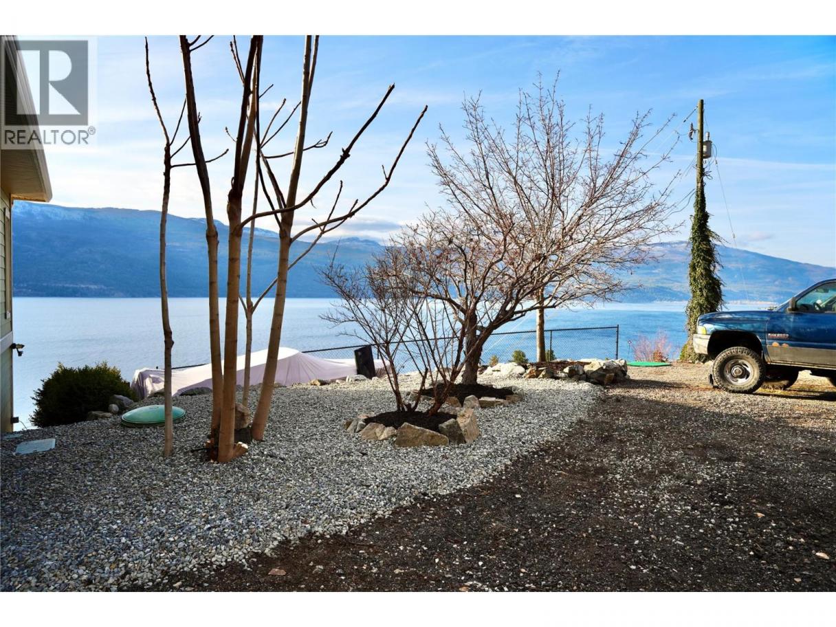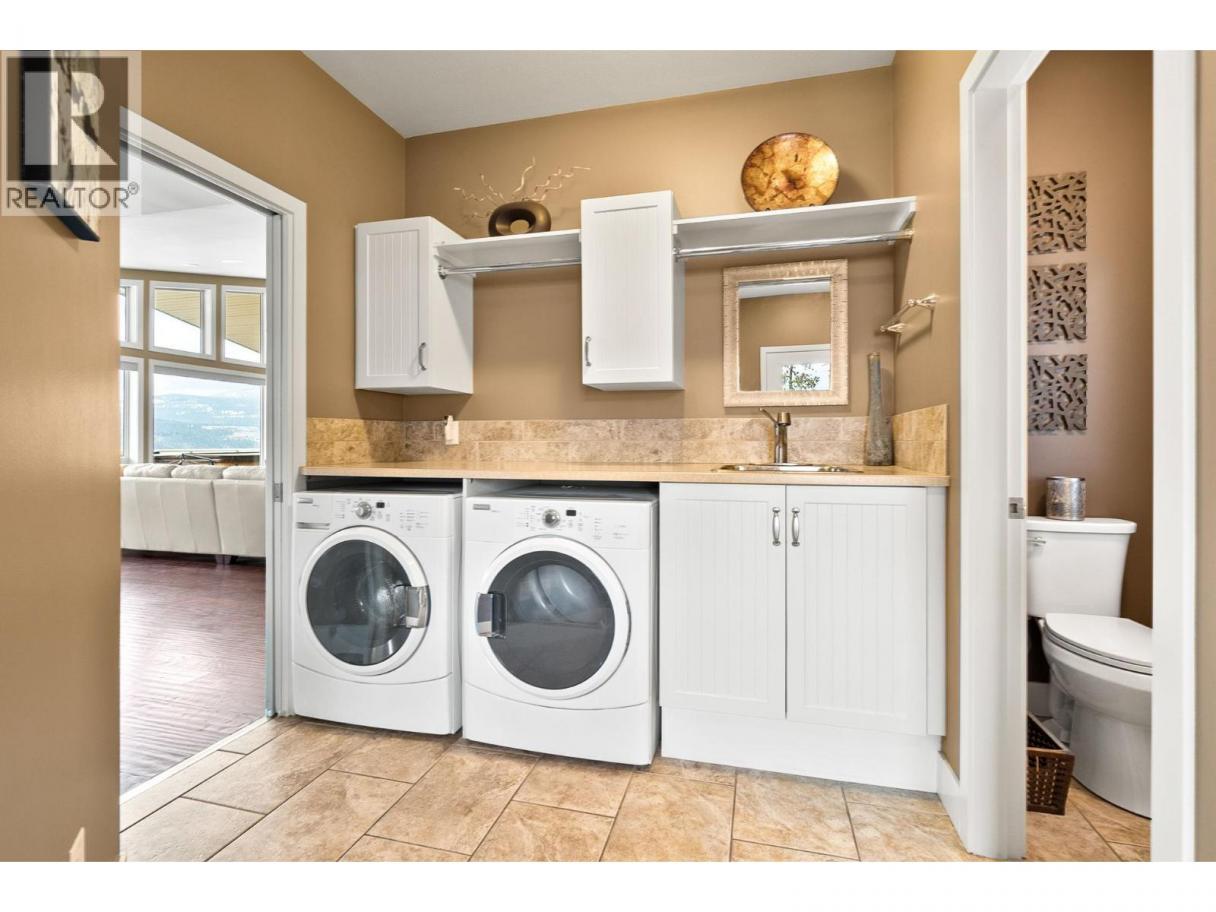 This custom built home is perched on a private 1.9-acre lot with panoramic views of Lake Okanagan. The open-concept main floor features slate & hardwood flooring, vaulted ceilings, & a floor-to-ceiling fireplace, w/large windows framing stunning lake views. The kitchen is equipped with Silestone countertops, spacious walk-in pantry, & a mudroom/laundry area w/ a convenient half bath. Heated floors run throughout the main level, & a 585 sq. ft. deck w/ a hot tub allows you to soak in the scenery. The primary suite offers private deck access, a walk-in closet, & a spa-like ensuite with double sinks. Another full bdrm, bthrm with access to the deck & a flexible room on the main floor serving as a bdrm, den, or dining rm. Lower level also has radiant in-floor heating, family rm, bar area, theatre rm, additional bdrm, full bthrm & a 1-bedroom in-law suite w/ separate entrance/parking. The private road is slated to be paved this spring & RV parking w/ electrical & sewer dump already in place. A lower building pad is ready for a secondary suite or shop, with engineered fill meeting load-bearing and compaction standards. Pad can be extended 30 ft wider, w/ engineered retaining wall drawings already completed. A new pull-in access has been started at the bottom of the property, with permit in place for a culvert for access from Carrs Landing Rd. This property is on city water w/ additional functional Well which is ideal for outside irrigation. Your piece of paradise awaits! (id:6769)