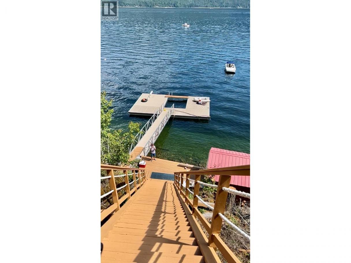 Experience breathtaking panoramic views of Shuswap Lake from this stunning waterfront custom cedar cabin featuring 100 feet of shoreline and an impressive private dock. This turn-key Shuswap Lake retreat near Sicamous is designed for unforgettable family gatherings and summer memories. The cabin offers generous sleeping space with a primary suite featuring balconies overlooking the great room and lake. Three additional bedrooms all with king beds —plus a spacious 10' x 40' loft with four queen beds provide ample room for family and guests. The great room features vaulted ceilings, a brick fireplace, and large windows capturing the lake views. Since 2008 upgrades include a new kitchen, updated bathroom, upgraded plumbing, new hot water tank, and three large awnings. Multiple lakeview decks provide excellent outdoor living space. The cabin is powered by an upgraded solar system with large inverter and 14KW propane Generac generator. Water is supplied through a lake intake with holding tank, and the two flush toilets connect to a holding tank and leach pit. Additional improvements include a metal roof, vinyl Duradek on the upper deck, replaced stair stringers and treads, dock servicing, and removal of hazardous trees. The seller will consider selling a half share as a co-ownership opportunity. Offered turn-key (excluding personal items) with a boat and Sicamous marina moorage potentially available separately. (id:6769)