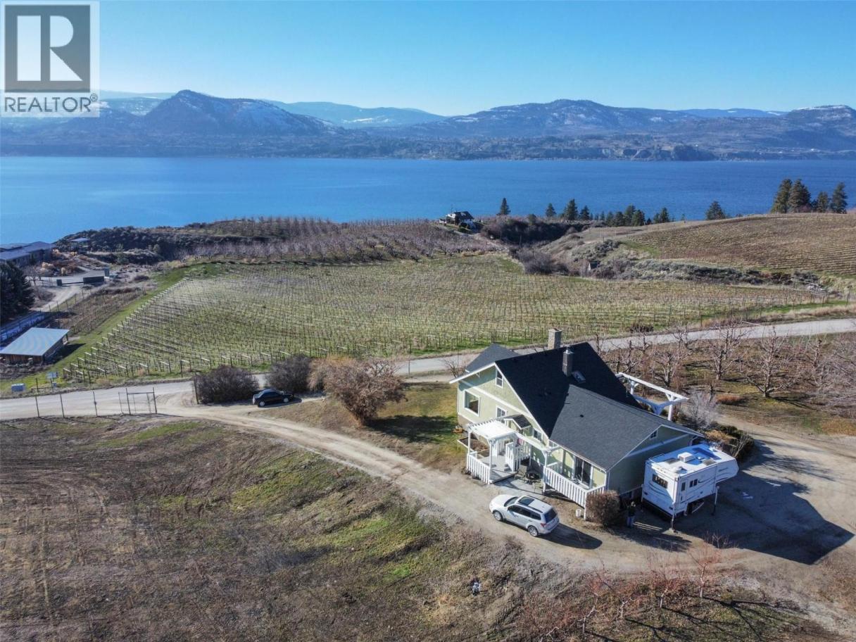 This hidden gem is nestled in the heart of the scenic Naramata Bench. Located on a unique 4.97 acre property, gently sloping to the South-west, the property offers privacy & breath-taking panoramic views over the sparking waters of Okanagan Lake, surrounding orchards, vineyards & mountains. The charming character home has 2250 sq.ft, 4 bedrooms, 2 bathrooms, and been lovingly updated over the years. The land is highly-fertile & currently planted as a cherry orchard with Lapins. The rest is ready to become an extended orchard, vineyard or perhaps equestrian estate. This property is uniquely-located in a quiet rural area fronting two roads, which offers the option of multiple placement choices for your dream home. Within walking distance to Naramata, beaches, boat launches, parks, general store, hotel, school, restaurants, and close to numerous wineries & cideries. This piece of paradise is a must-see in person. (id:6769)