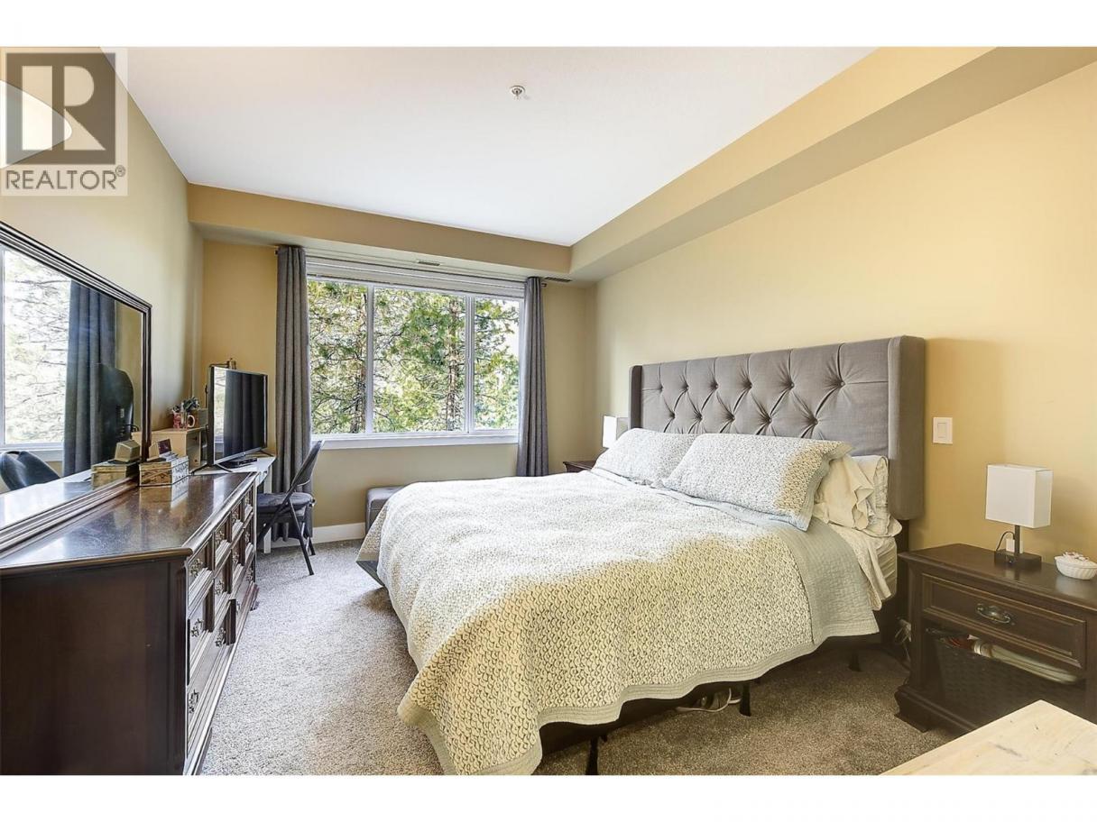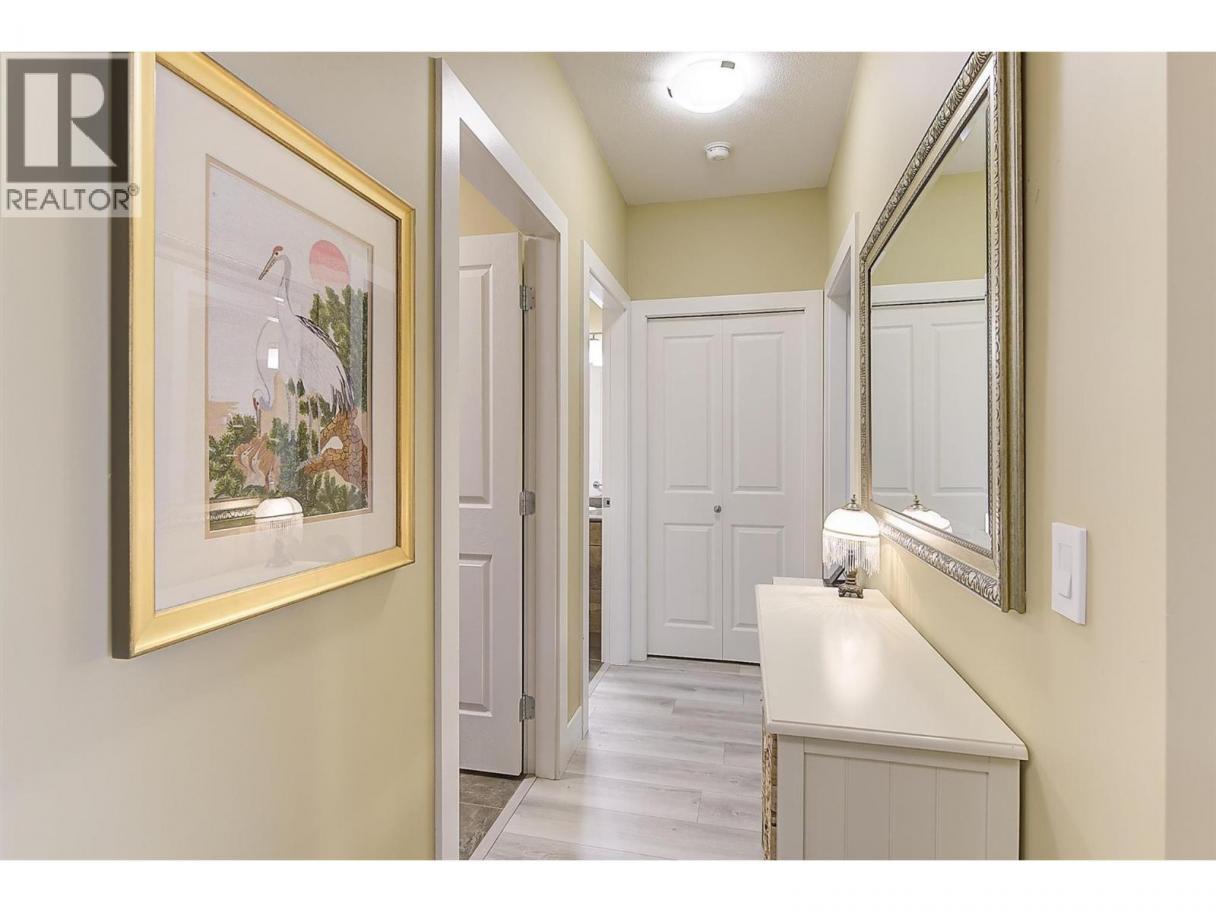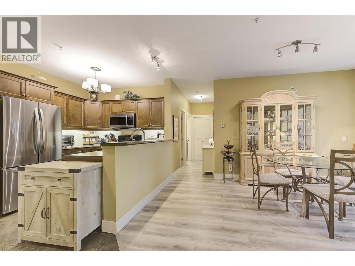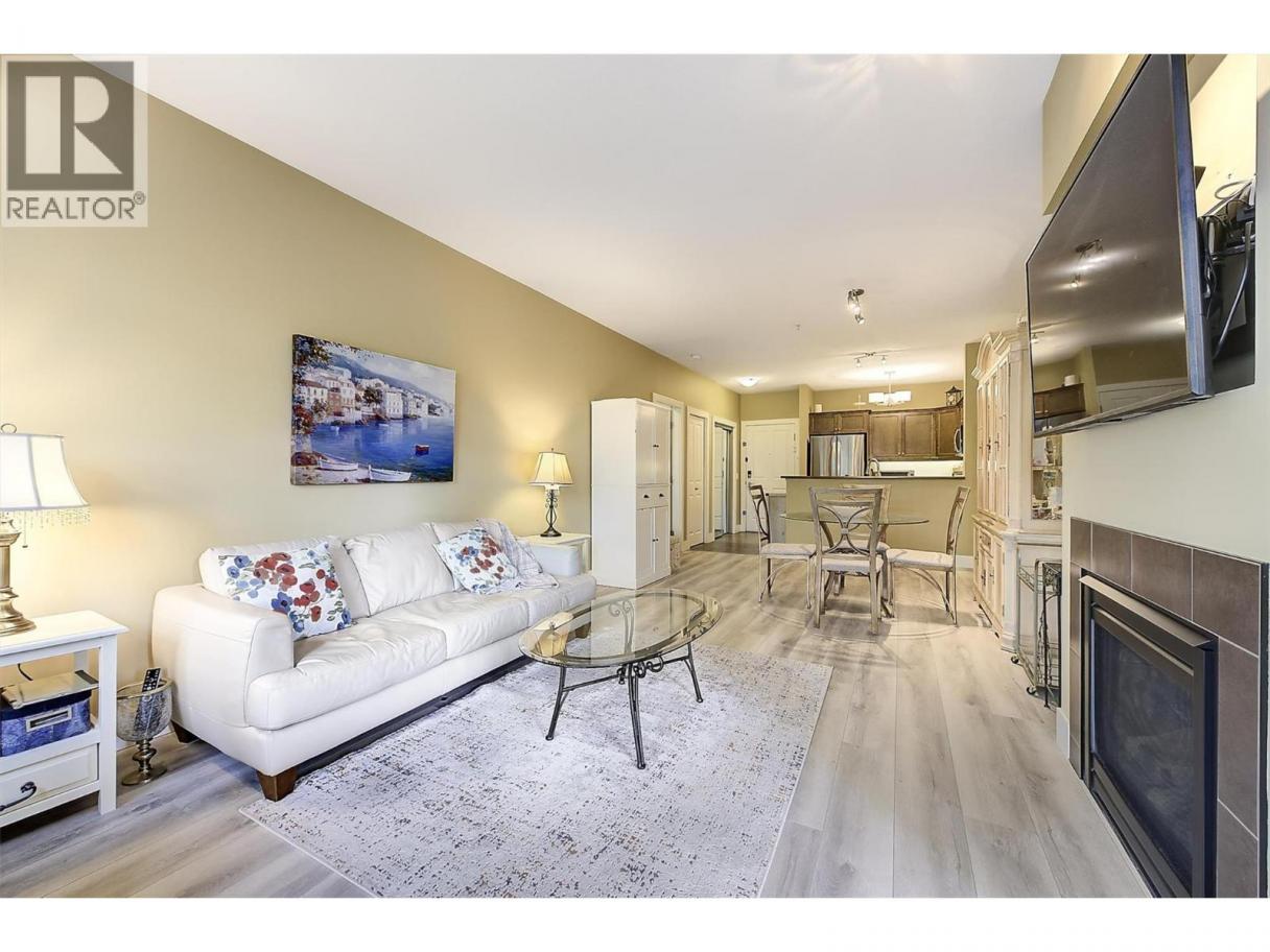 Peaceful views and beautiful sunsets! This immaculate 2 bedroom 2 bathroom condo overlooks a tranquil green space with mature trees, offering a private and relaxing setting. Enjoy the scenery from your covered balcony or through large windows that fill the home with natural light. Located in desirable Winterra in The Lakes, the open-concept living space features a cozy gas fireplace, creating a warm and inviting atmosphere. The kitchen offers solid maple cabinetry, ample cupboard space, a breakfast bar, a gas range, newer stainless steel fridge (2024) and dishwasher (2025). The spacious primary bedroom includes a walk-in closet and a large ensuite with heated floors, featuring a separate tub and shower. A second bedroom, full bathroom with heated floors, and a convenient in-suite laundry room complete the well-designed layout. In 2024, the home was updated with new laminate flooring and quality carpet in the bedrooms. Additional highlights include a 4’2 x 4’5 storage locker conveniently located on the same floor and one underground parking stall, with additional outdoor parking available for only $25/month. Residents enjoy access to a clubhouse where they can host private gatherings, a fitness centre, and a guest suite for visitors. Pet friendly (with restrictions). Located just minutes to lakes, wineries, shopping, and walking trails, and only 15 mins to UBCO and the airport. An ideal blend of peaceful surroundings and convenient living. Book your private showing today! (id:6769)