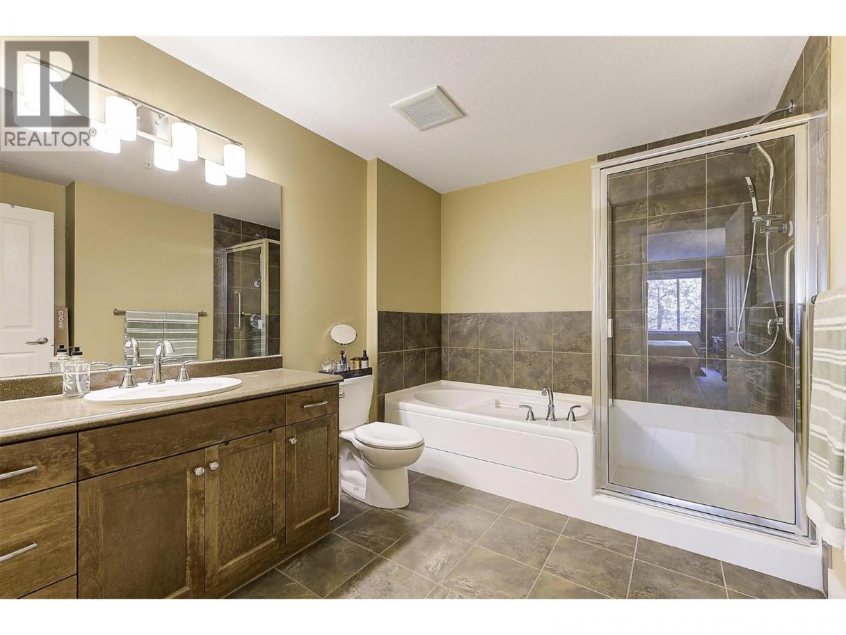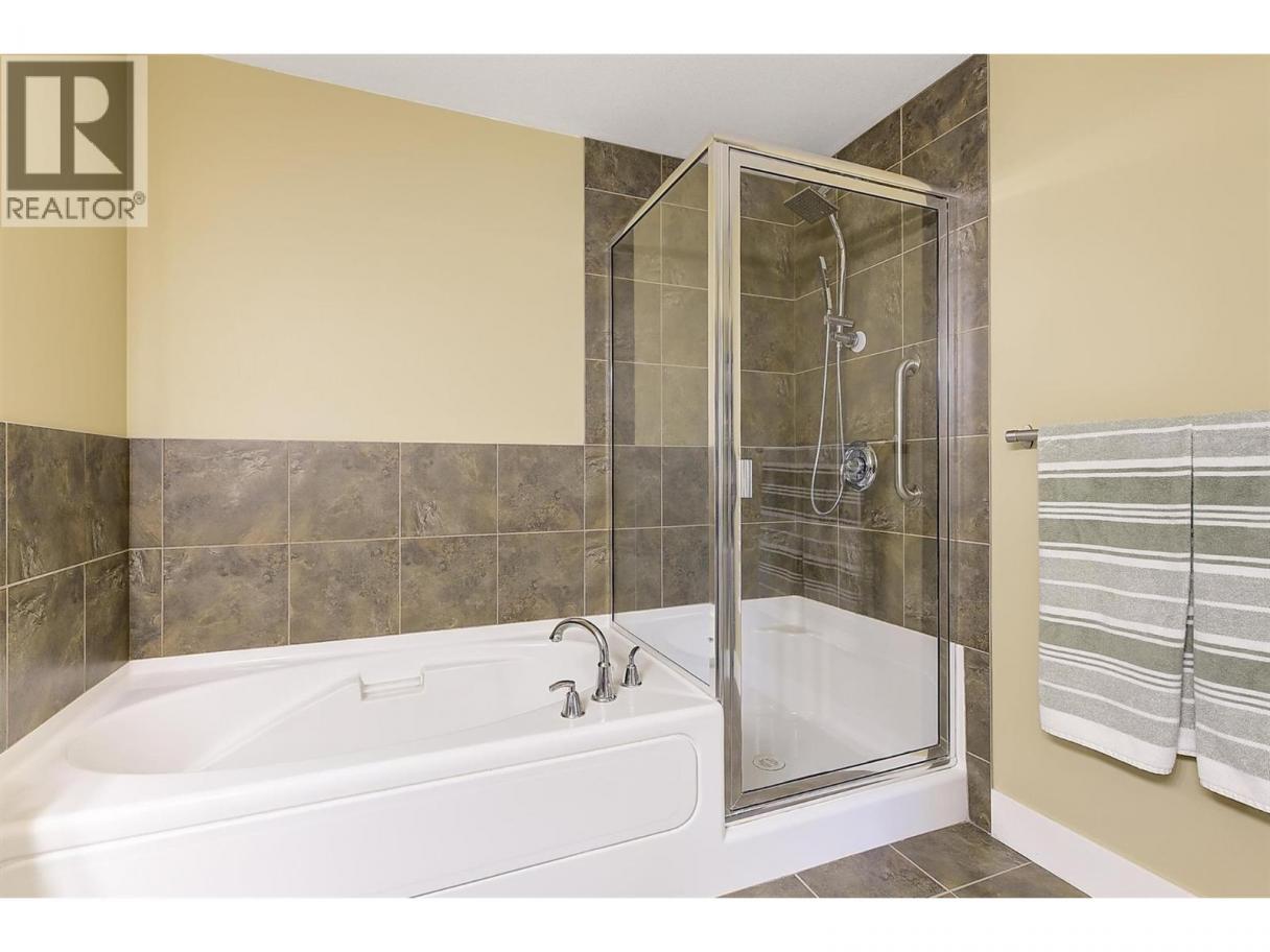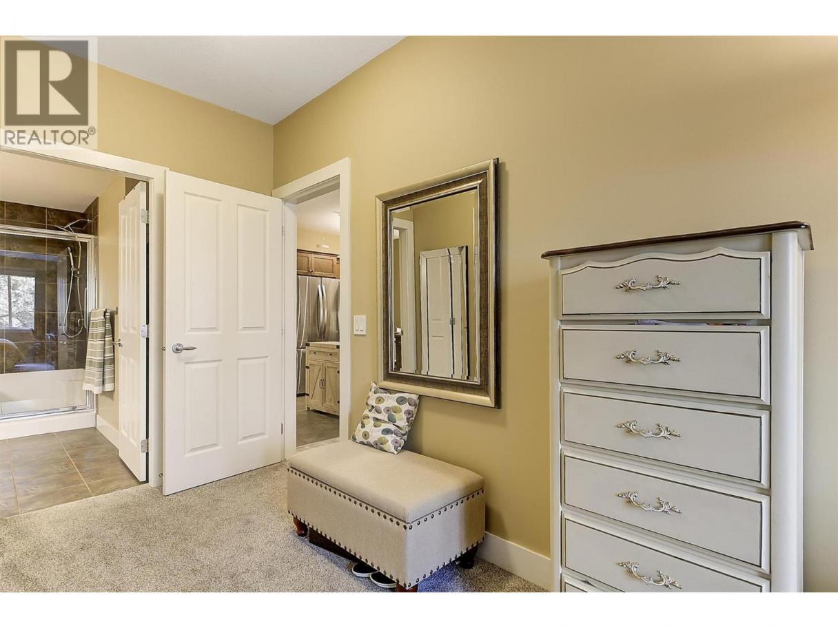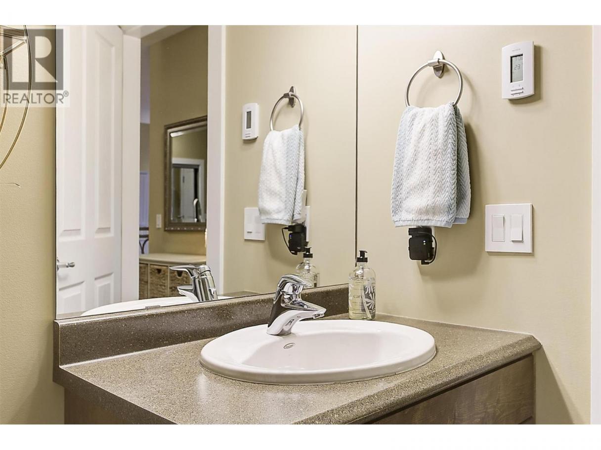 Peaceful views and beautiful sunsets! This immaculate 2 bedroom 2 bathroom condo overlooks a tranquil green space with mature trees, offering a private and relaxing setting. Enjoy the scenery from your covered balcony or through large windows that fill the home with natural light. Located in desirable Winterra in The Lakes, the open-concept living space features a cozy gas fireplace, creating a warm and inviting atmosphere. The kitchen offers solid maple cabinetry, ample cupboard space, a breakfast bar, a gas range, newer stainless steel fridge (2024) and dishwasher (2025). The spacious primary bedroom includes a walk-in closet and a large ensuite with heated floors, featuring a separate tub and shower. A second bedroom, full bathroom with heated floors, and a convenient in-suite laundry room complete the well-designed layout. In 2024, the home was updated with new laminate flooring and quality carpet in the bedrooms. Additional highlights include a 4’2 x 4’5 storage locker conveniently located on the same floor and one underground parking stall, with additional outdoor parking available for only $25/month. Residents enjoy access to a clubhouse where they can host private gatherings, a fitness centre, and a guest suite for visitors. Pet friendly (with restrictions). Located just minutes to lakes, wineries, shopping, and walking trails, and only 15 mins to UBCO and the airport. An ideal blend of peaceful surroundings and convenient living. Book your private showing today! (id:6769)