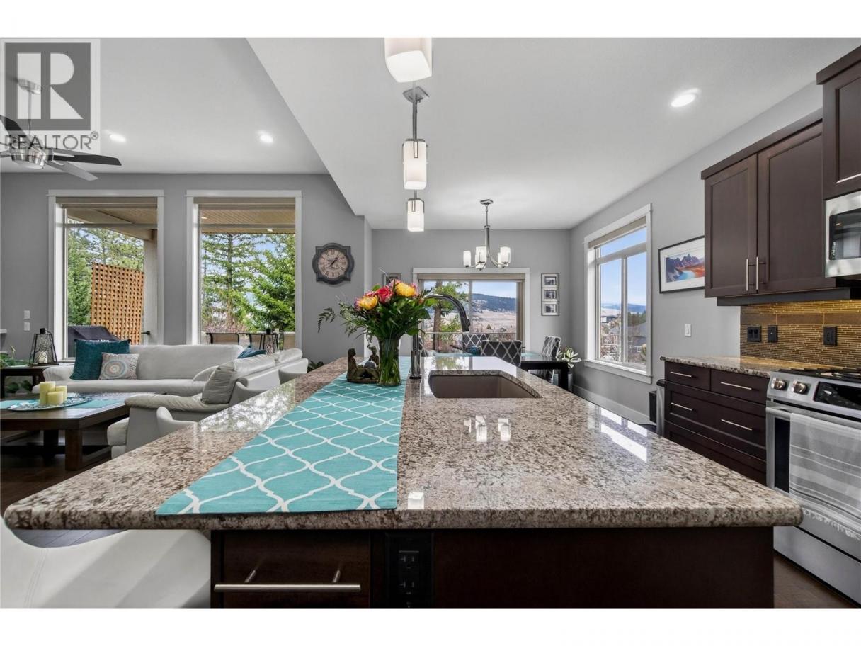 Welcome to this walk-out Rancher at The Lakes. Whether you have a family, are a young professional or looking to simplify as an empty nester, this home offers space to grow into or retire in. At approximately 3,000 sq ft, the main floor is open & bright with vaulted ceilings & oversized windows bringing in natural light & views. A stand-out feature of this home is its sense of space & privacy. Rather than backing onto other homes, the property looks out to trees with mountain views beyond the back fence which leads to the playground & basketball court. The covered balcony extends the living area outdoors & is the backdrop to enjoying warm Okanagan days & relaxed evenings. The Lakes is known for its welcoming community feel, ideal for families or those settling into a quieter pace of life. Active living is right outside your door with the Okanagan Rail Trail nearby for walking, running or cycling & three lakes — Kalamalka, Wood & Okanagan — offering opportunities to paddle, cruise, fish or surf. Hiking Spion Kop is accessible from the neighborhood & the beach is only minutes away. Bus stops are very close & Turtle Bay Crossing offers everyday amenities. New AC 2025, new toilets, paint & all carpets/underlay replaced in 2022. The basement has roughed-in plumbing for a kitchen or wet bar & the back yard could accommodate a pool & hot tub. A well-located home offering views & easy access to the Okanagan lifestyle. Click BROCHURE for more information on the home & community. (id:6769)
