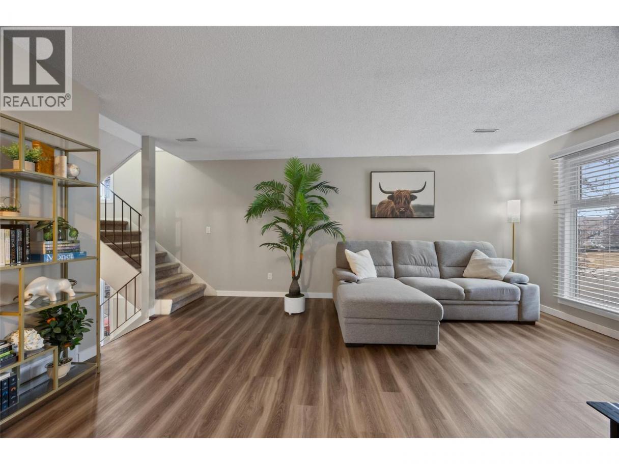 Beautifully updated, inside and out, 2-bed 1-bath end unit Aberdeen townhome located in the Aberdeen Ridge complex. Step inside to an inviting open-concept layout featuring brand-new flooring, a stunning new kitchen and an elegant coffee bar/dining space. The cozy living room features a wood-burning fireplace with stylish panelling and an electric fireplace insert for ambiance. The kitchen is equipped with all-new stainless steel appliances and new cabinetry. Off the kitchen is a large laundry/storage room with a new washer & dryer. Upstairs, you will find 2 generously sized bedrooms, the primary bedroom with two large closets, a storage room and an updated bathroom. The home benefits from TWO patios, one off the dining room, large enough for a patio dining/BBQ set, and one accessed from the primary bedroom, offering a cozy space to enjoy an evening beverage in peace. Externally, the strata has invested in significant upgrades in recent years, including new siding, energy-efficient windows, a new roof, sliding patio doors, and newer furnaces and AC (on the roof). Located in the highly desirable family-friendly Aberdeen, you're just minutes from schools, shopping at Aberdeen Mall, restaurants, parks, and easy access to highways. Whether you're a first-time buyer, downsizer, or investor, this meticulously maintained townhome is a rare find. 2 parking spaces included (12 & 14). 3D Matterport walkthrough available together with floor plans. Book your showing today! (id:6769)